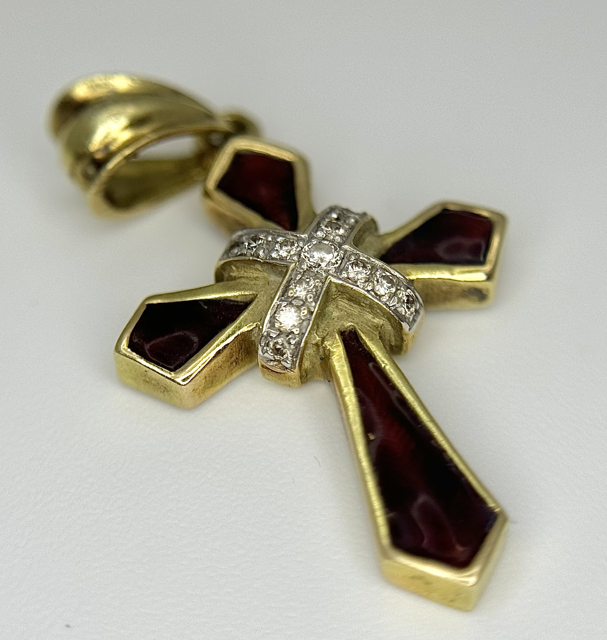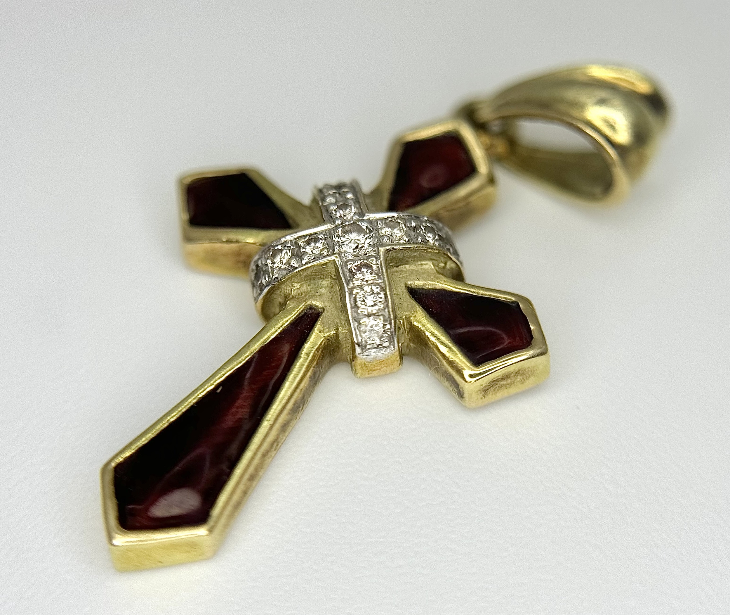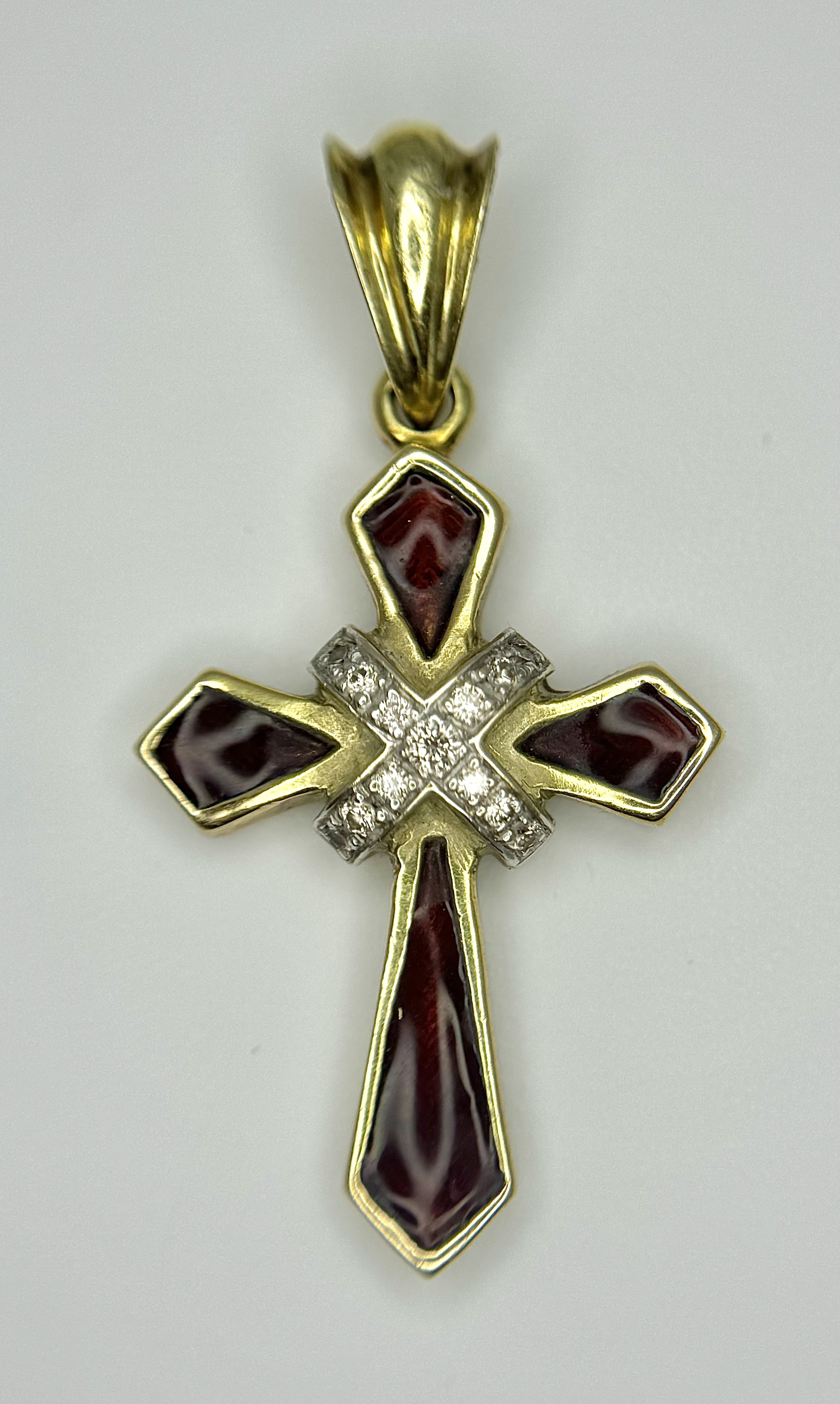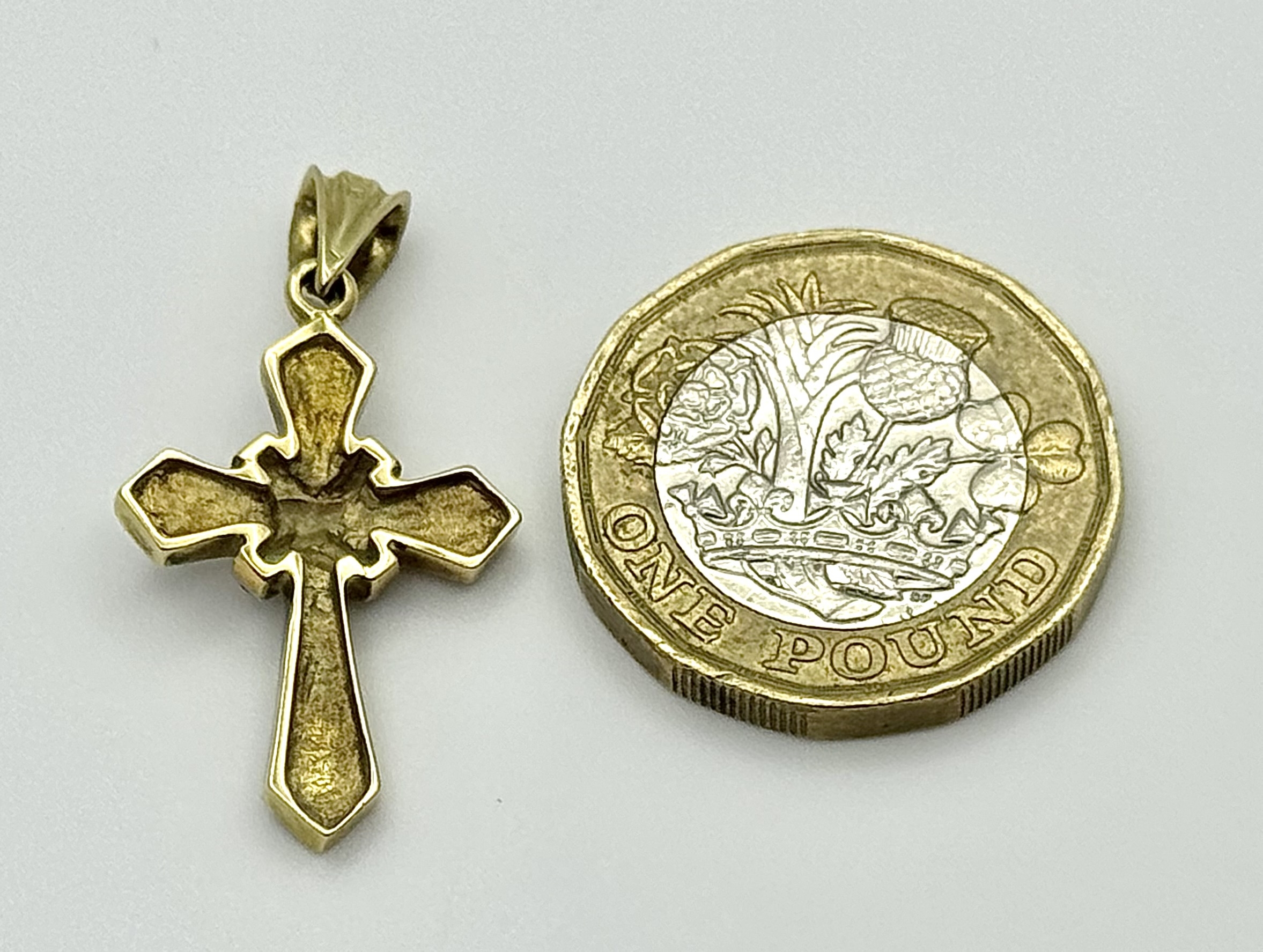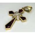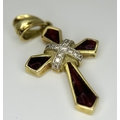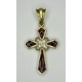 A 14K Yellow Gold, Diamond and Garnet Cross Pendant. 3cm. 2.9g. Ref: 13/61405