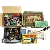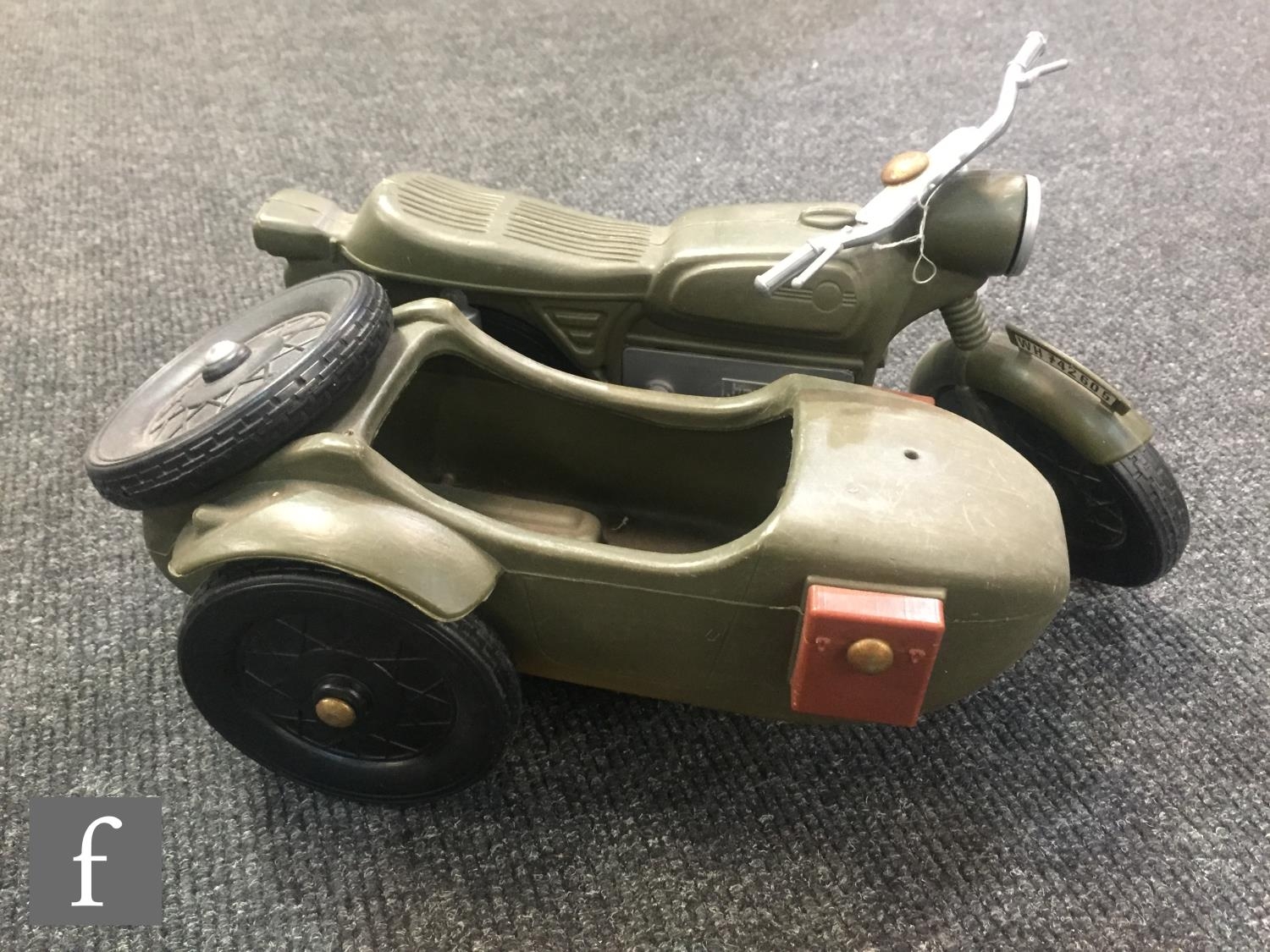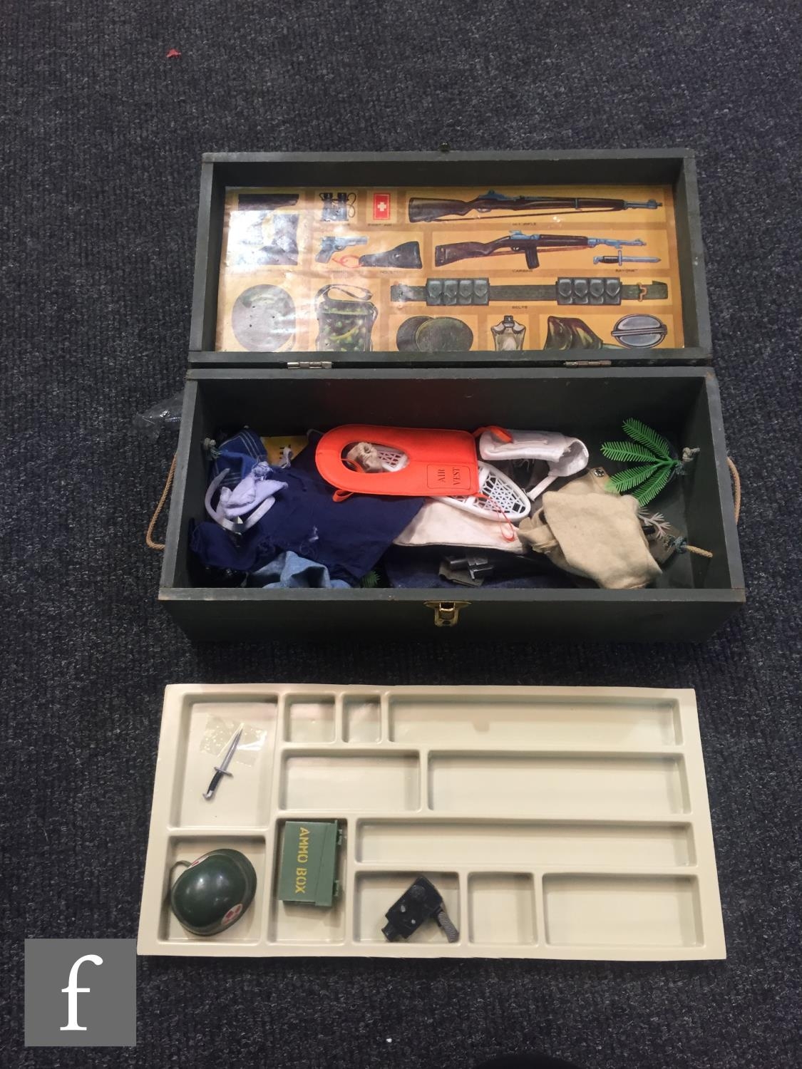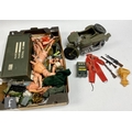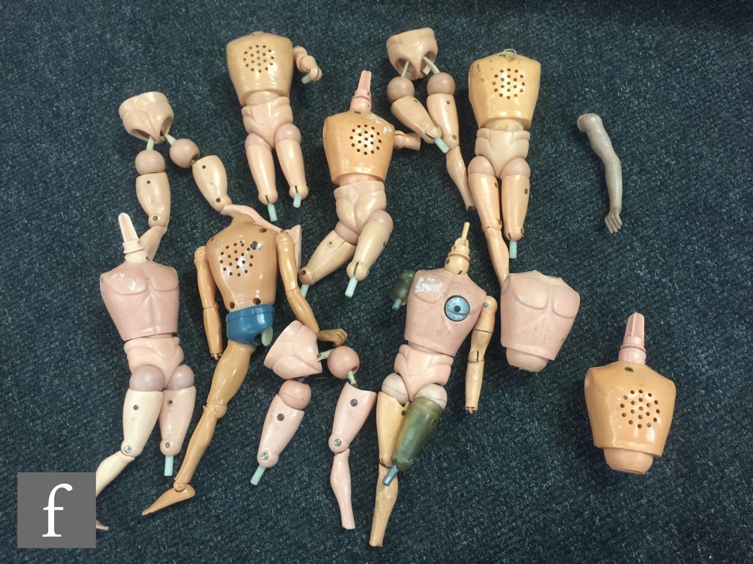 A collection of assorted Palitoy Action Man items to include assorted bodies for spares or repair including an Atomic Man body, a first issue Foot Locker, a Cherilea German Motorcycle and Sidecar, and assorted clothing and accessories.