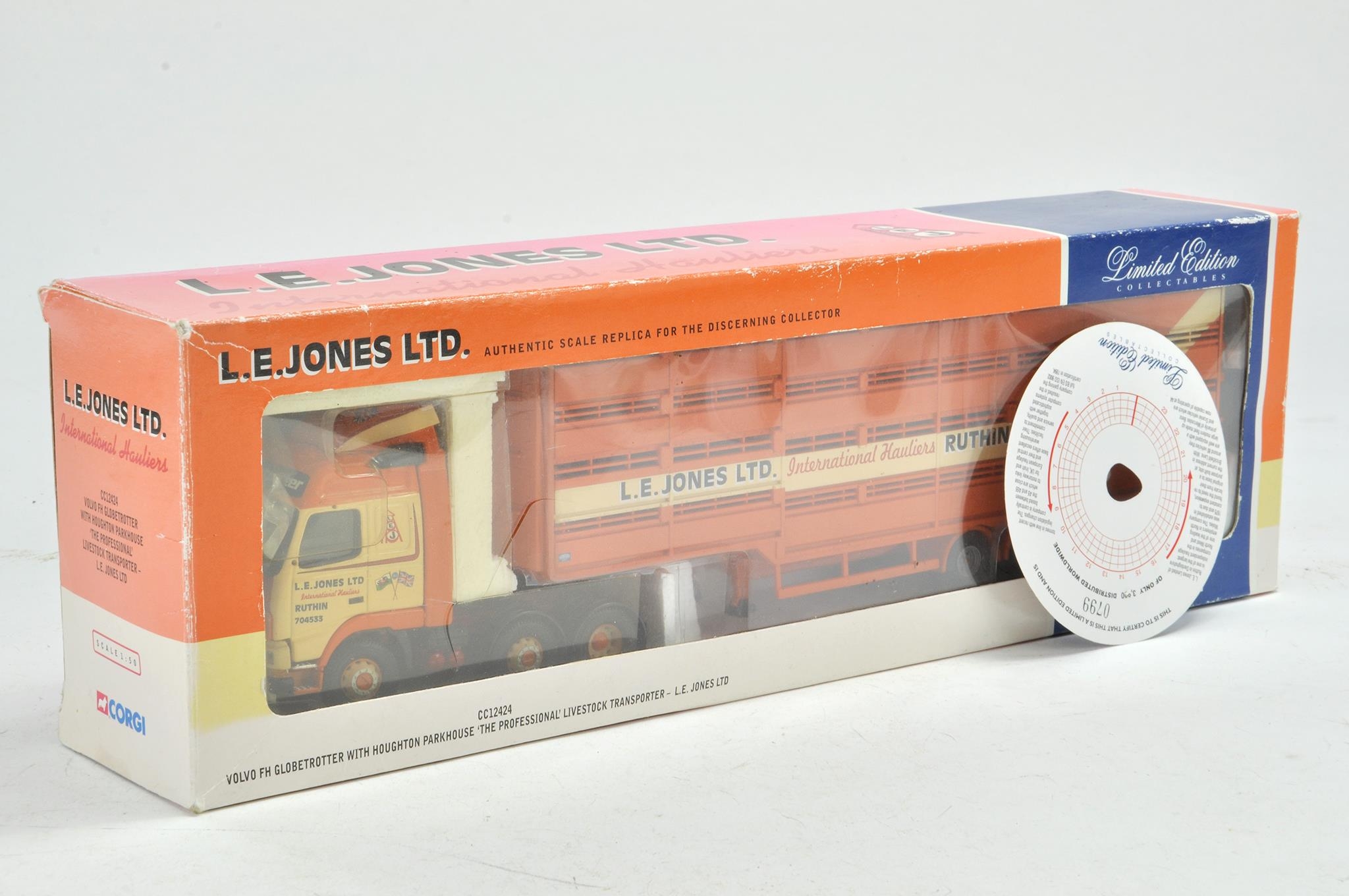 Corgi Diecast Model Truck issue comprising No. CC12424 Volvo Livestock Transporter in livery of LE Jones. Generally good in box (with damage to inner and wear).