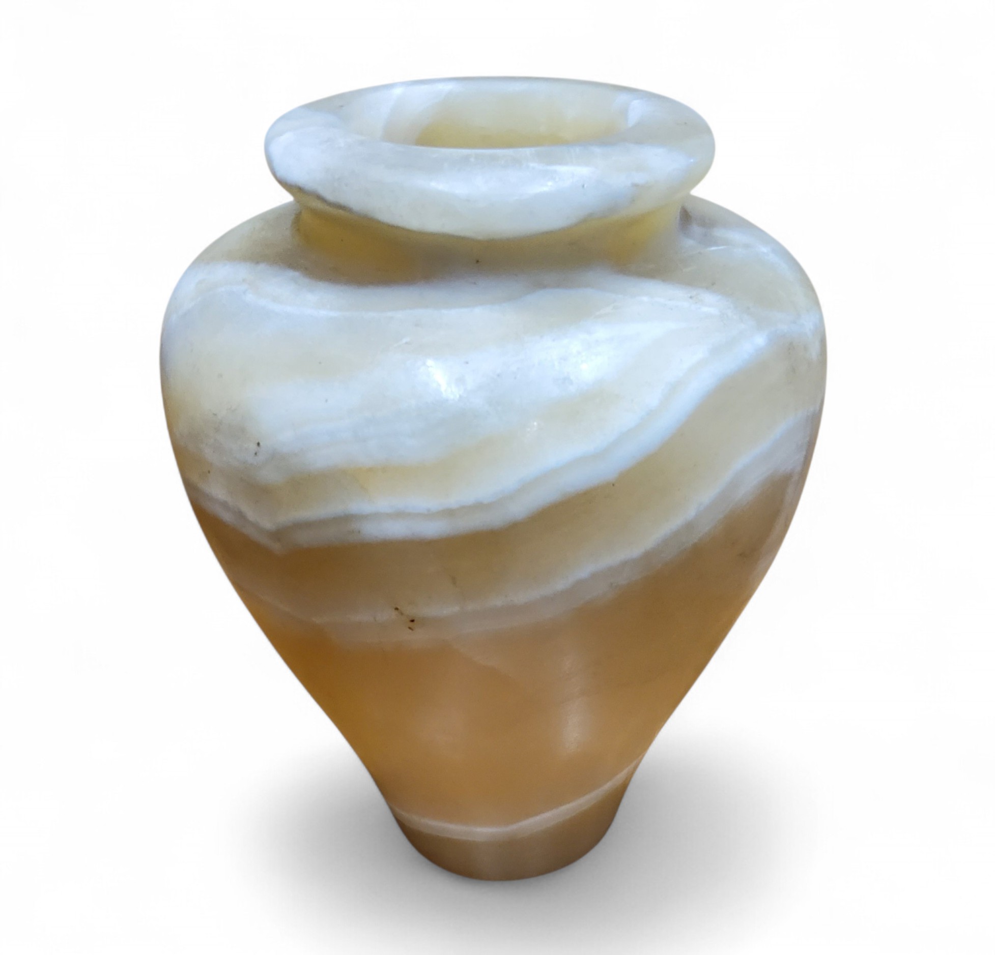An Egyptian alabaster ovoid vase, 14.5cm high