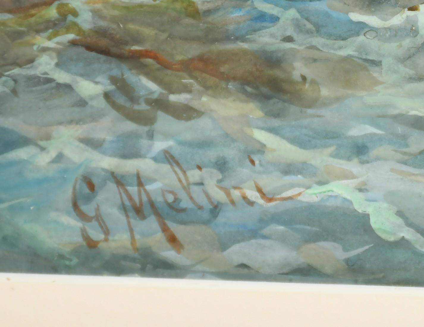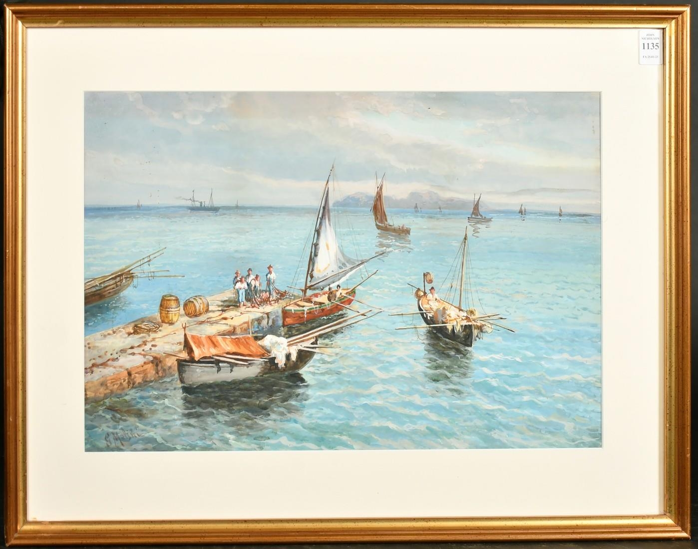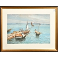 Giovanni Melini, 'Preparing for the days fishing', watercolour/gouache, signed, 12.5" x 19.5", (32x49cm).