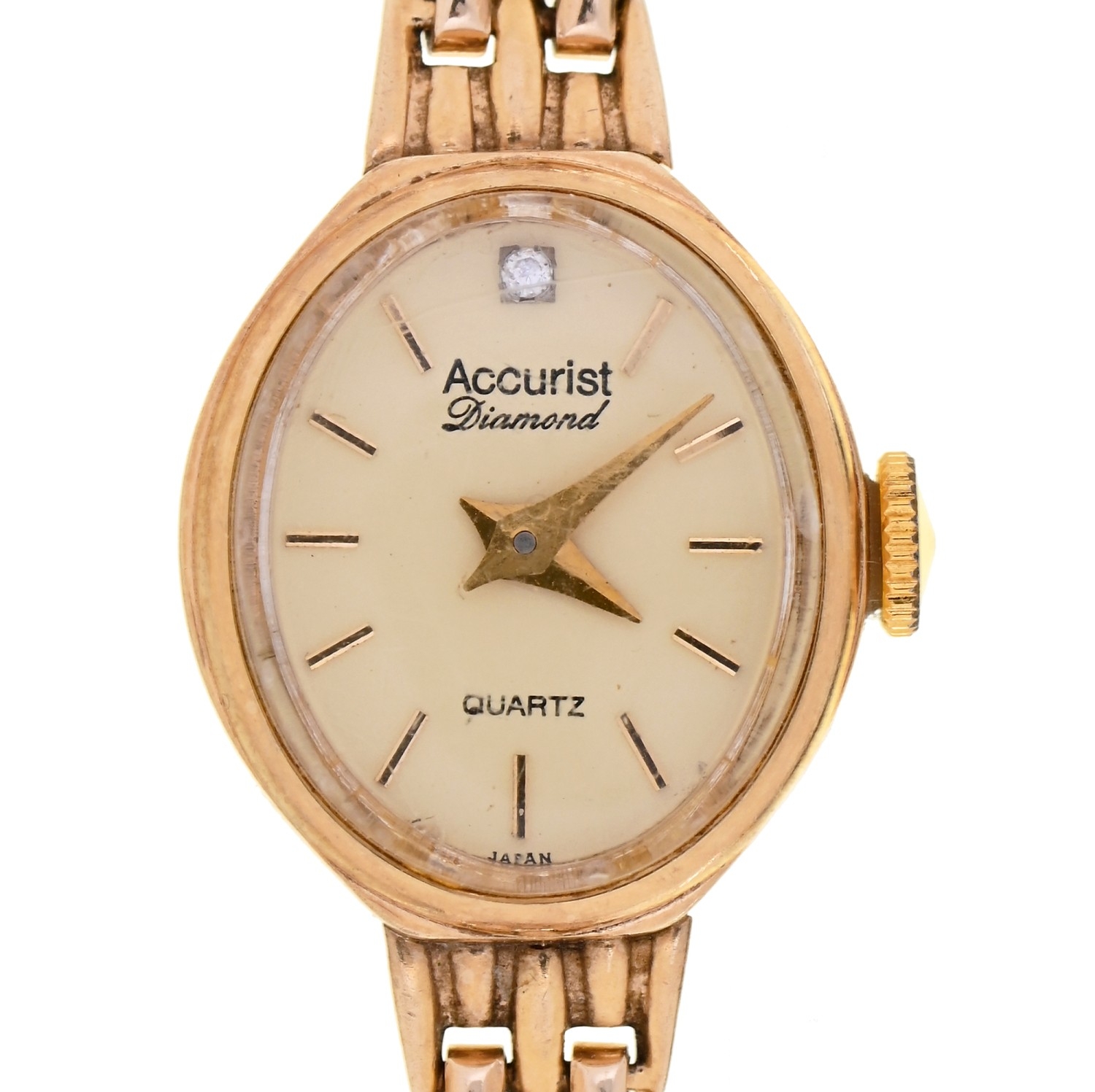 An Accurist 9ct gold oval lady's wristwatch, quartz movement, 16mm, on 9ct gold bracelet, 9g