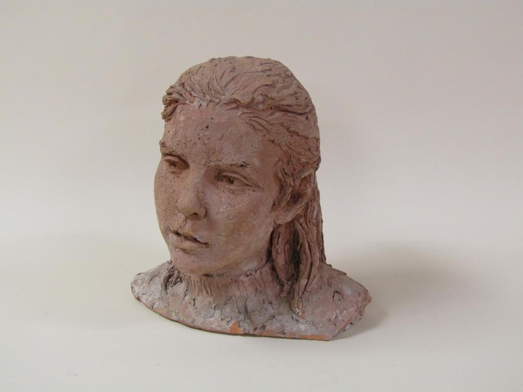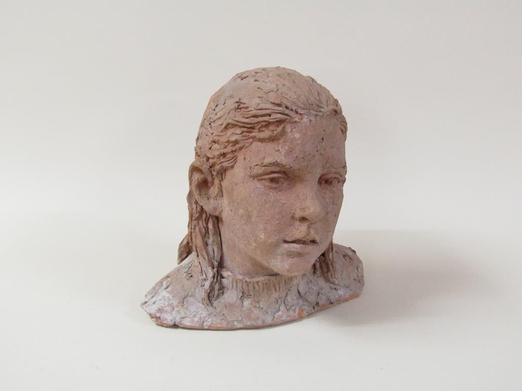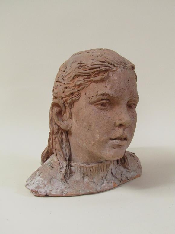A terracotta bust of a young girl, by Karin Jonzen, 29cm h.
