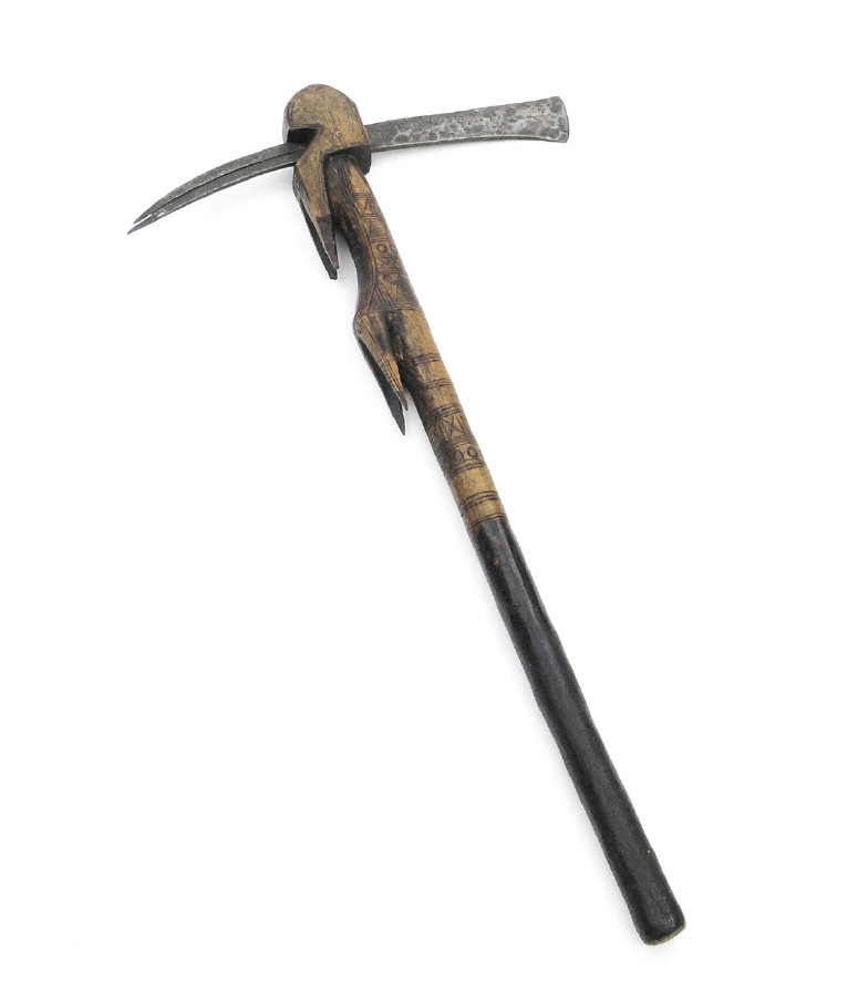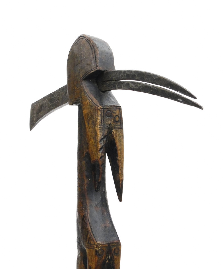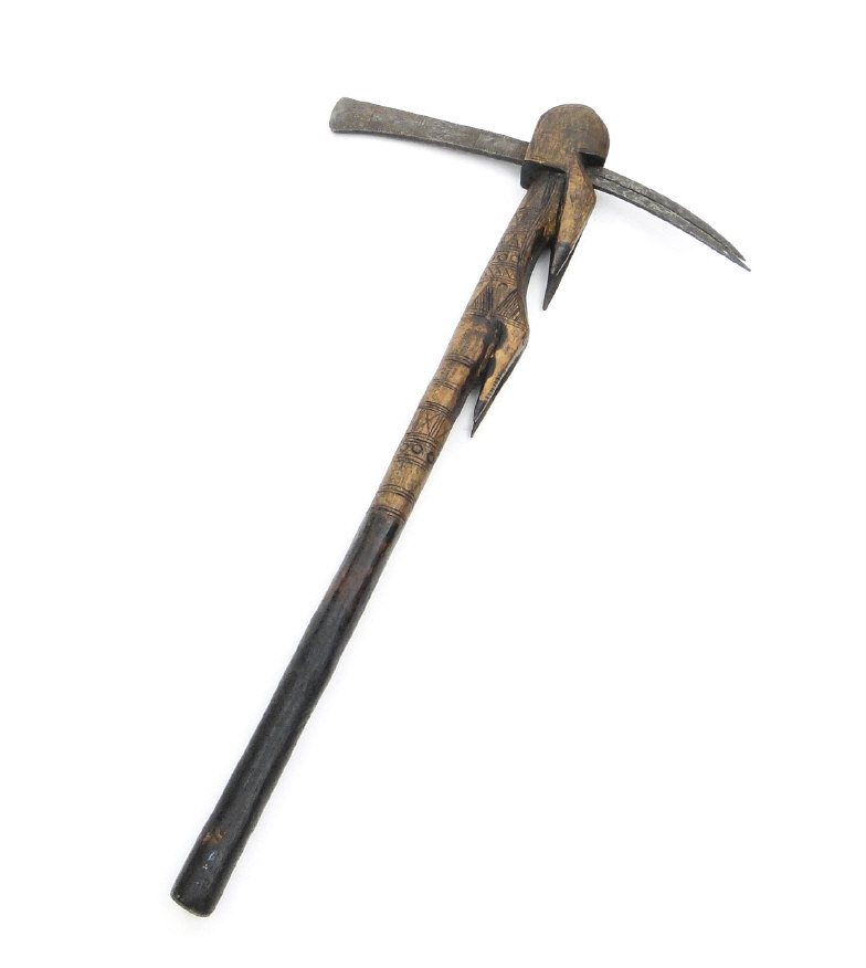 African carved wood axe with steel head, 64cm in length