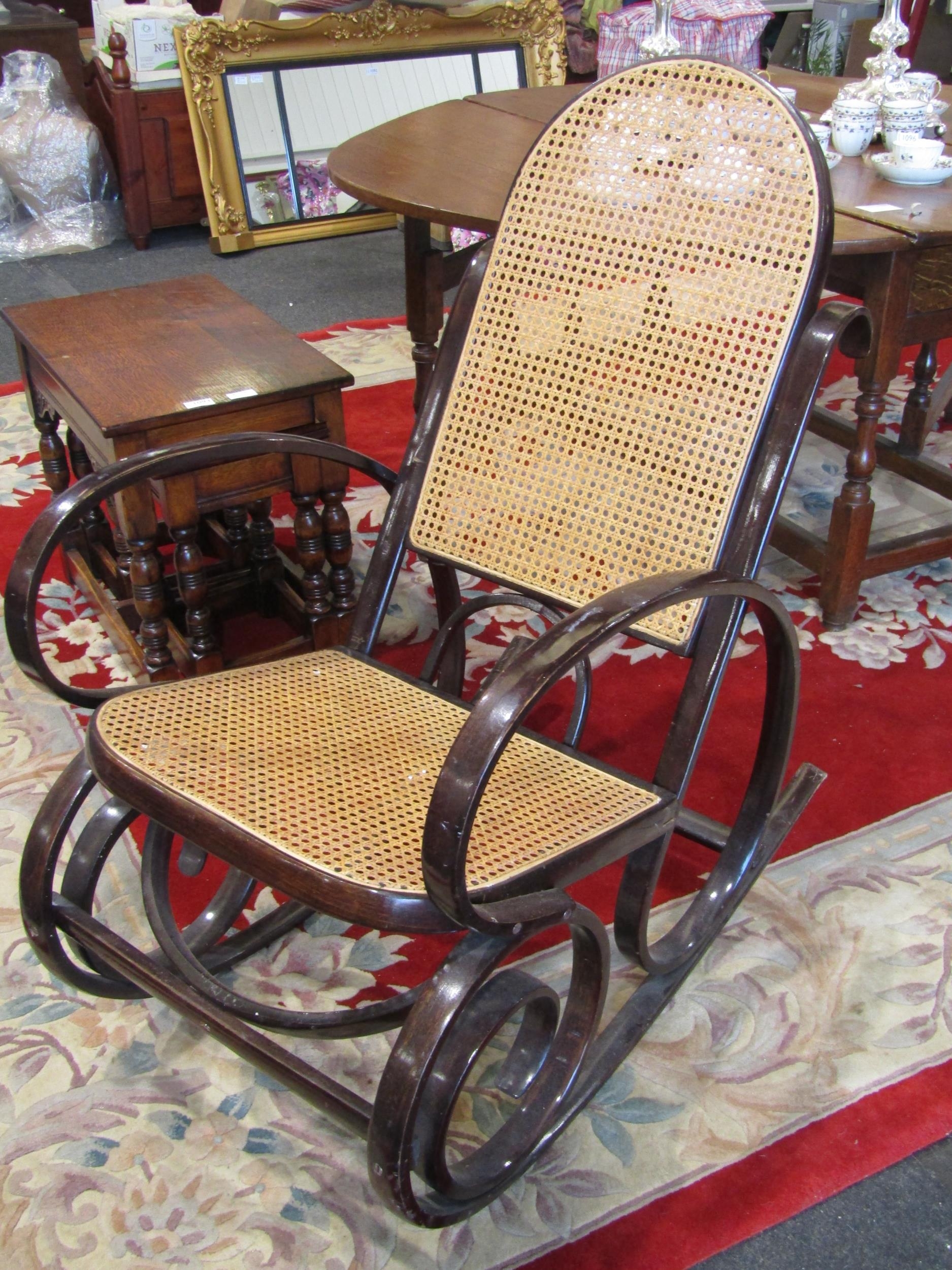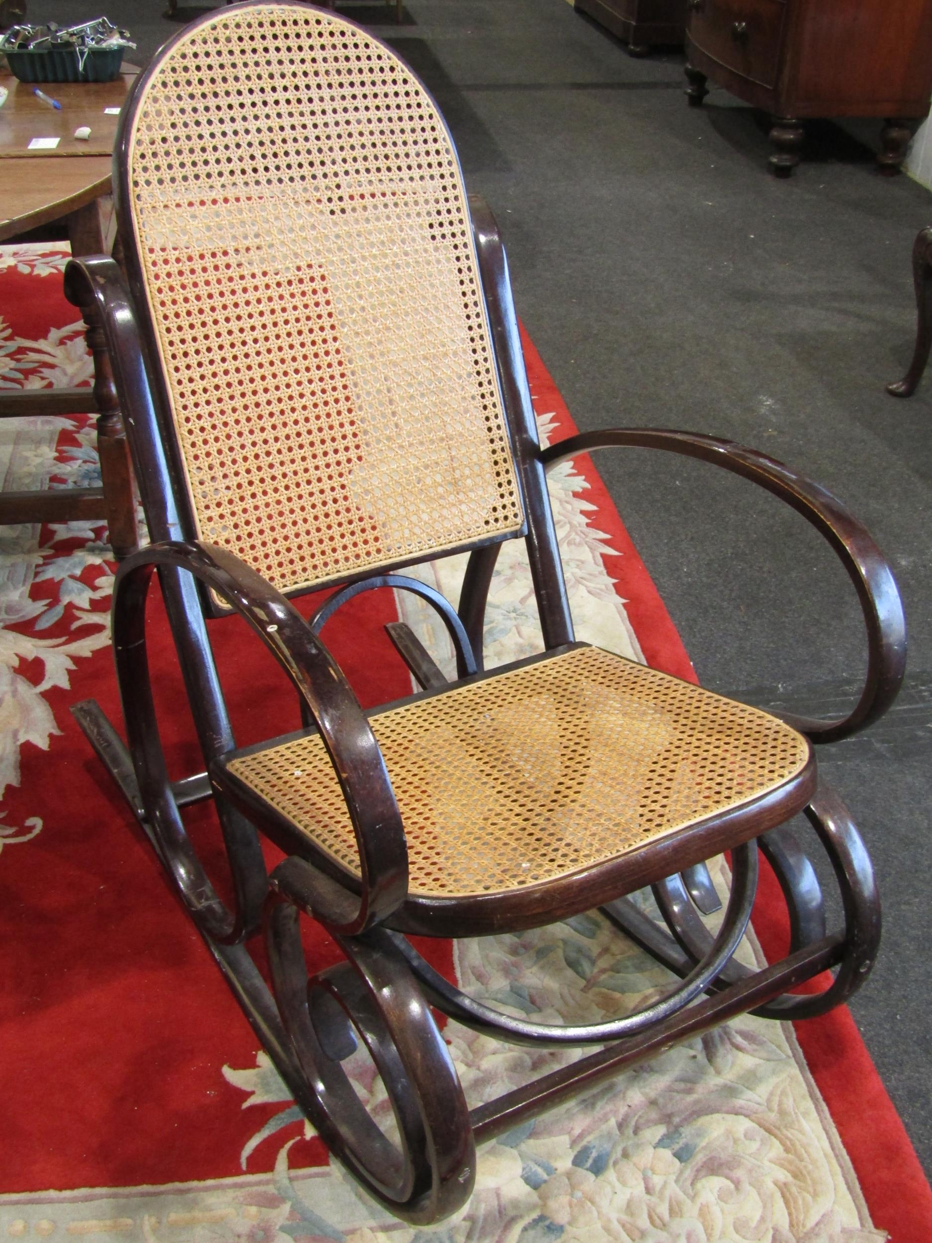 A ‘Thonet’ style bentwood rocking chair with cane seat and backrest