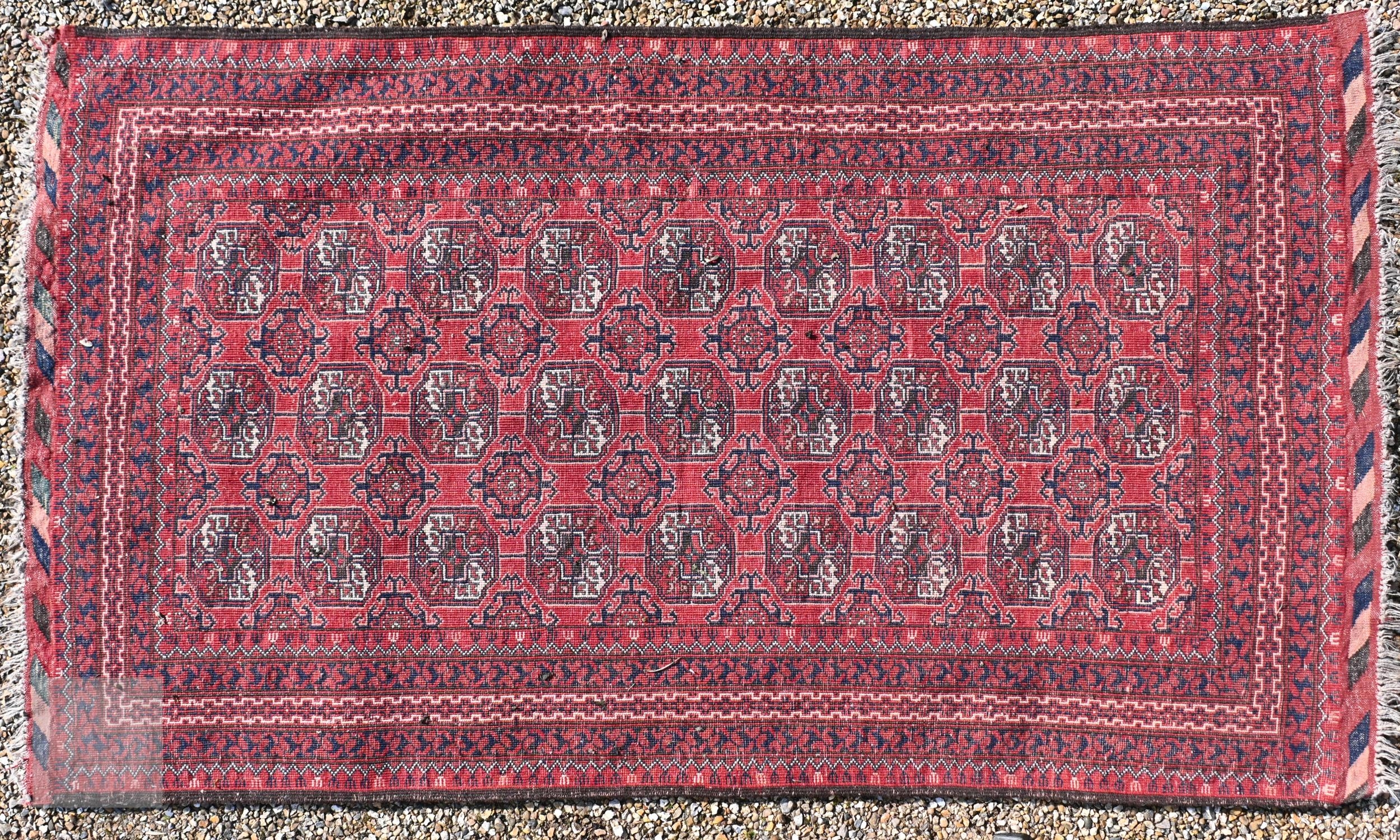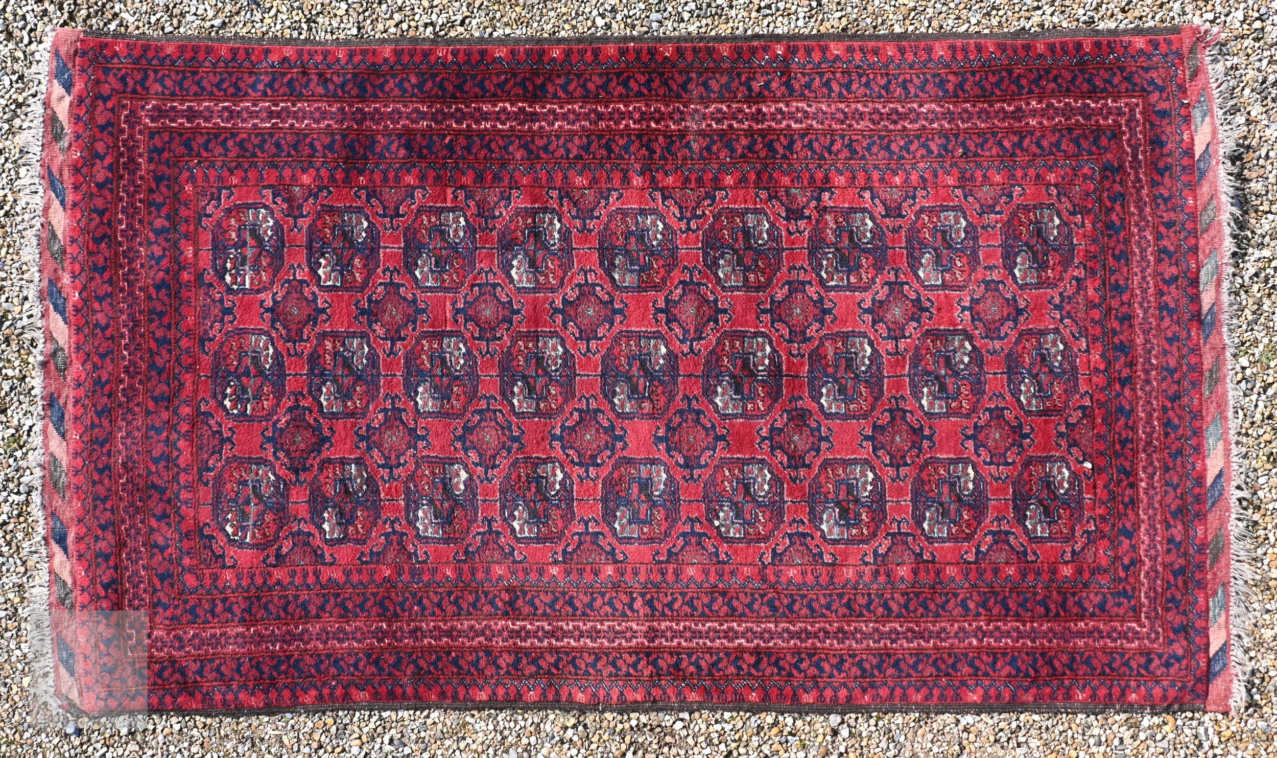 #A vintage Afghan Turkoman design rug with repeating guls on a red ground, 187 x 95 cm