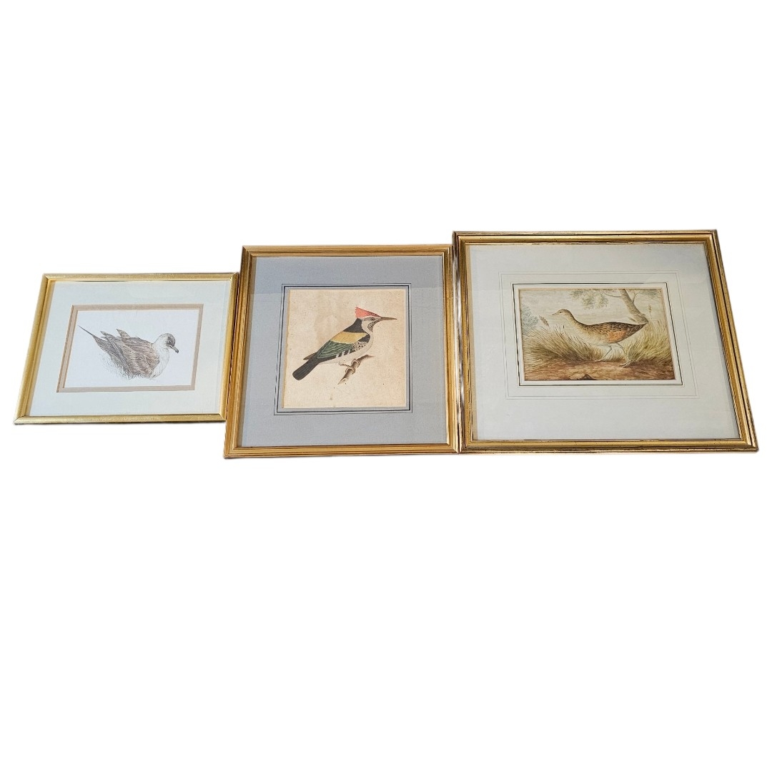 To include an early 19th Century study of a corncake, an Indian school Golden Backed Woodpecker and a 20th Century Arctic Skua all mounted, framed and glazed.