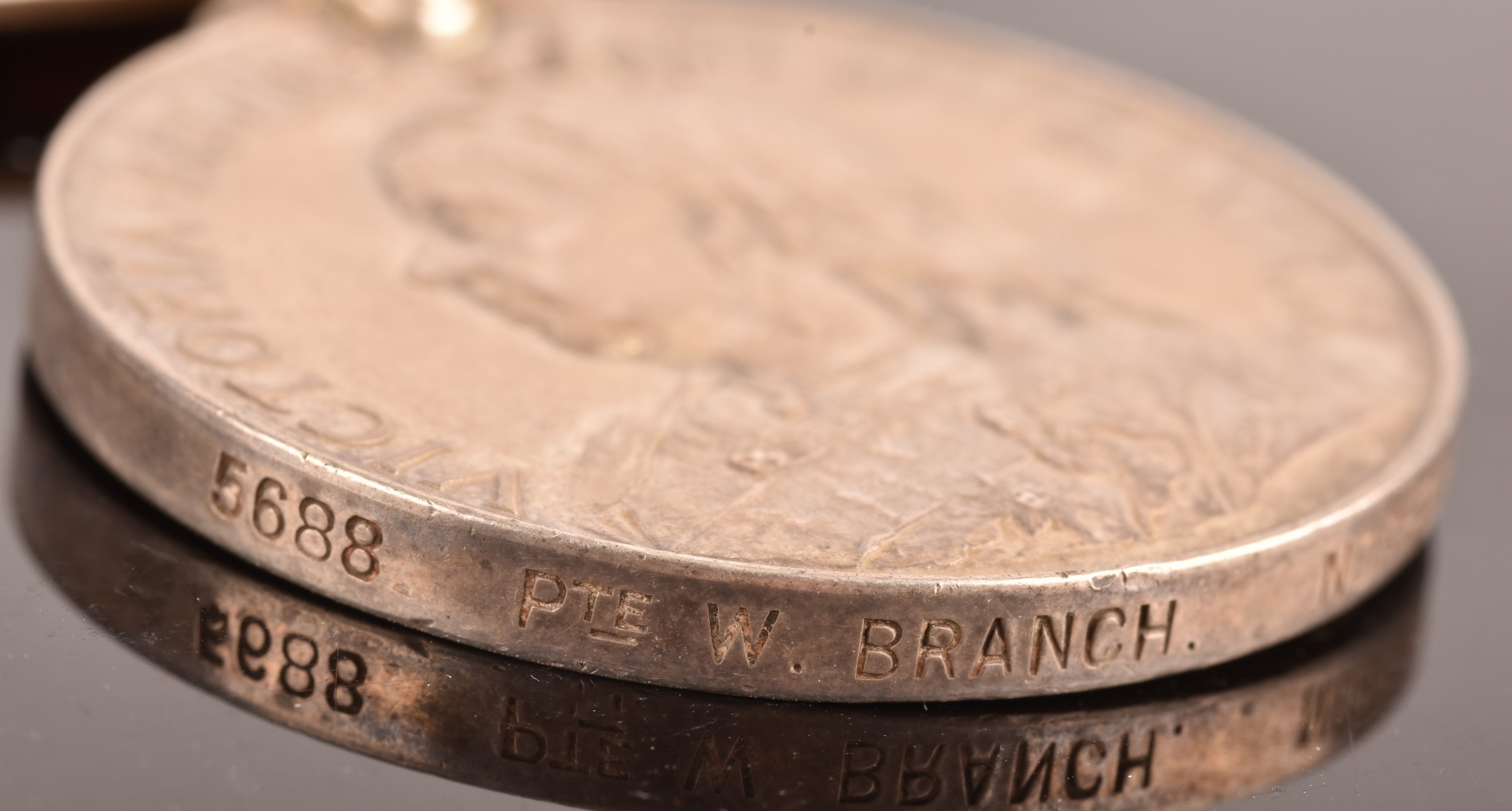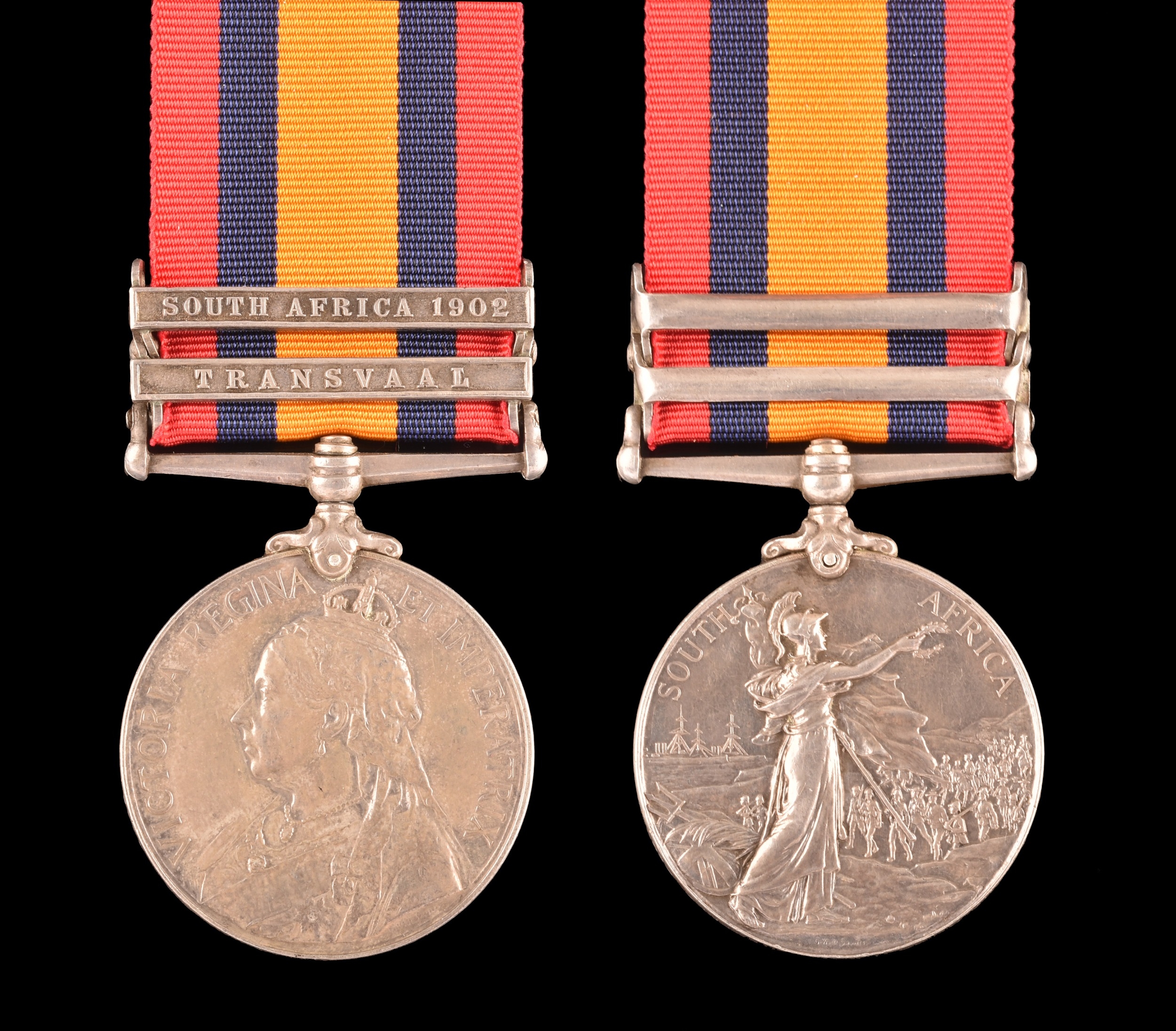 A Boer War Queen’s South Africa QSA medal with 2 clasps Transvaal, South Africa 1902 awarded to: 5688 Private. W. Branch, Norfolk Regiment (5688 Pte. W. Branch, Norfolk Regt.).