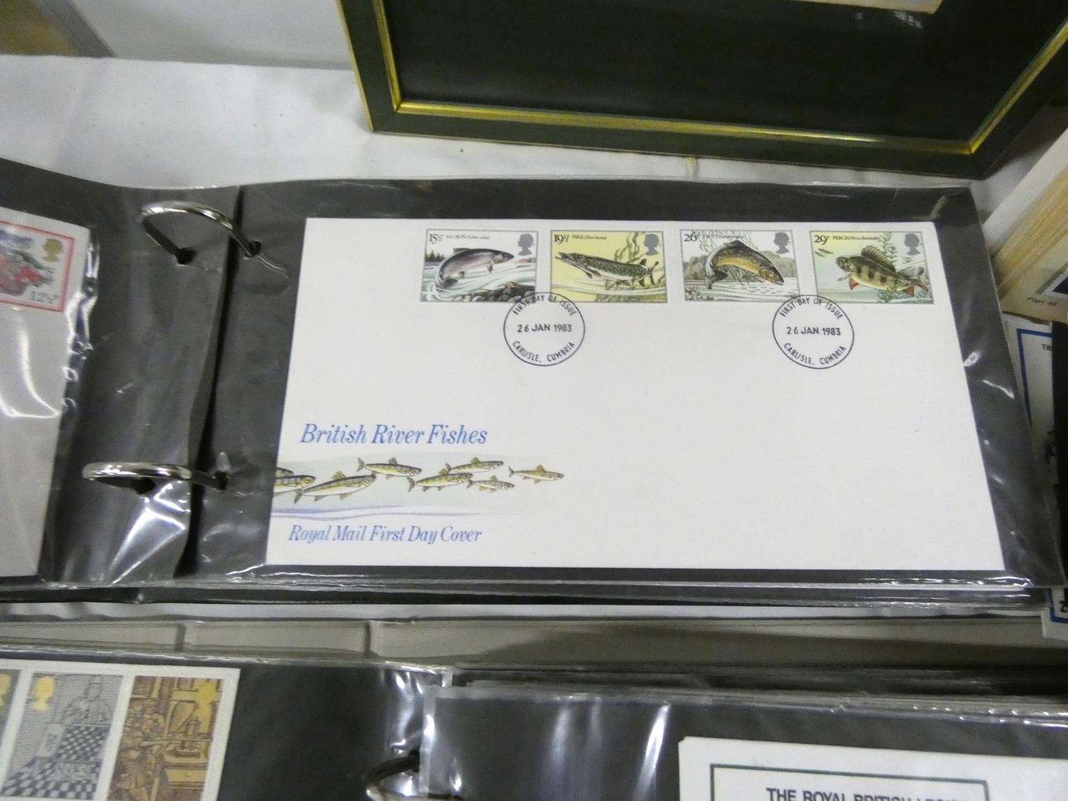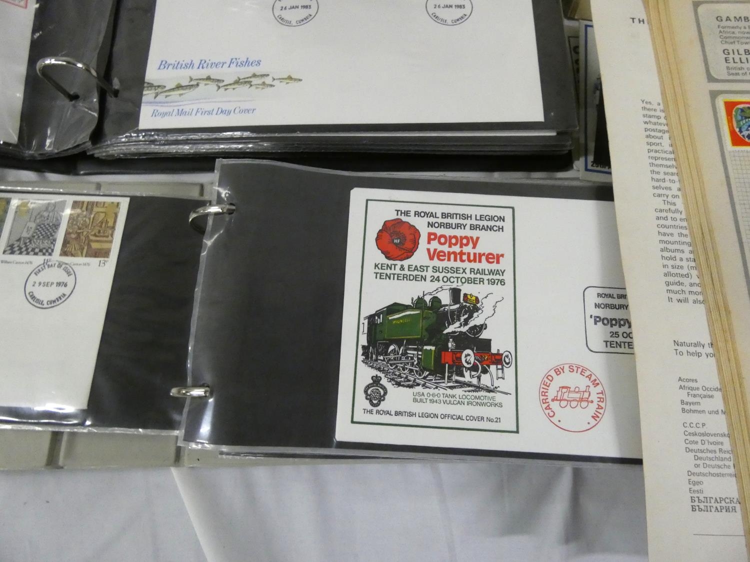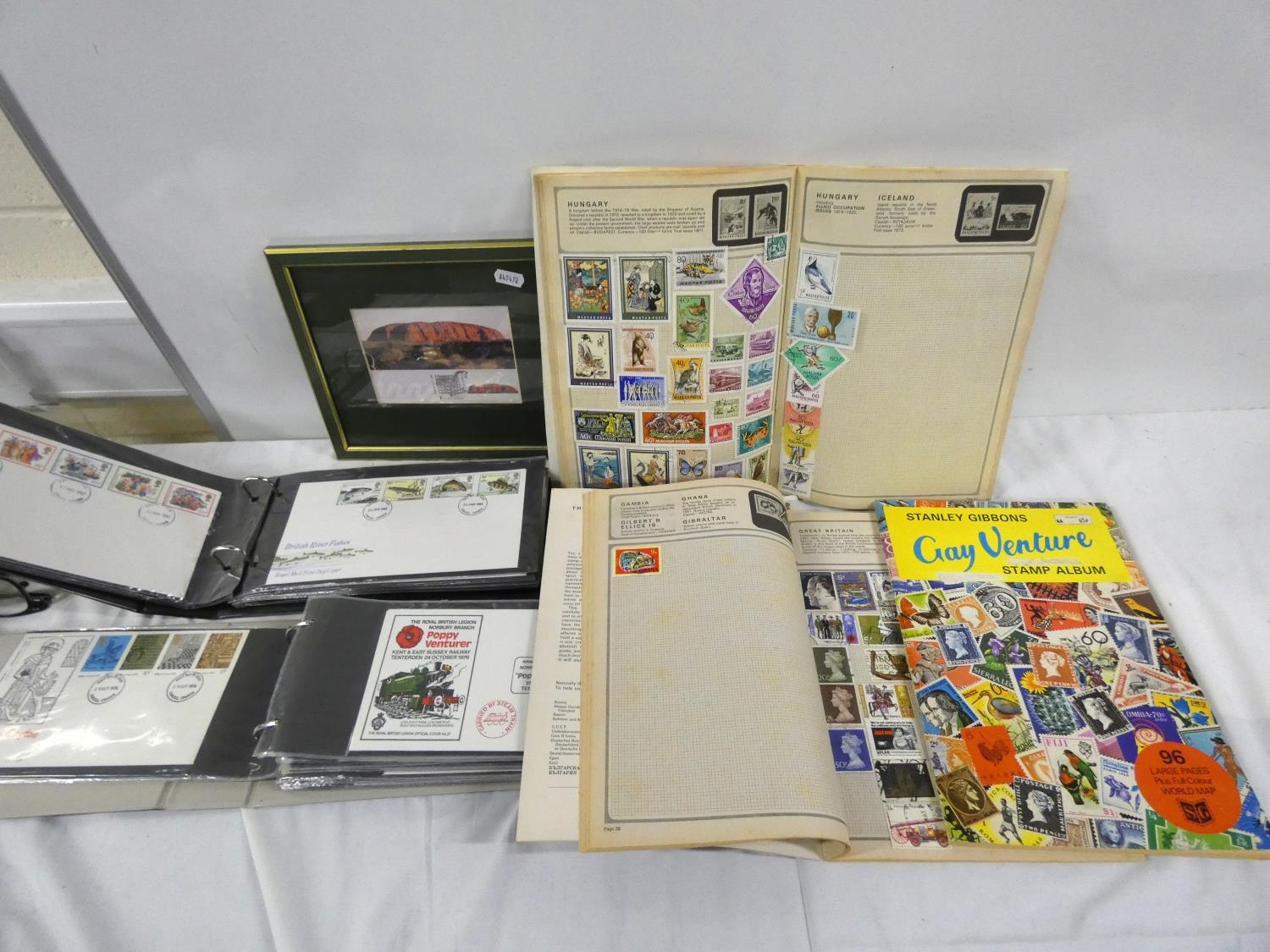 Box of world stamps and first day covers.