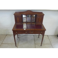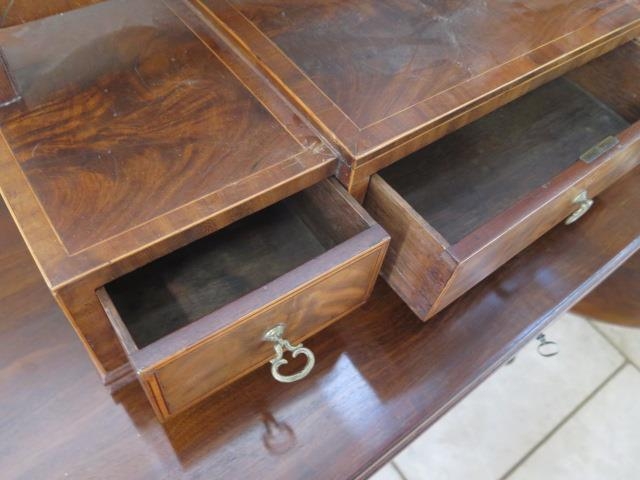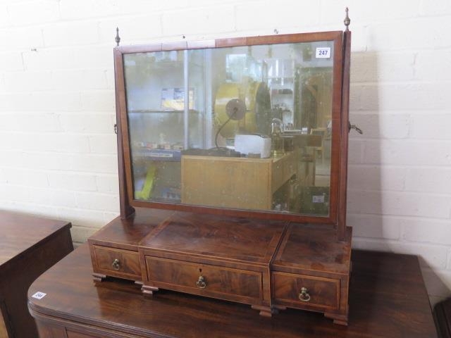 A Georgian mahogany breakfront three drawer toilet mirror, 67cm tall x 67cm wide x 24cm deep