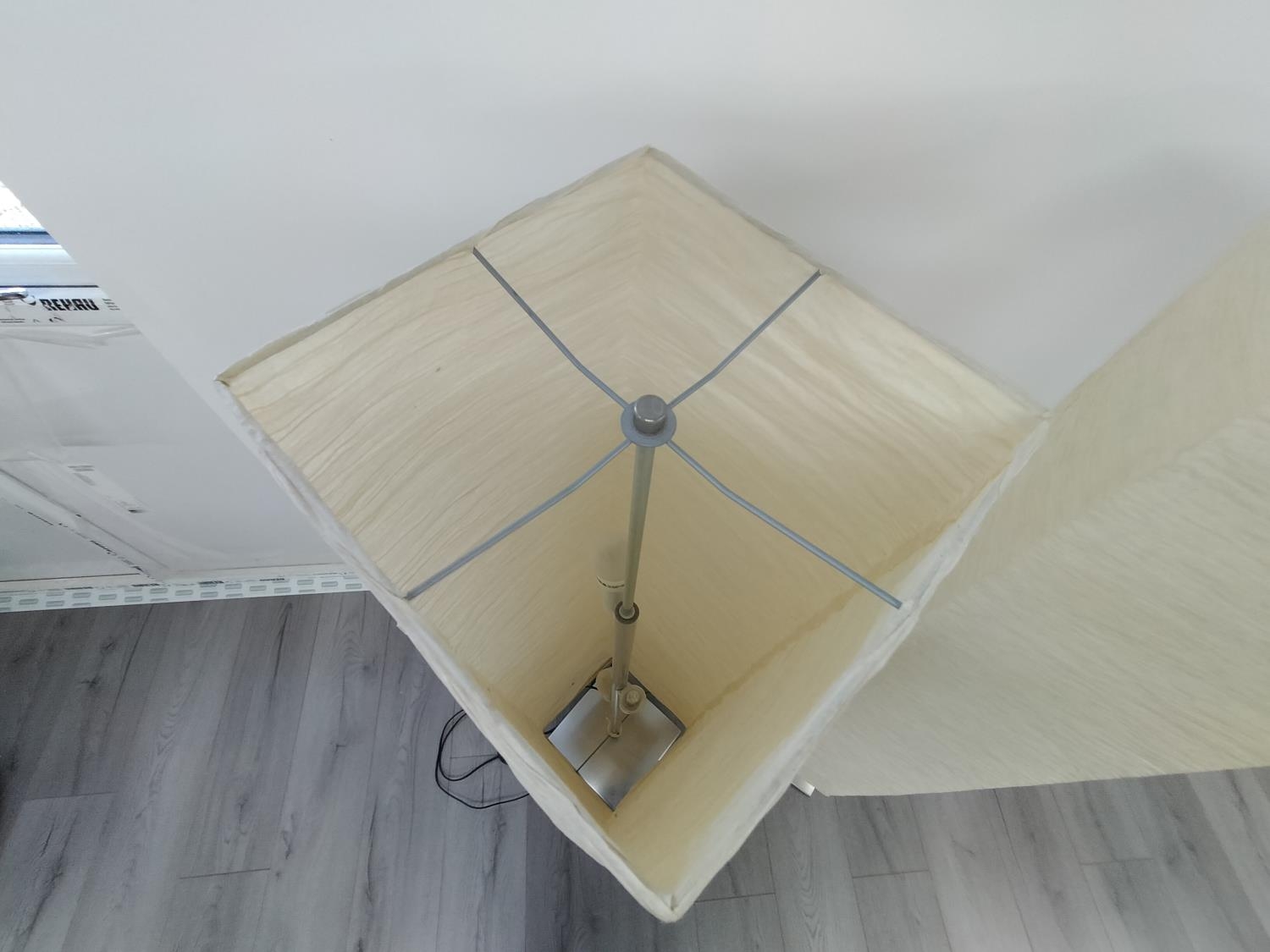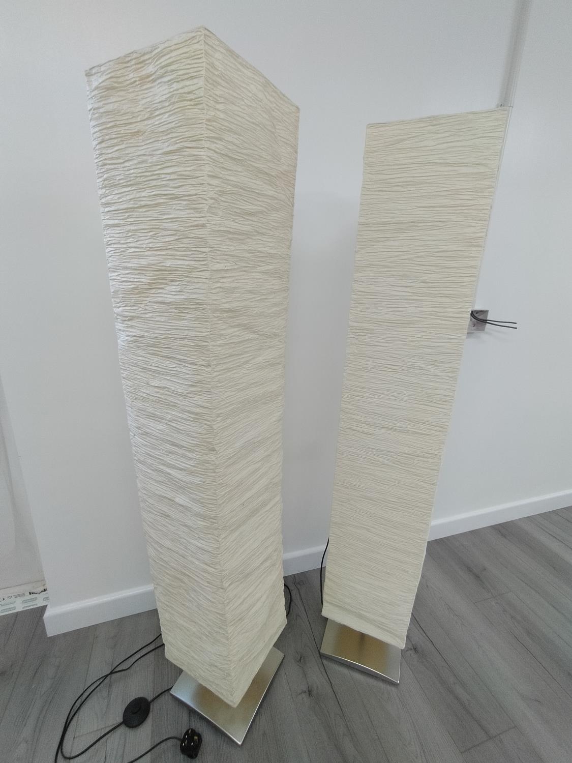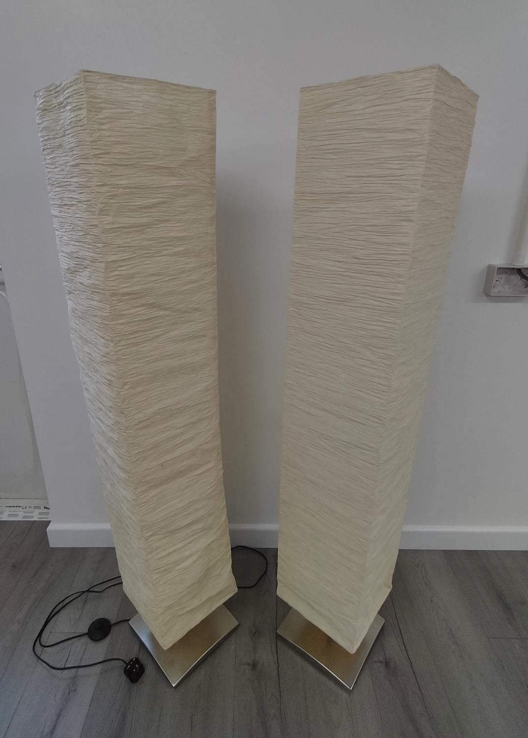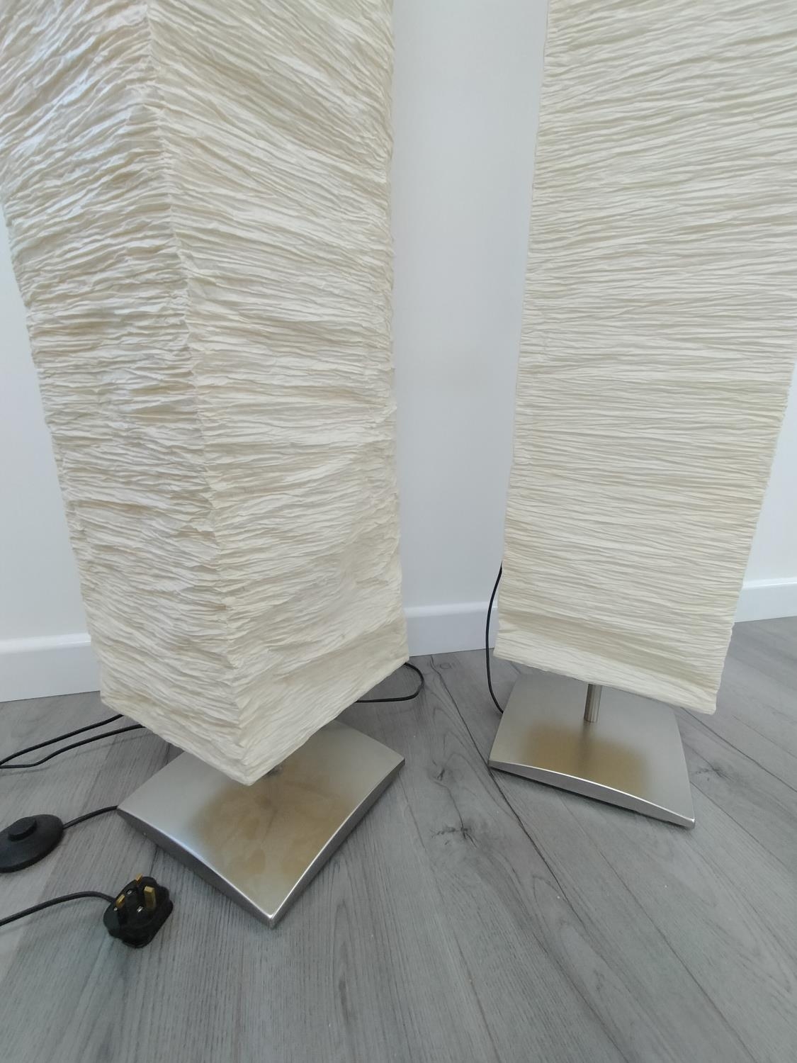 2 x Modern Floor Standing Lamps with Paper Shades. 148cm High, 26cm x 26cm. W/O. Collection Only.