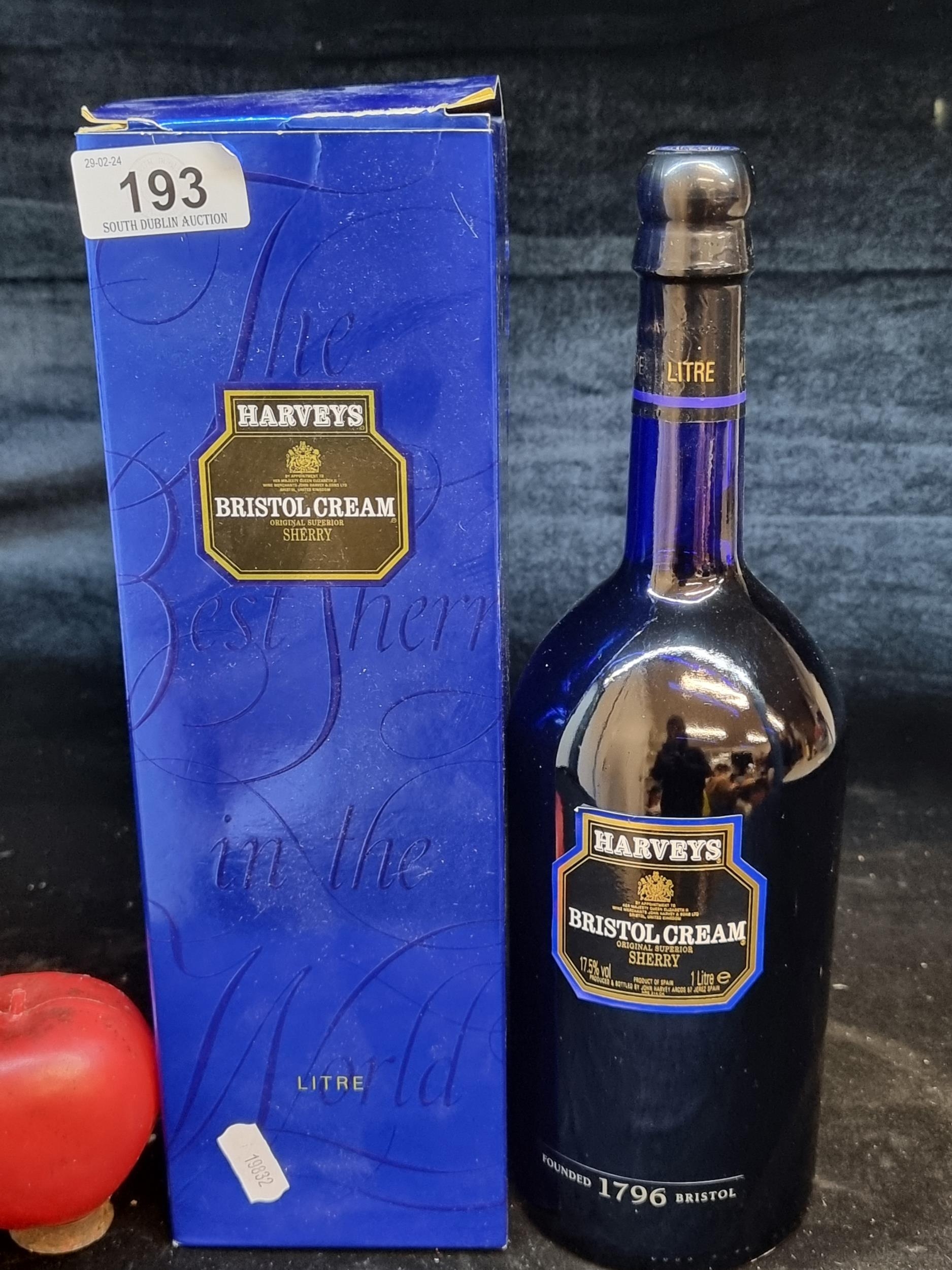 A sealed and unopened 1Litre bottle of Harveys Bristol Cream Sherry. In original presentation box.