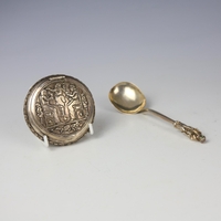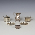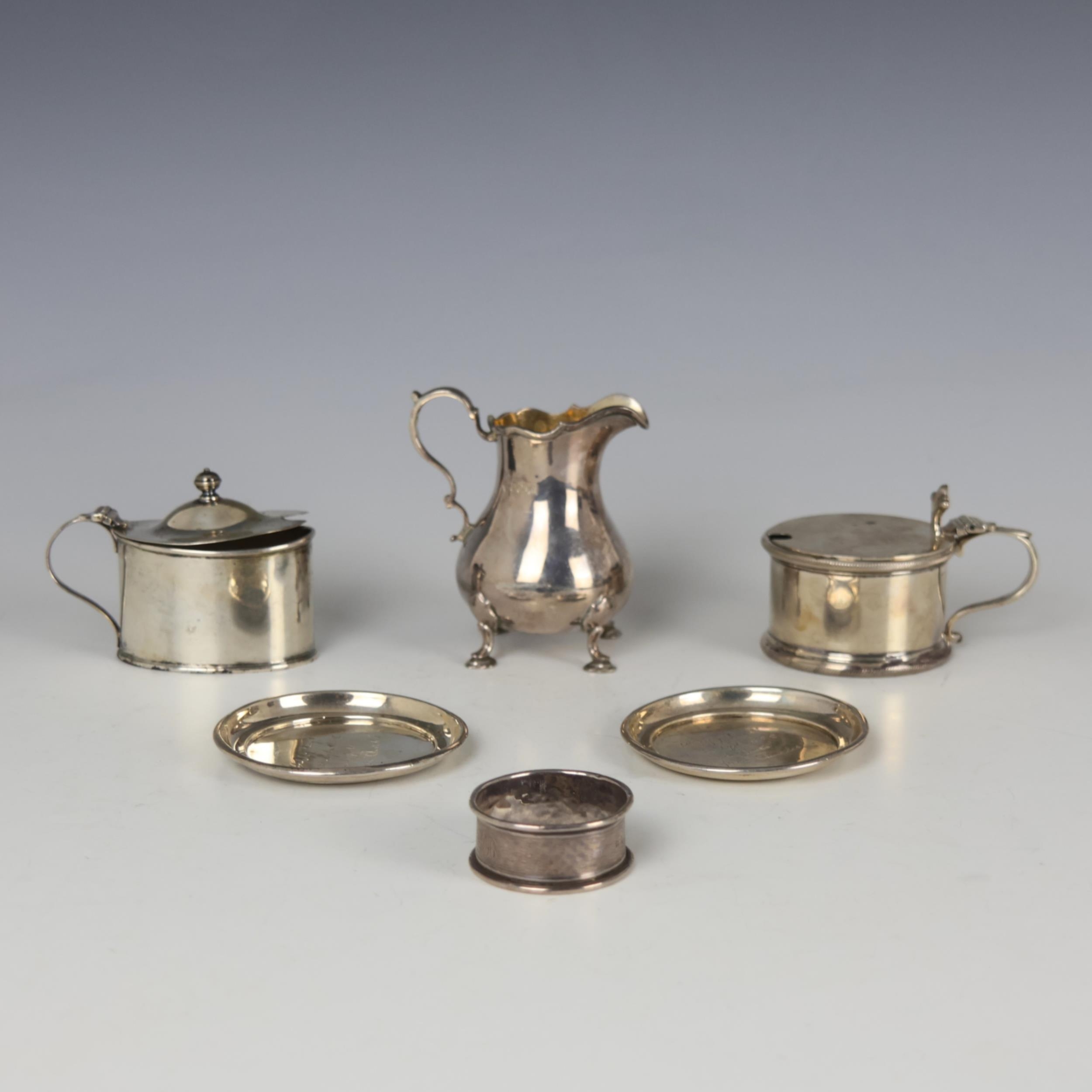 A selection of silver, including an Edwardian silver cream jug, Martin Hall and Co, Sheffield 1906, of typical bulbous form with shaped rim, 9.5cm high, with two silver mustard pots, and further silver, gross weight 11ozt (6) (at fault)