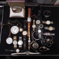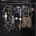 A selection of jewellery and watches, to include a micromosaic floral brooch, two 9ct gold and silver paste rings, a Smiths De Luxe wrist watch and further items