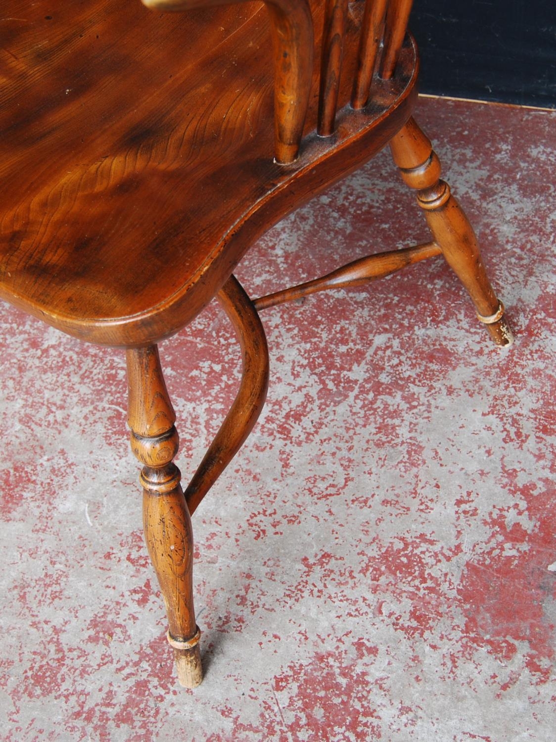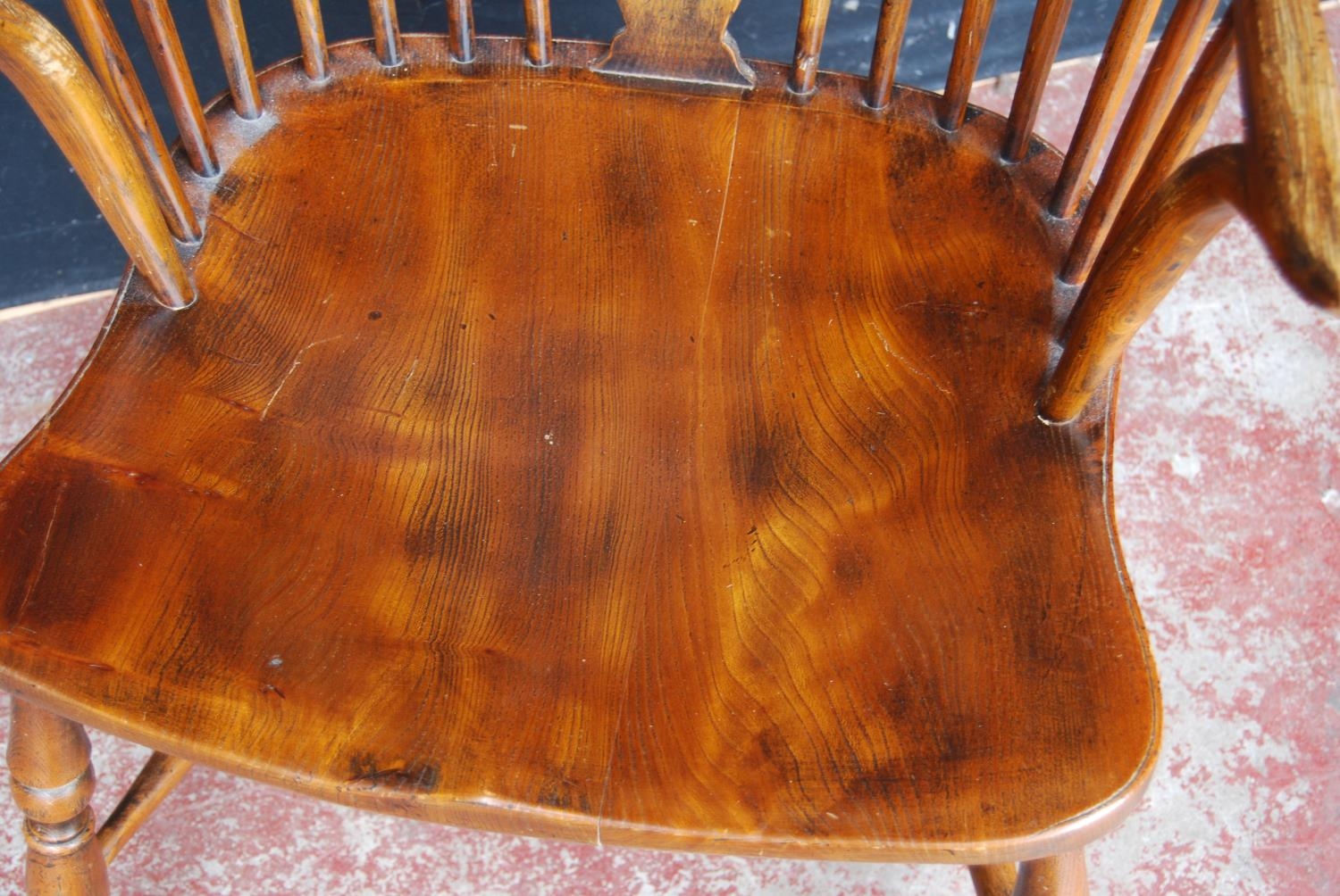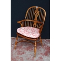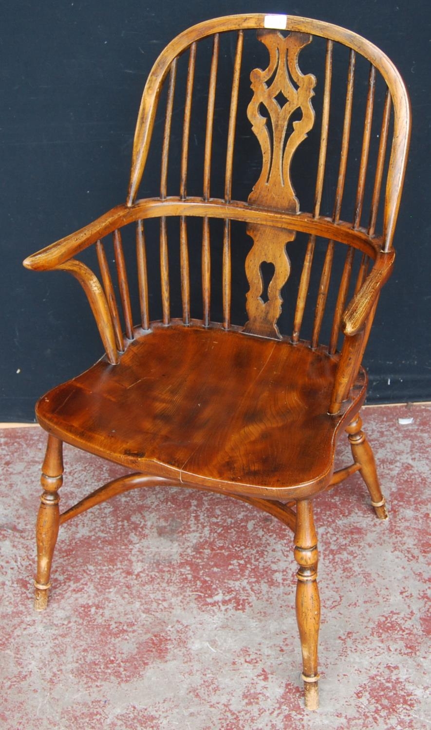 19th century ash and elm Windsor armchair, the hoop stick back with a pierced splat and dish seat, on turned supports with adjoining hoop under stretcher, 101cm high.