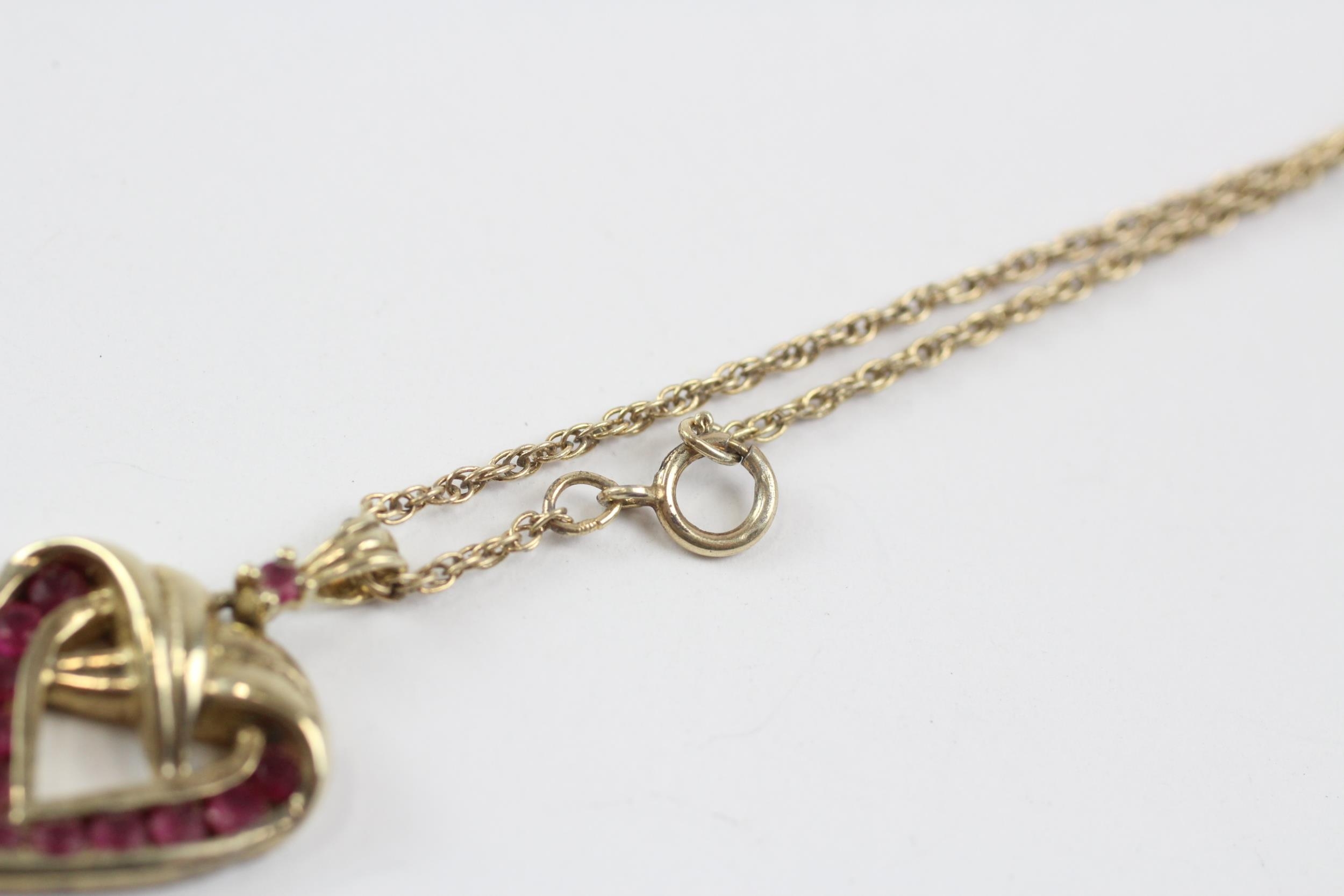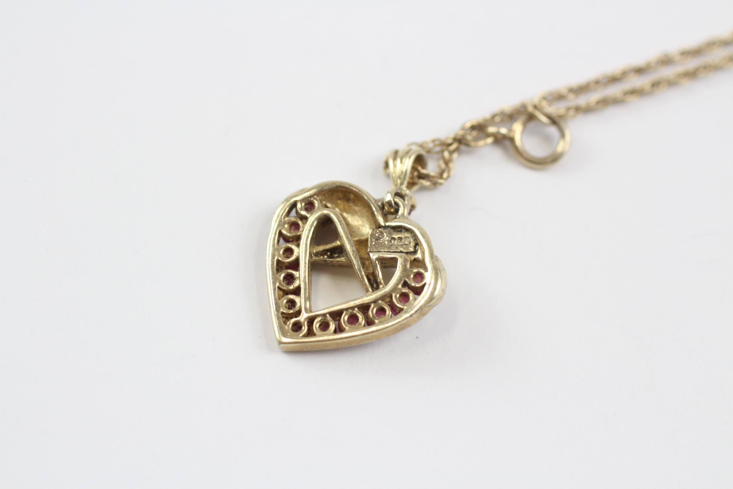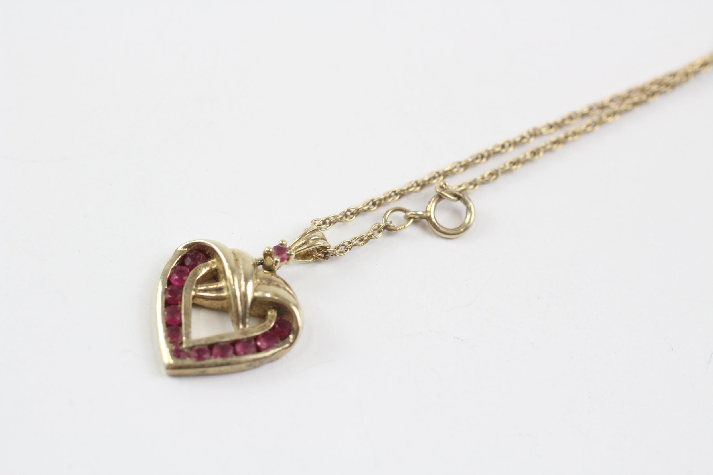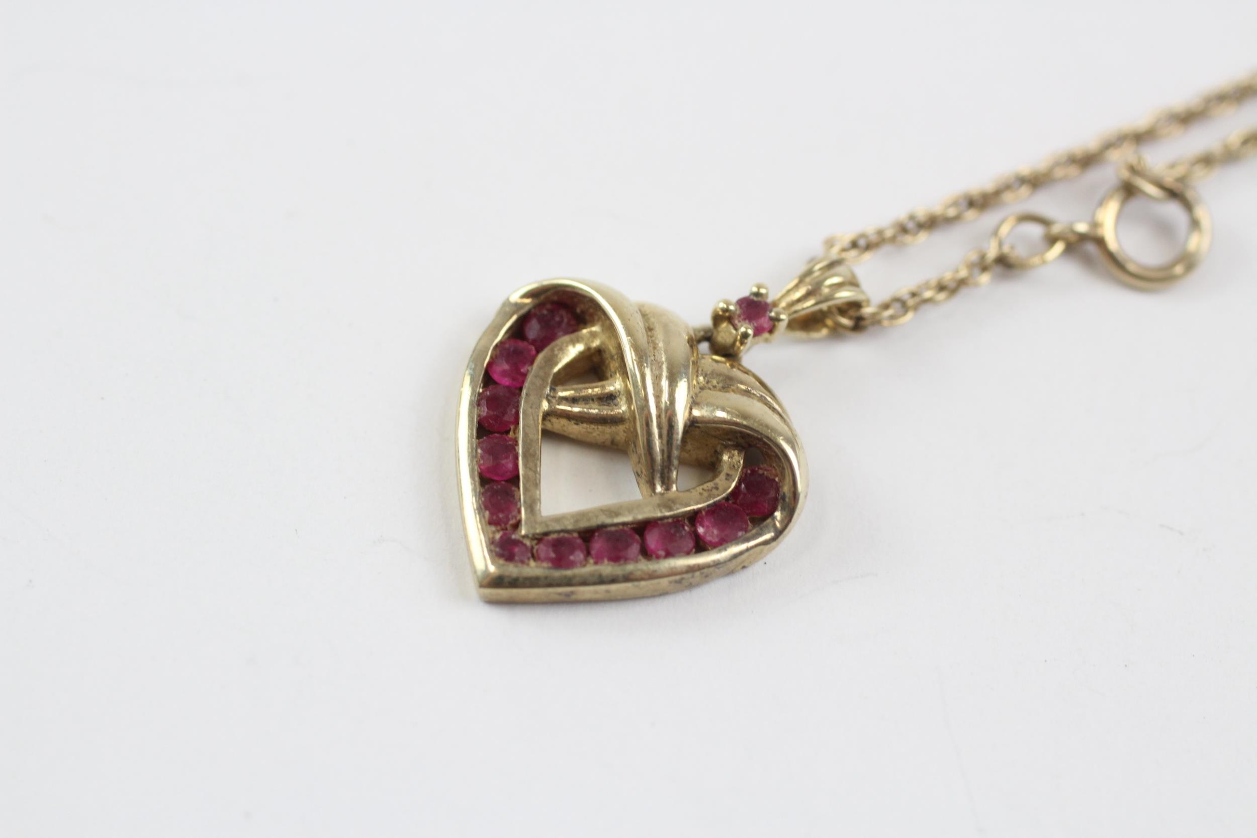 9ct Gold Vintage Ruby Set Heart Shaped Pendant Necklace (4.7g)