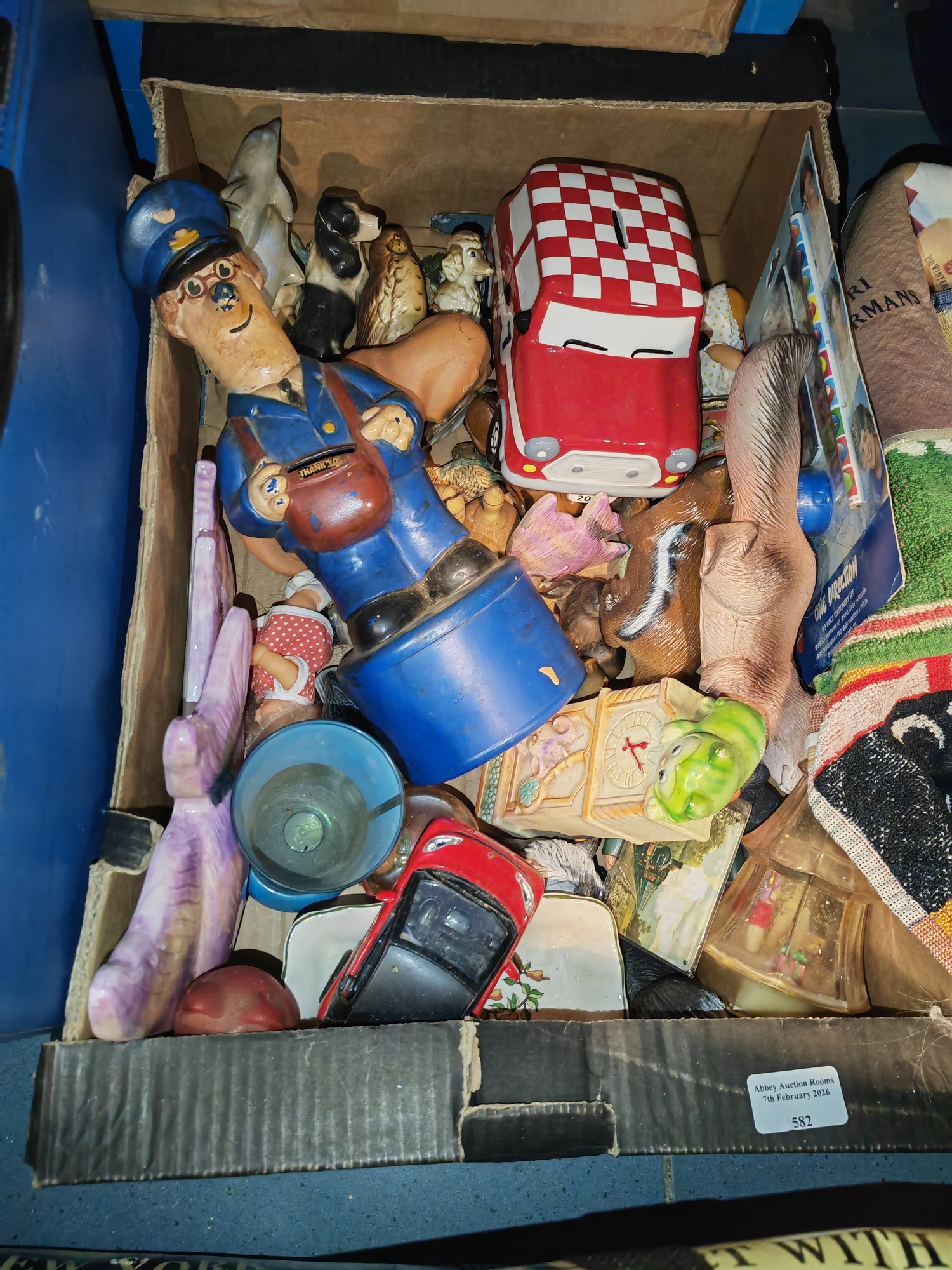 Box Of Figurines And Money Box Etc