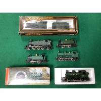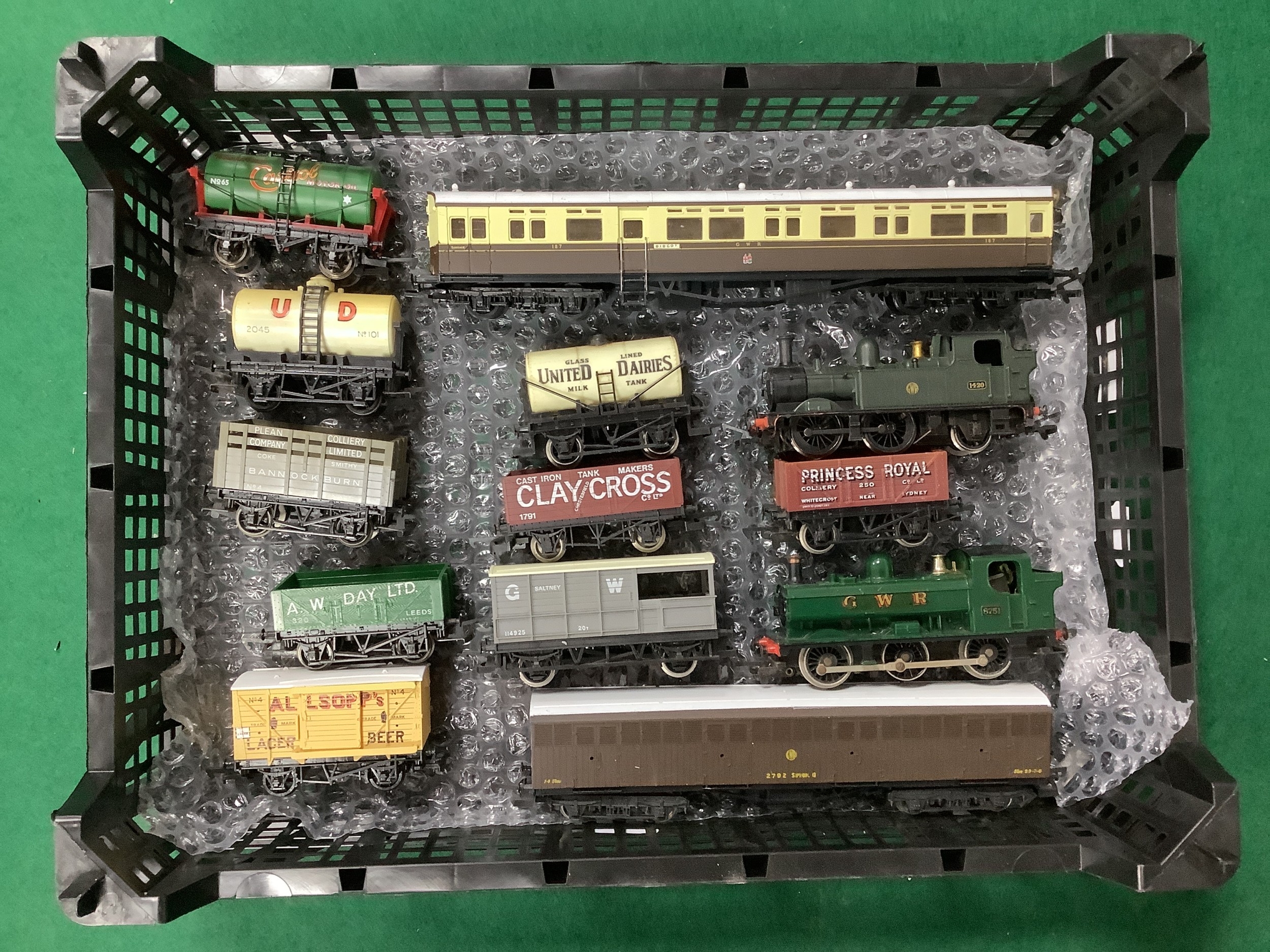 A pair of 00 gauge Great Western branch line trains including a Dapol 14xx 0-4-2 tank engine and Airfix Autocoach; and a Hornby 0-6-0 Pannier Tank, a Lima Siphon G bogie van, eight wagons by Hornby and Mainline and a Hornby Brake Van, all playworn and untested.
