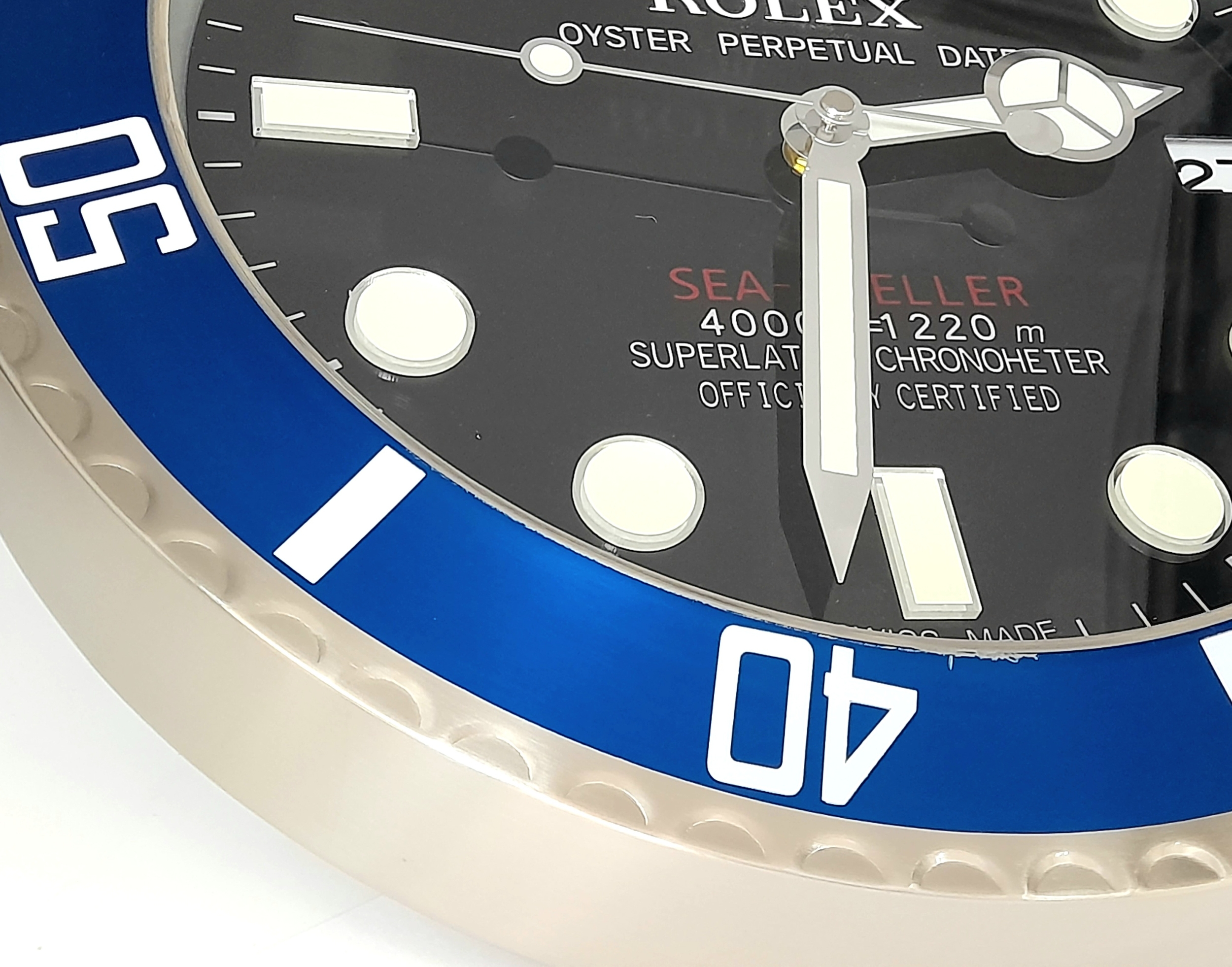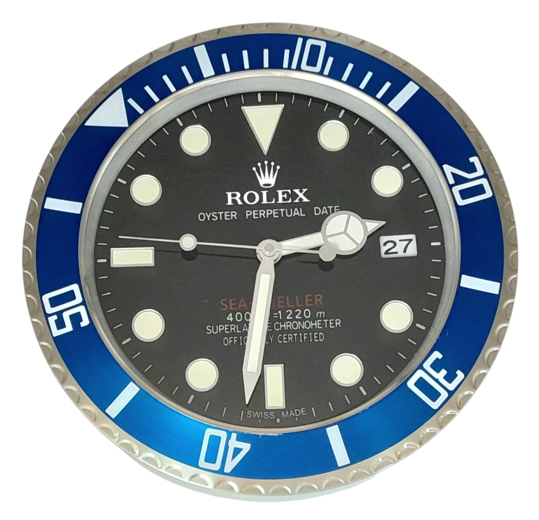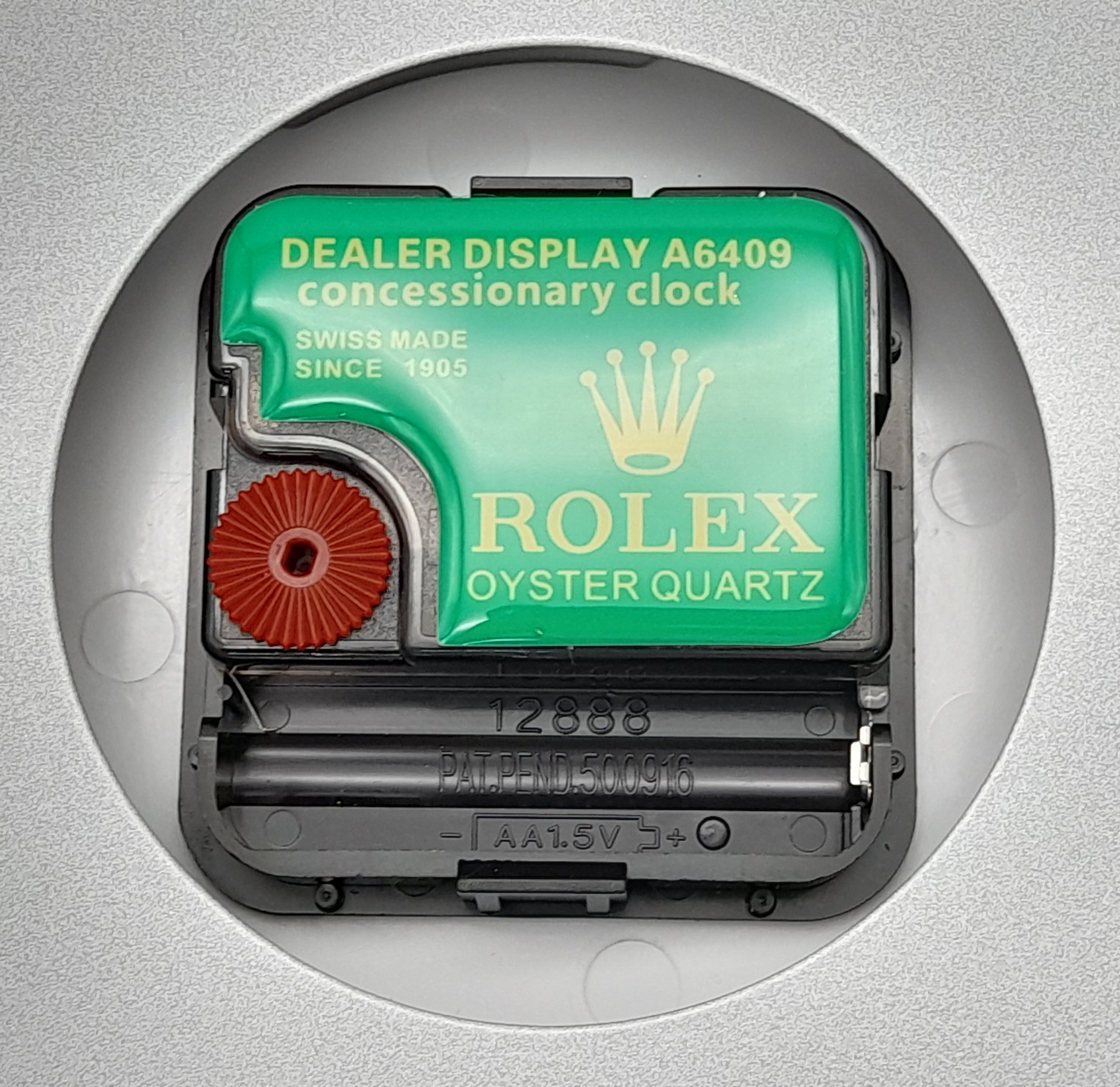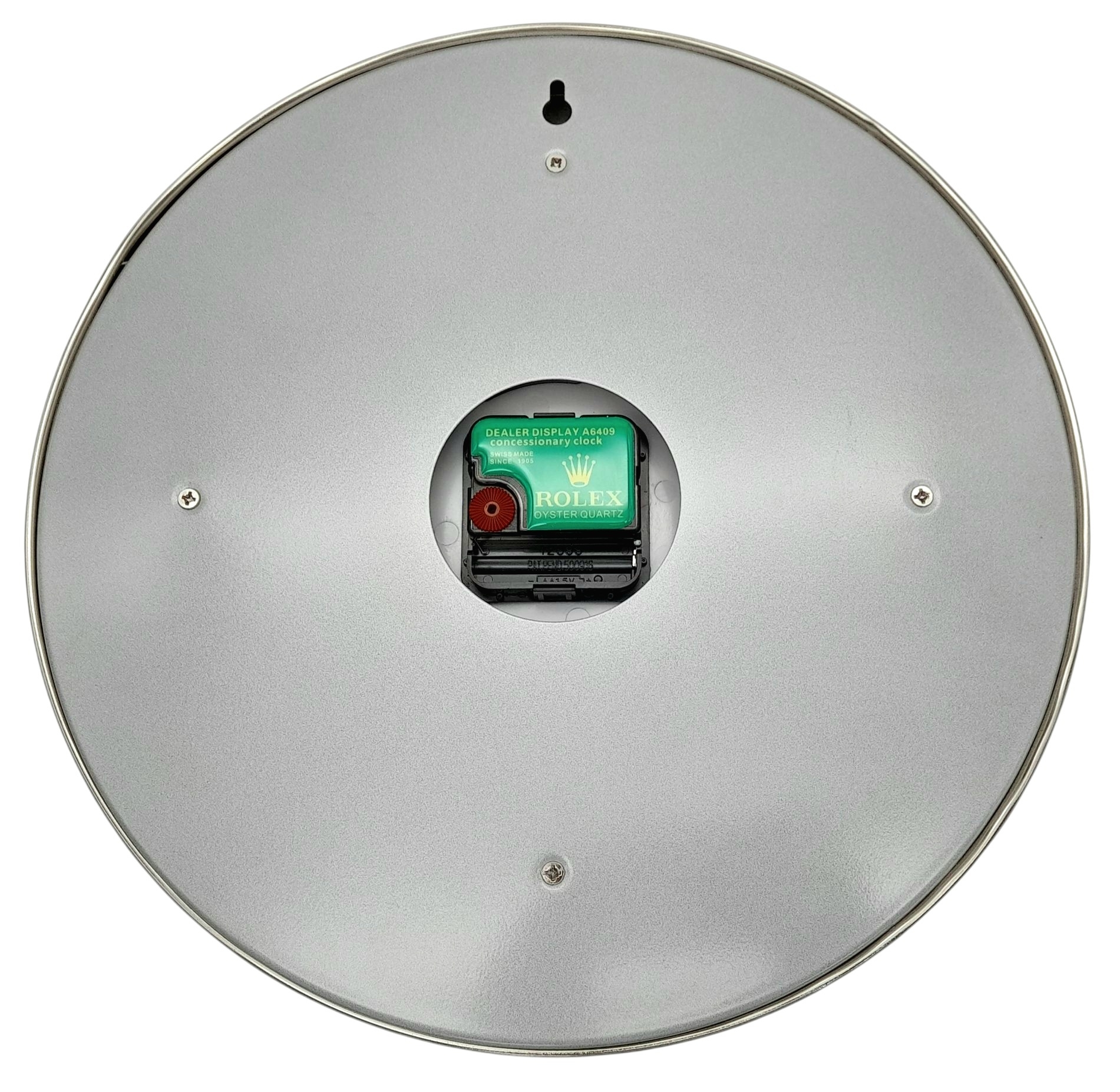 A ROLEX DEALERS CONCESSIONARY WALL CLOCK POWERED BY ONE AA BATTERY. 34cm DIAMETER.