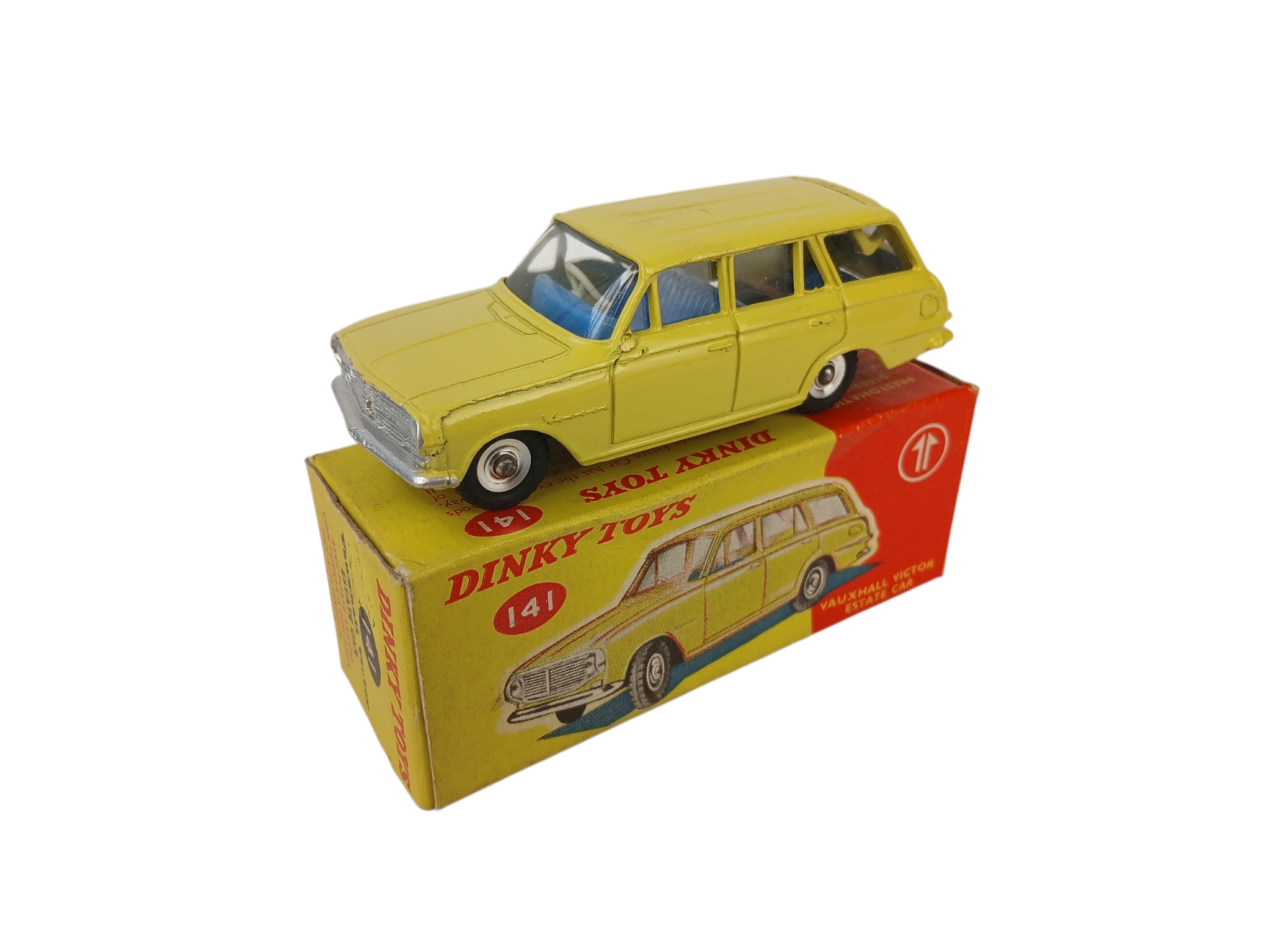 Boxed Dinky Toys 141 Vauxhall Victor Estate in pale yellow with blue interior