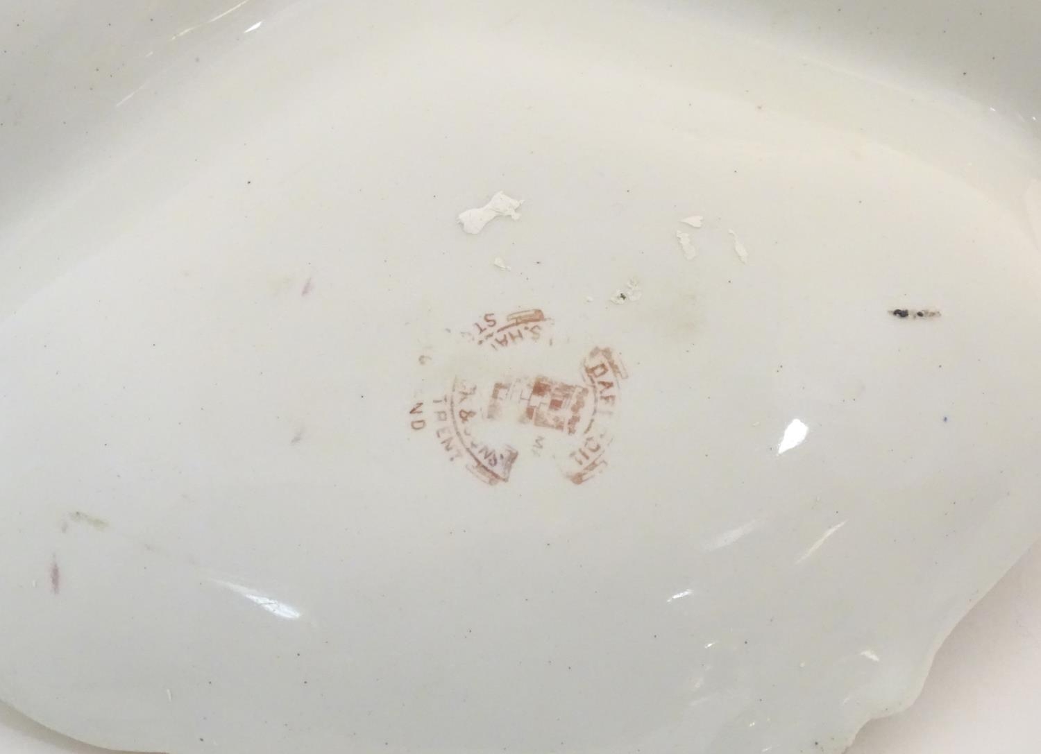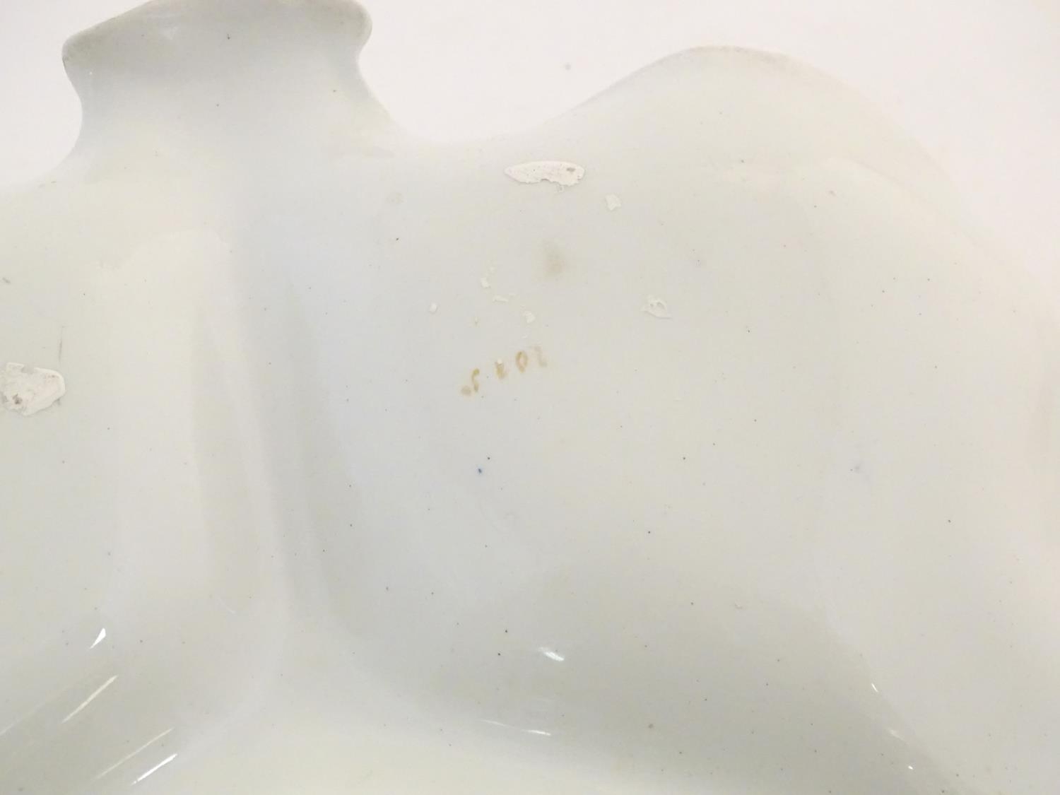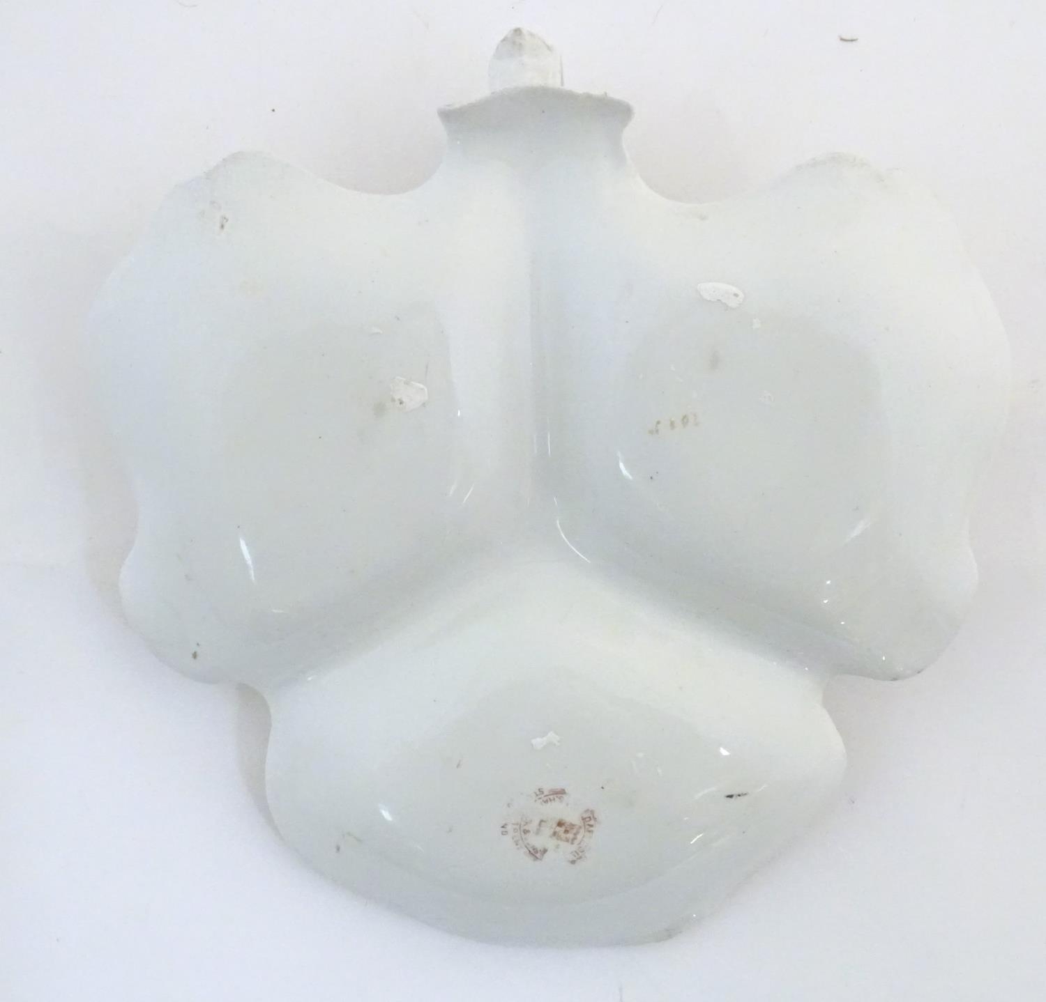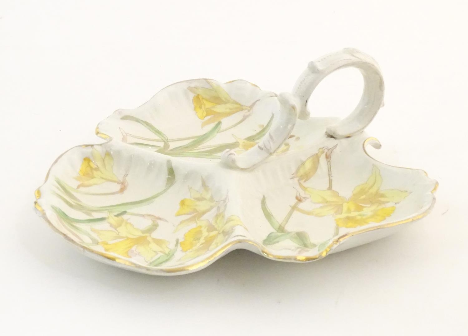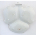 A three sectional leaf shaped plate with central handle and daffodil detail. Marked under. Approx. 11"