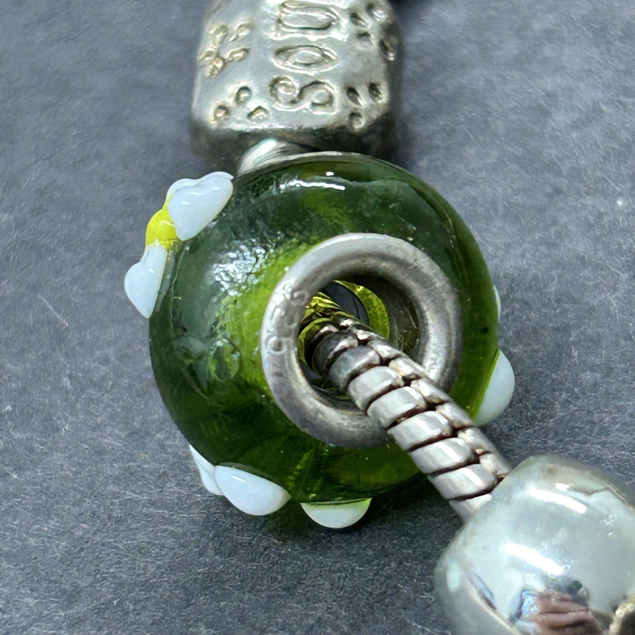 A 925 sterling silver bracelet with a selection of charms, a couple with 925 cores