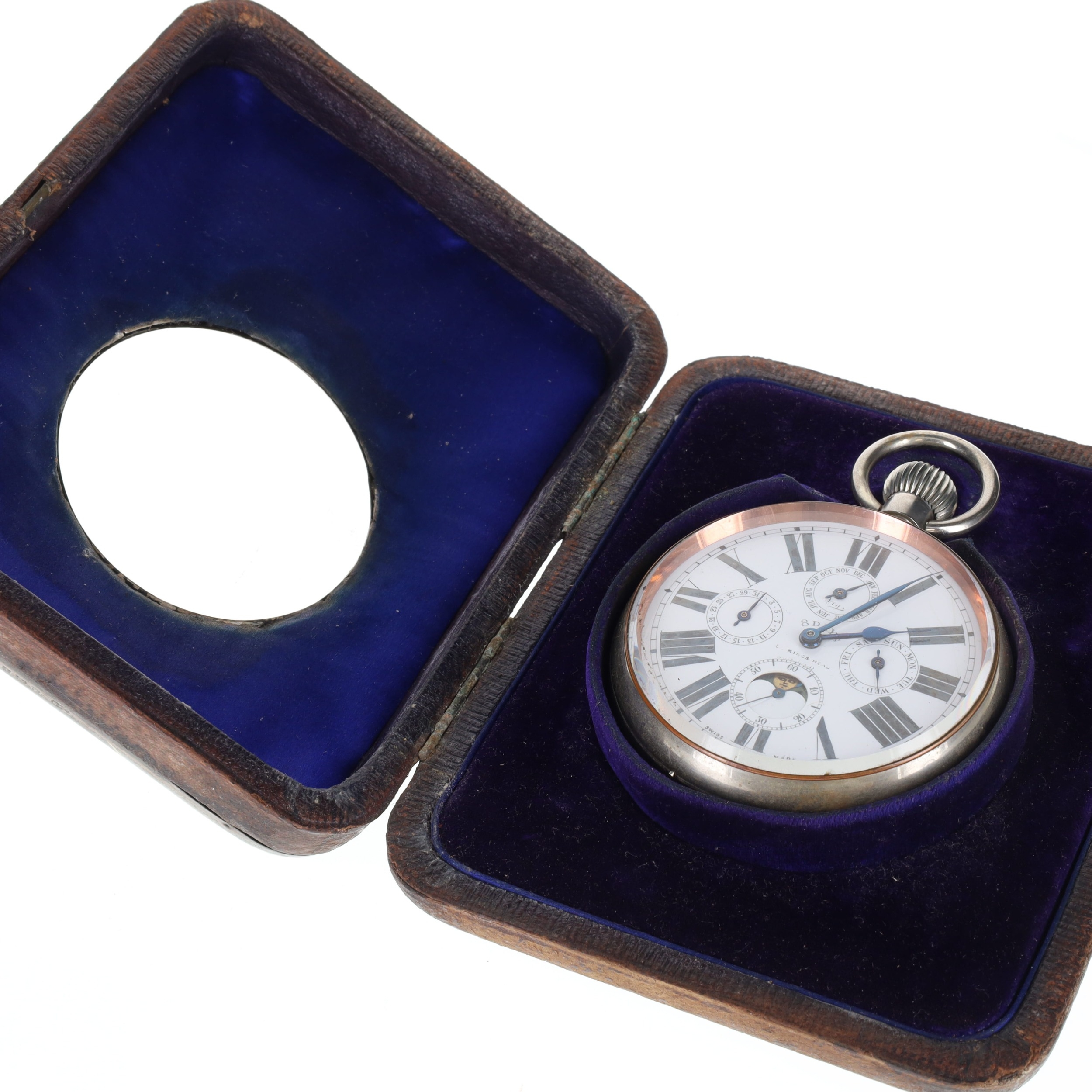 Jumbo 8 Days Triple Calendar Moonphase Pocket Watch with Silver Case
