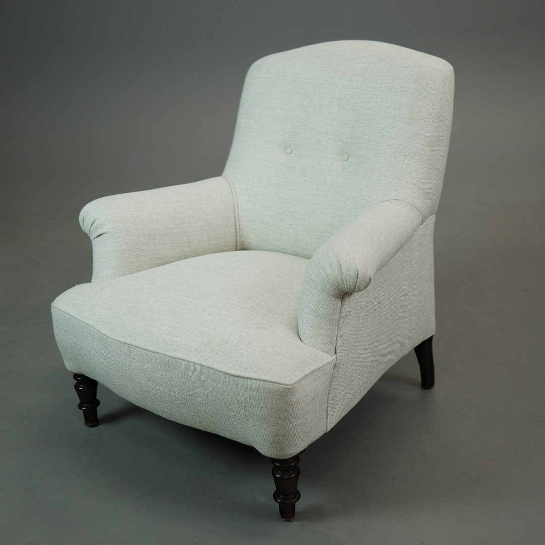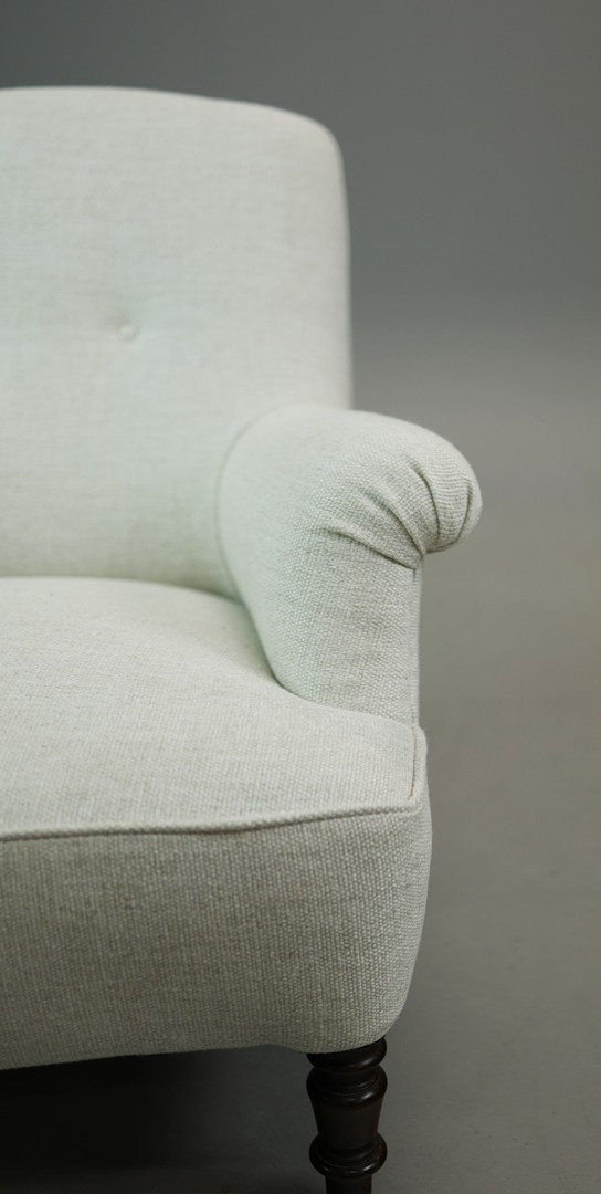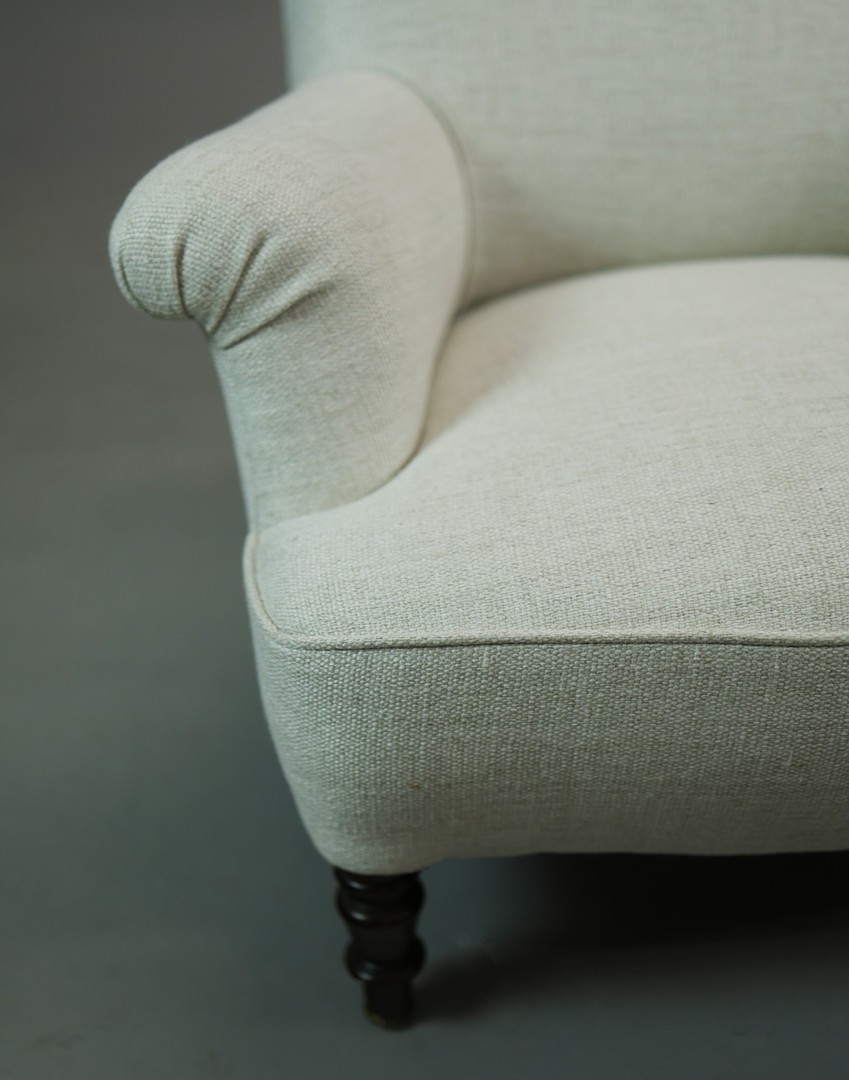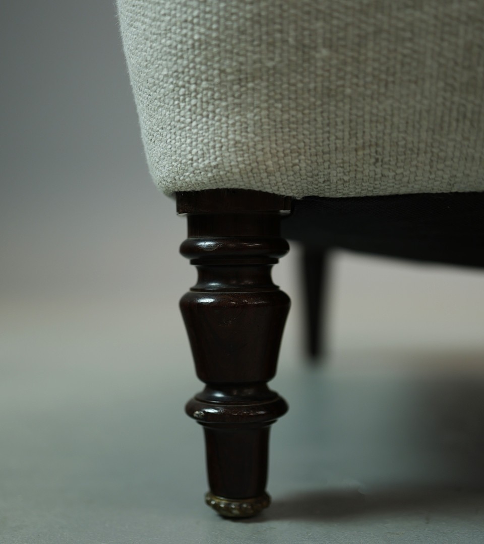 NAPOLEON III ROSEWOOD BERGERE. taupe upholstery, 86cm H x 86cm W 87cm D.