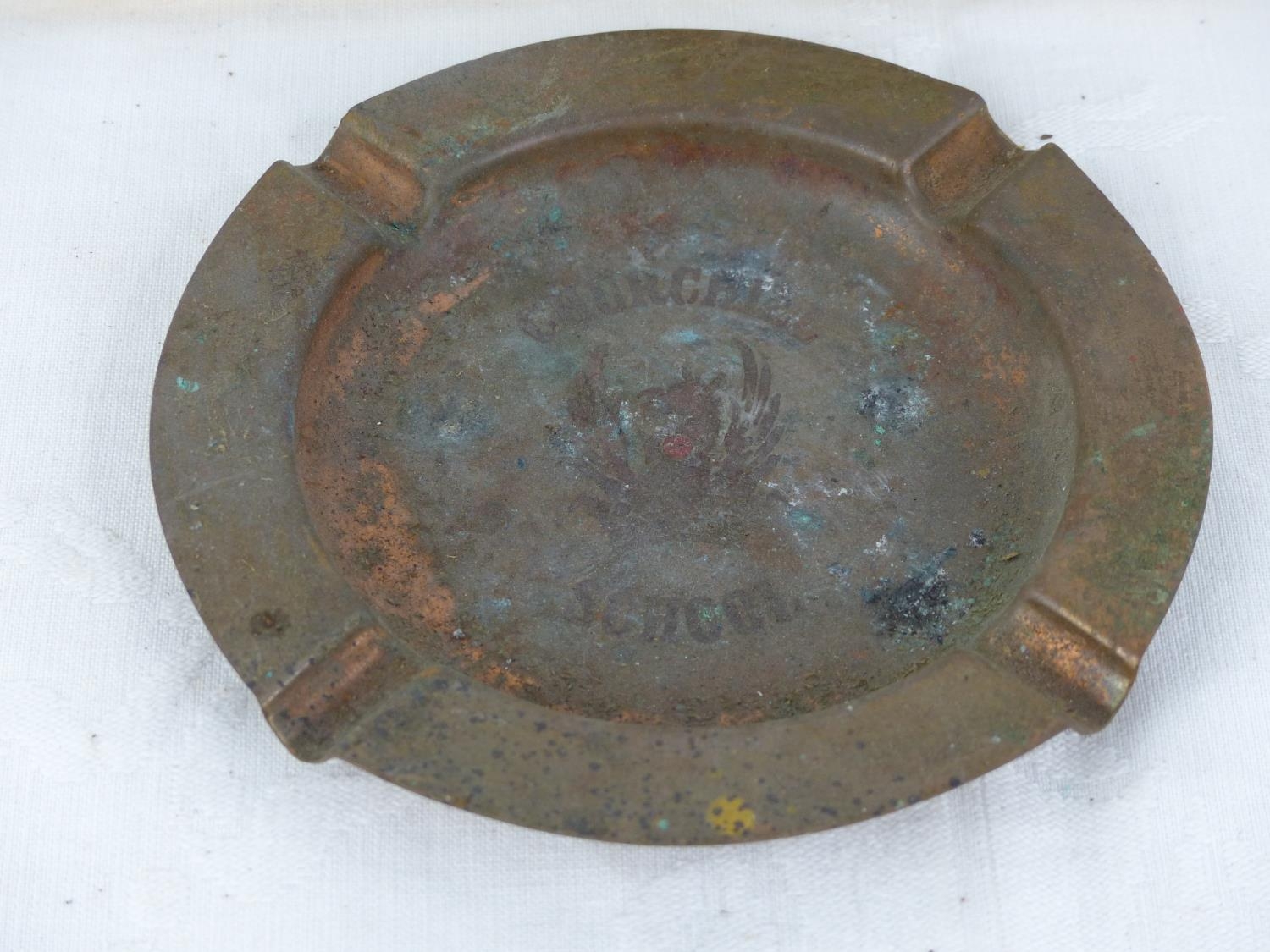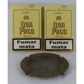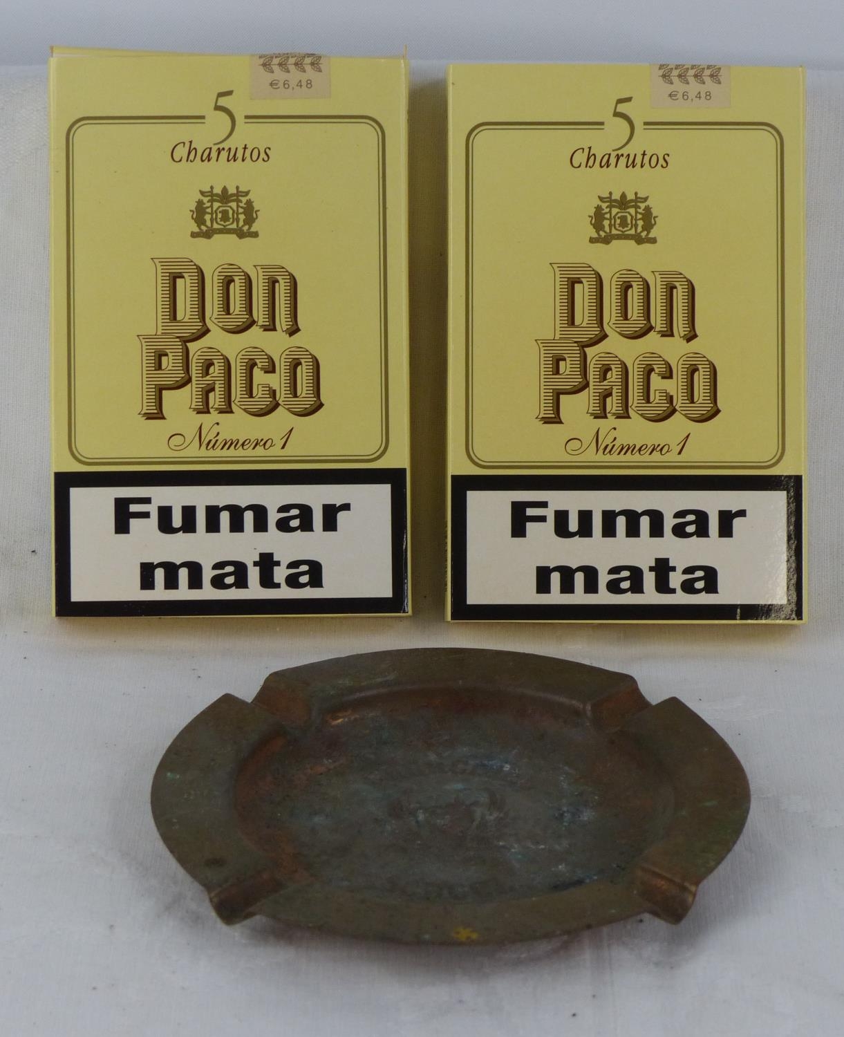 Two boxes of five Charutos cigars and a vintage copper Churchill School ashtray.