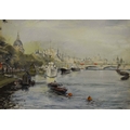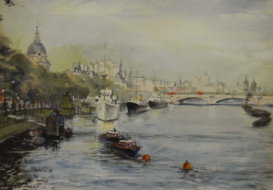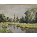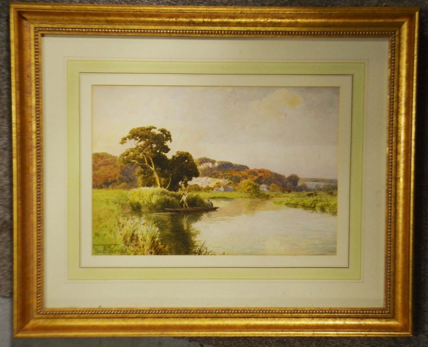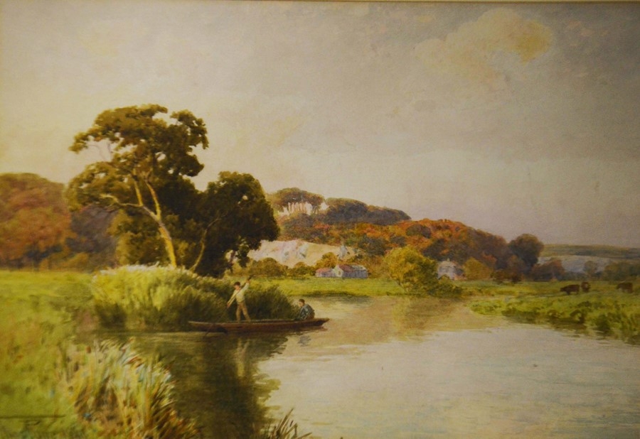 Thomas Pyne (1843-1935), Punting on the River, watercolour, signed and dated 1889, 23cm x 33cm, together with two watercolours of an urban and rural riverscape, signed, all framed (3)