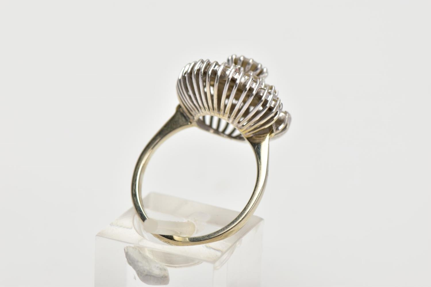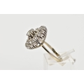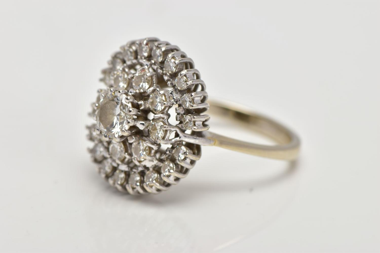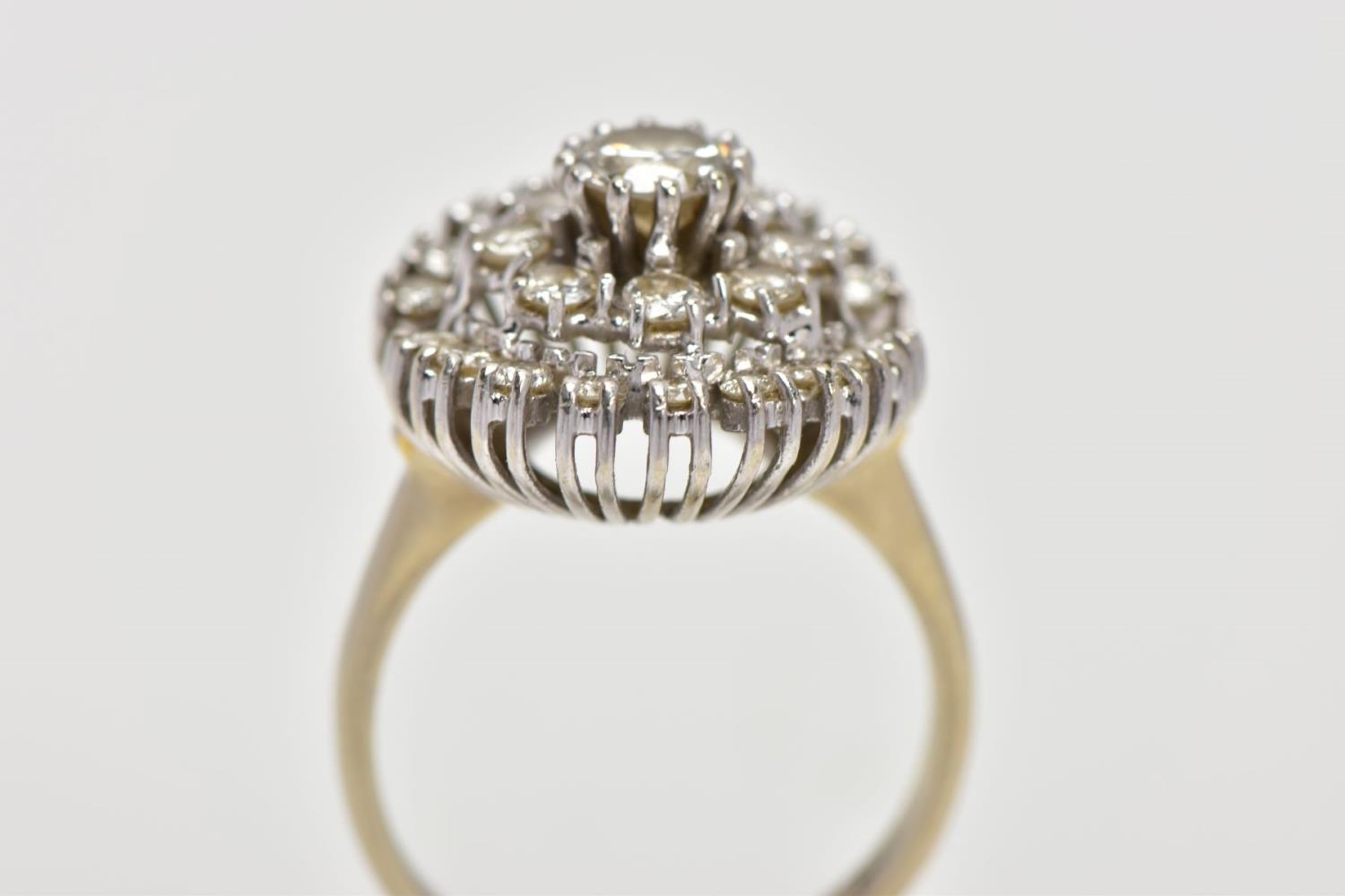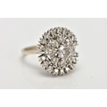 A MODERN DIAMOND CLUSTER RING, centring on a modern round brilliant diamond, estimated weight 0.50ct, enclosed within a boarder of smaller round brilliant cut diamonds, overall estimated total diamond weight 0.93ct, average colour assessed as J-K, clarity assessed as SI1 - SI2, ring size N1/2, stamped '750', approximate gross weight 6.2 grams. (Condition report, this ring is in good condition, all stones bright and lively, claws appear to be secure.)