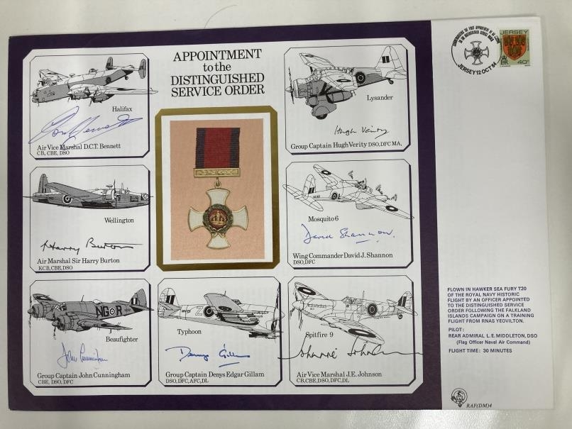 Stamps: Commemorative covers R.A.F. Museum Awards series signed cover collection. DM set of nineteen large DM Medal Special signed covers, a full run of covers from Air Force Cross to Knights Cross signed by some of the recipients which include Arthur T. Harris. The V.C cover is signed by seven Victoria Cross winners including G.L. Cheshire. Other signatures include Dambusters' Dave Shannon, Micky Martin and Bill Townsend, the Battle of Britain Star signed by seven Battle of Britain aces. A very rare set.