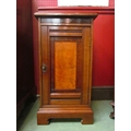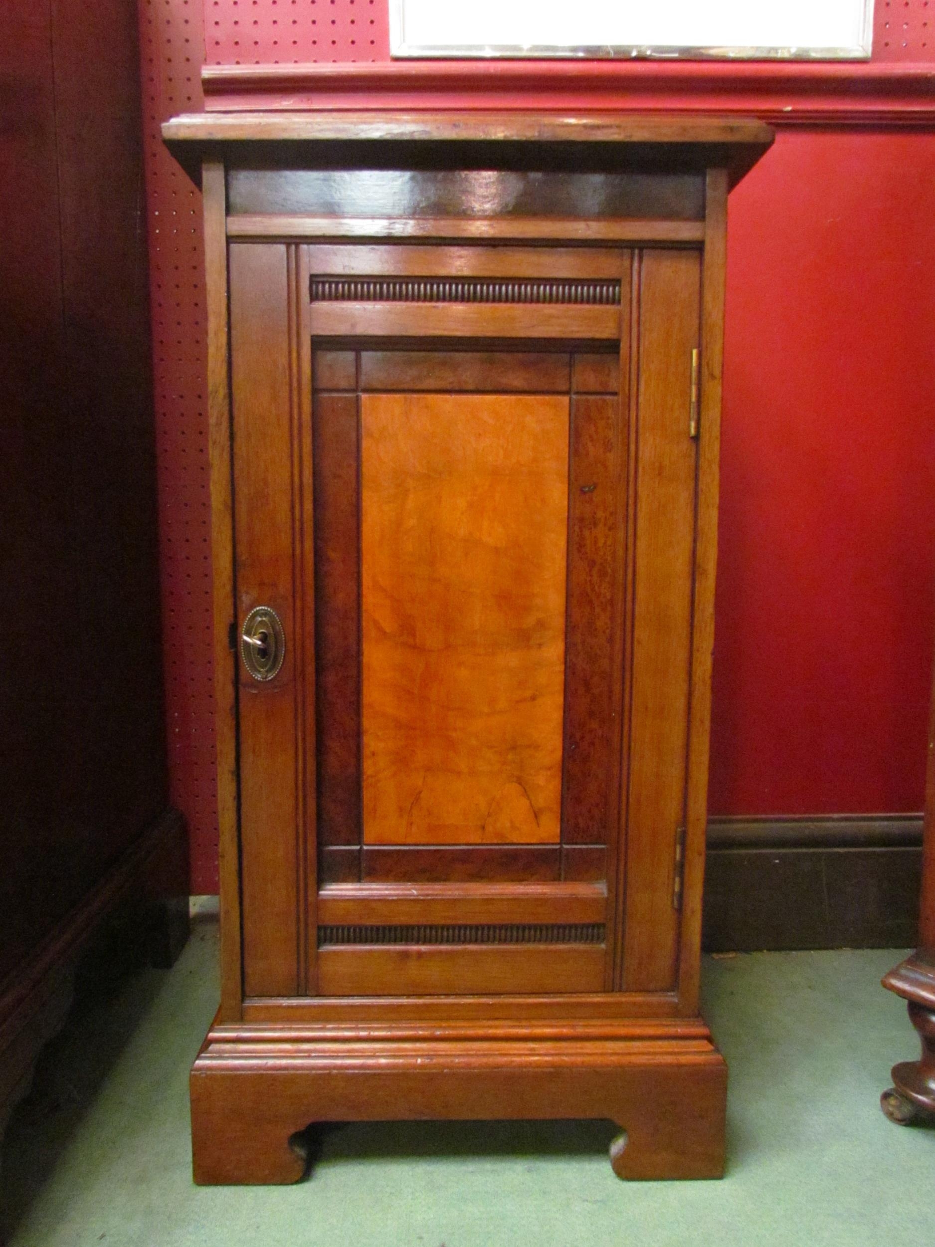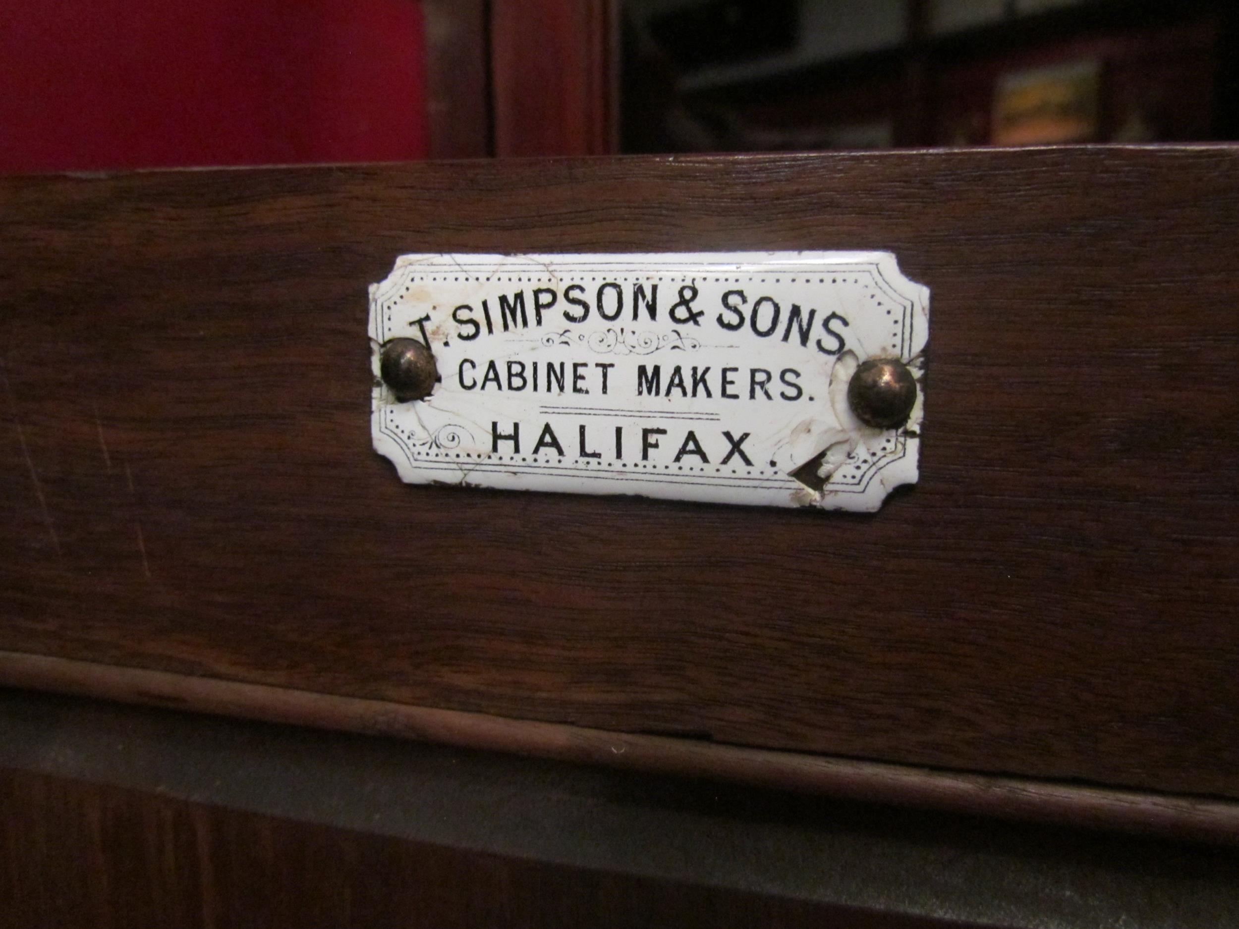 A Victorian walnut bedside cabinet retailed by "Simpson & Sons, Halifax", the single door with key over bracket feet, 71cm high x 38cm wide x 34cm deep