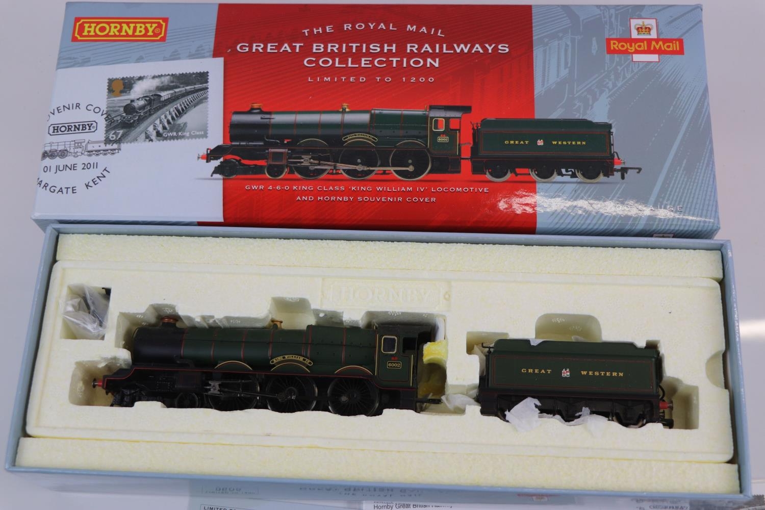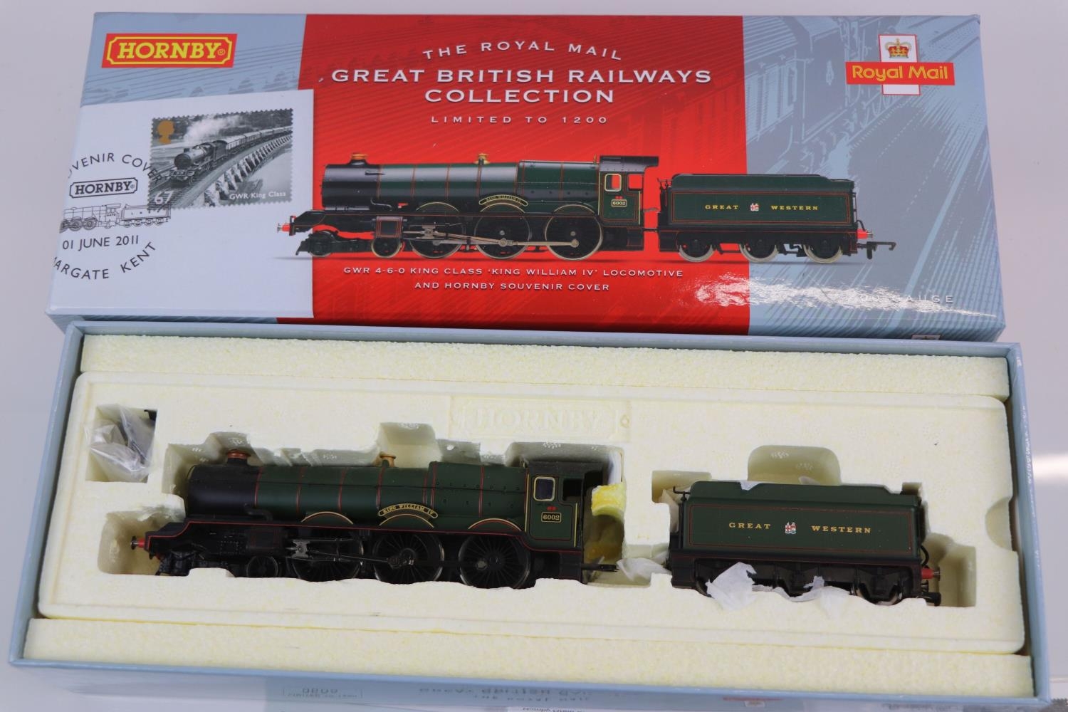 Boxed Hornby OO gauge ltd edn The Royal Mail Great British Collection Royal Mail GWR 4-6-0 King Class King William Locomotive and Hornby Souvenir Cover, complete and vg