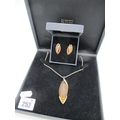 A Pair of Modern Hallmarked Silver Amber Coloured Earrings, together with similar style pendant, on belcher link chain, in boxes.