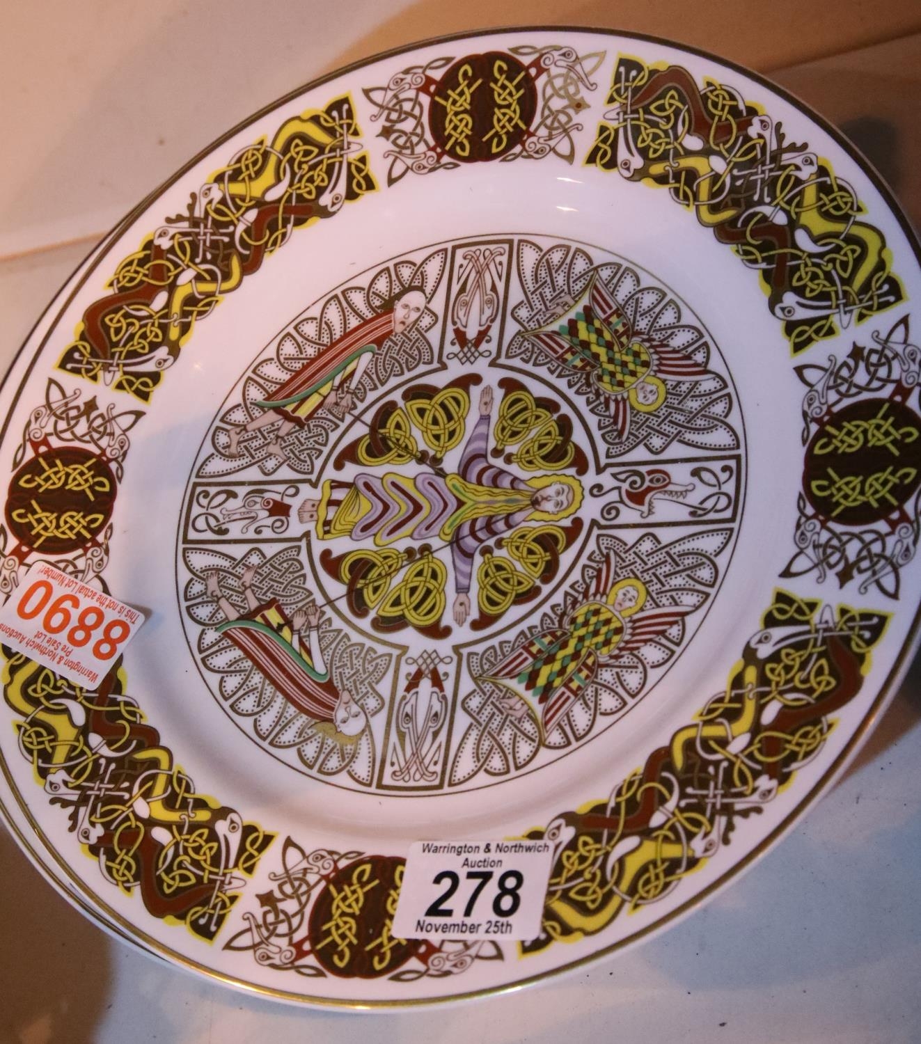 Seven Spode 25cm Celtic design decorative Gospel plates and a Millennium celebration plate.. Not available for in-house P&P