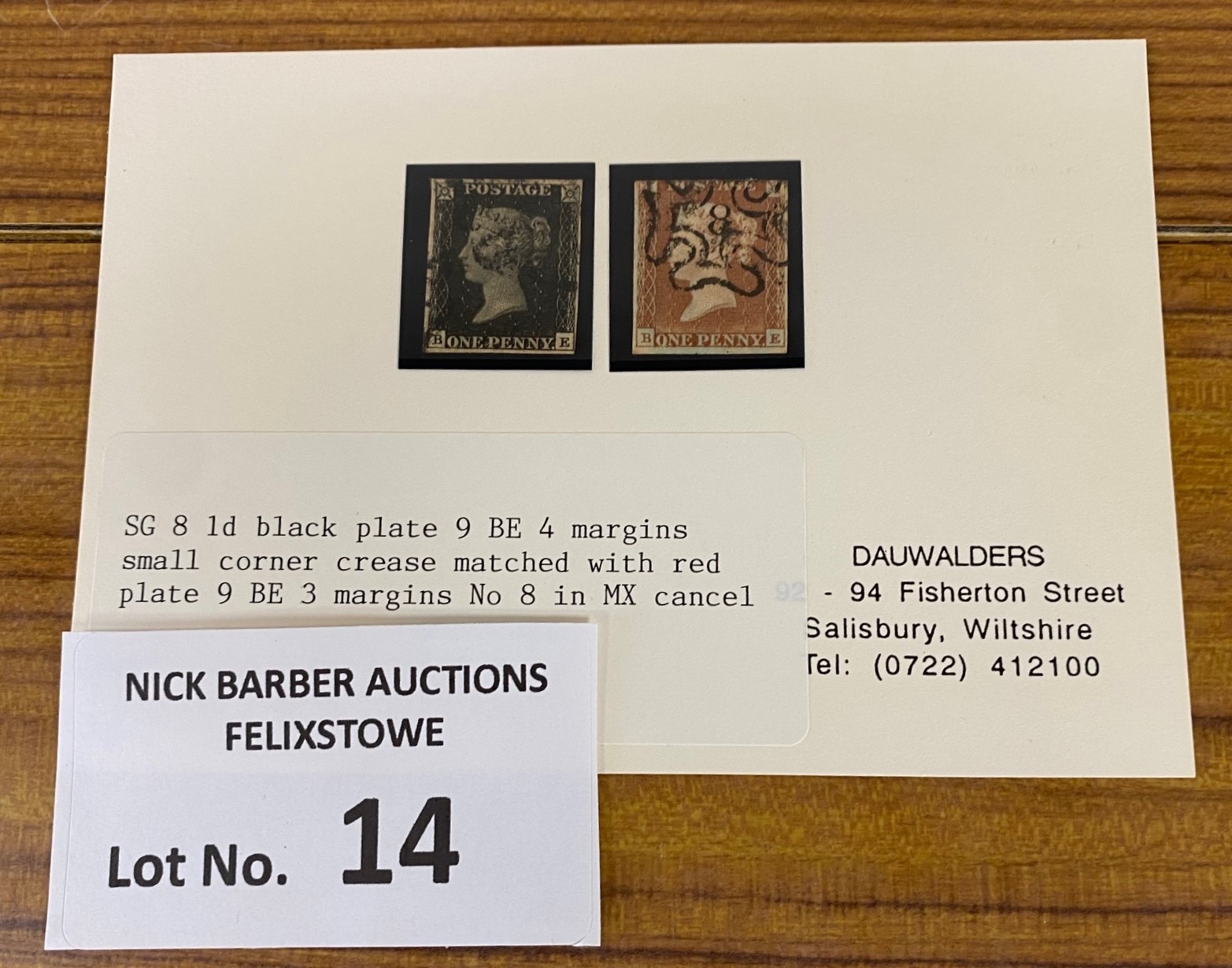 Stamps : Penny Black SG8 4 margins, small corner crease, with Penny Red.