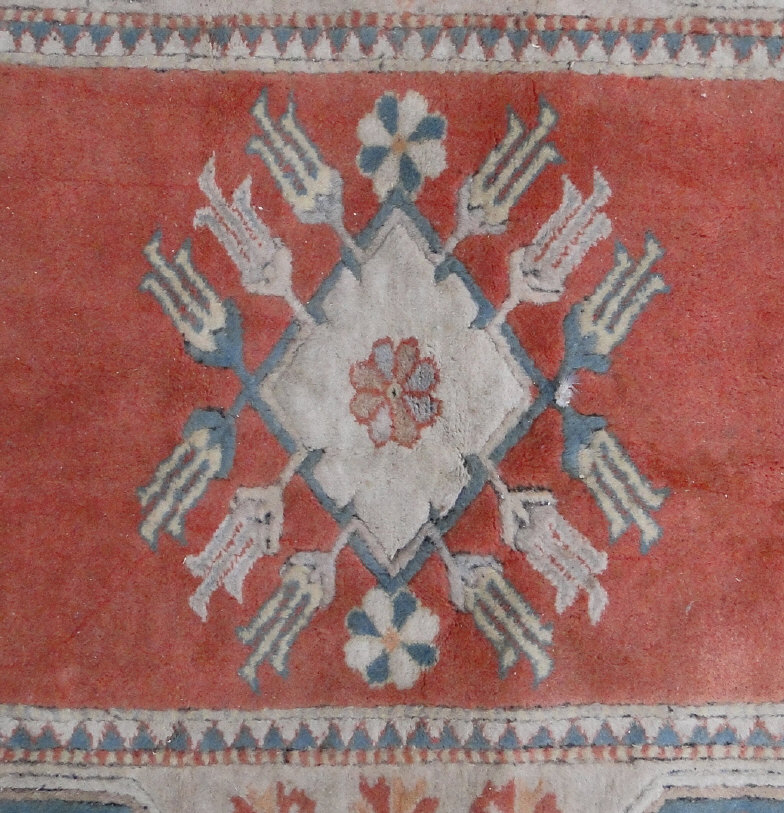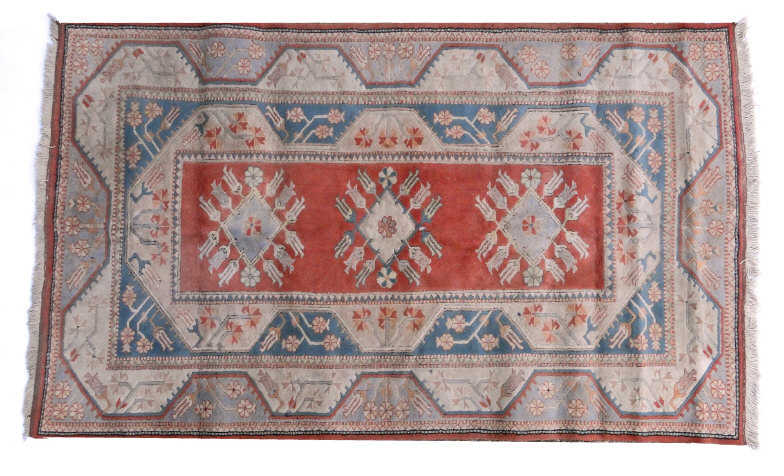 Modern Indian rug decorated with panels of flowers, trees and swags in a floral border, approximately 180cm x 120cm
