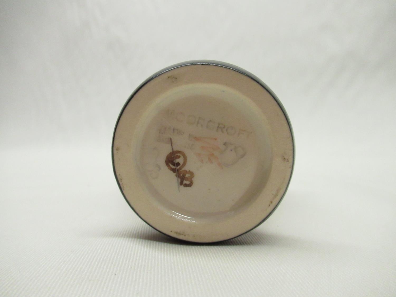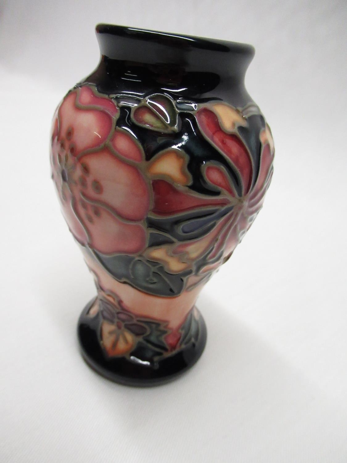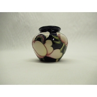 Small Moorcroft baluster vase decorated in Spring Flower pattern on a blue ground, impressed marks and painted marks to base, H10cm