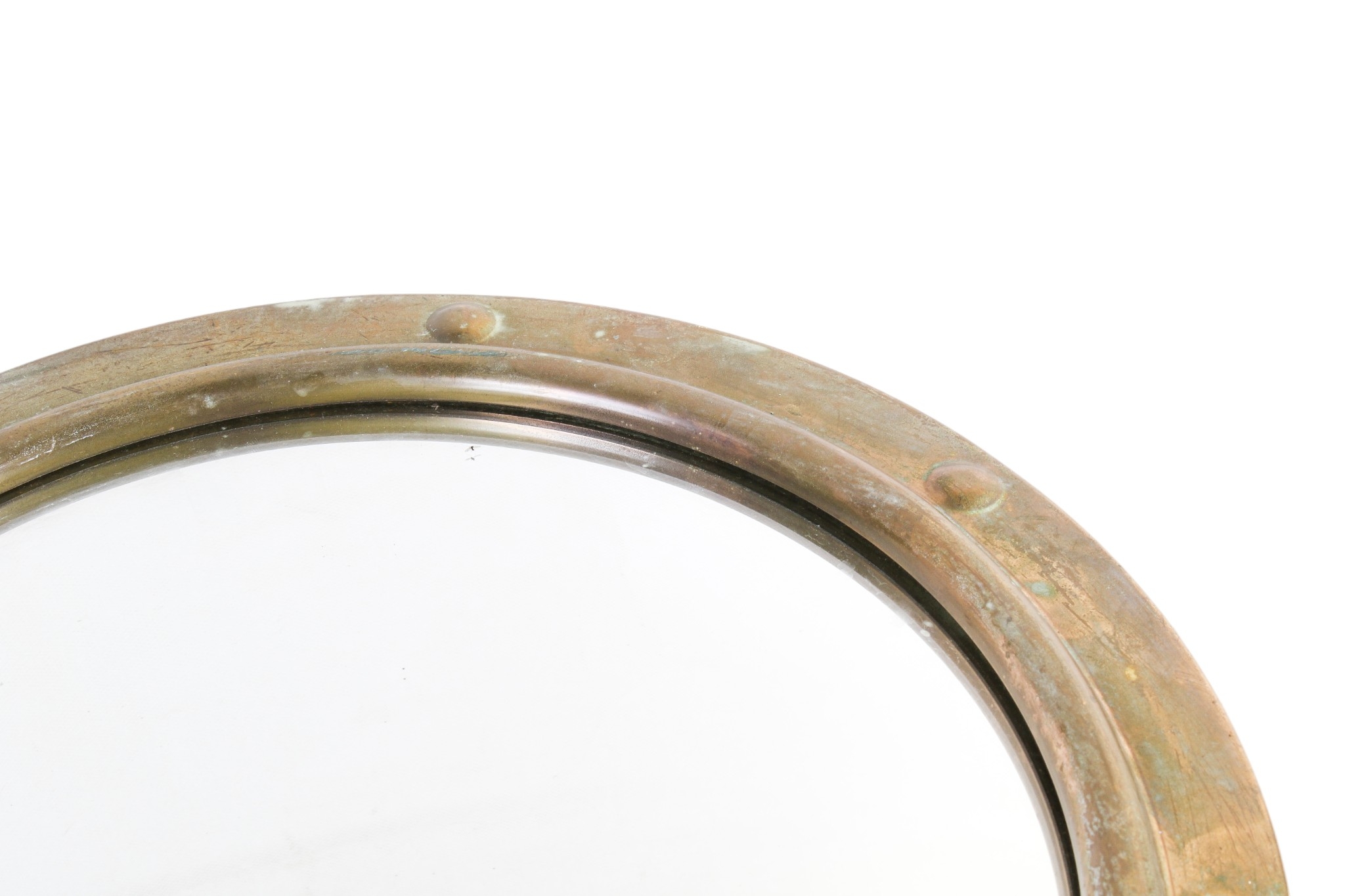 A circular convex brass framed wall mirror. Total diameter 37cm