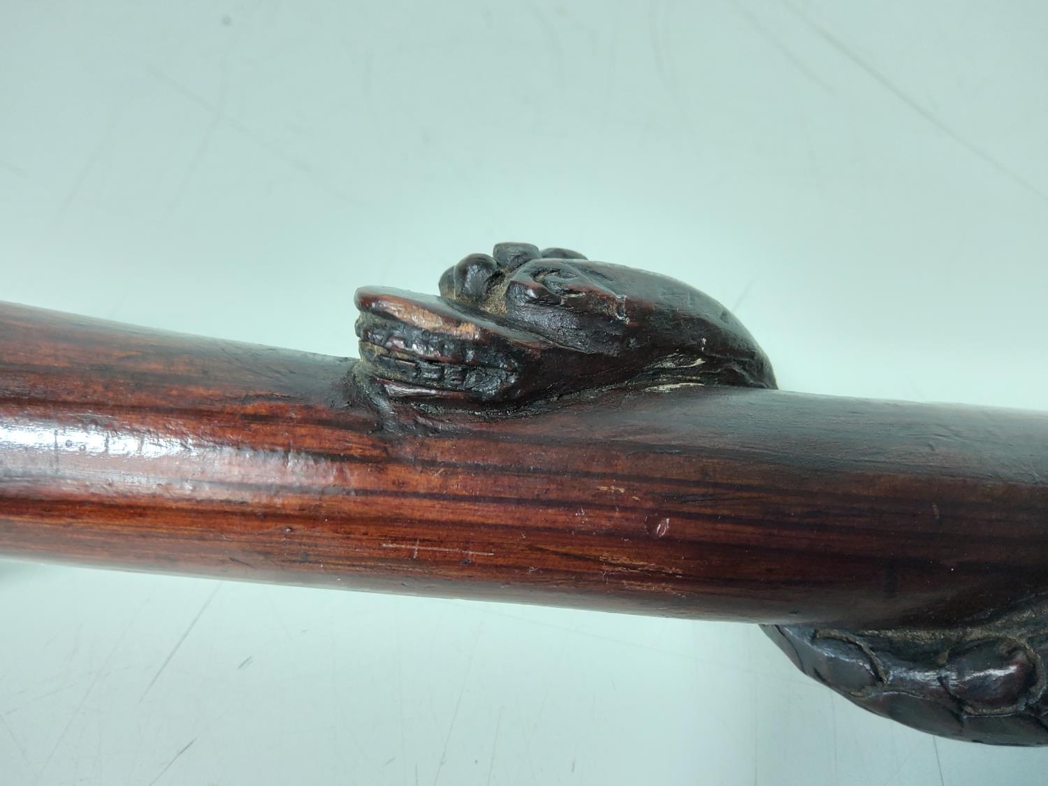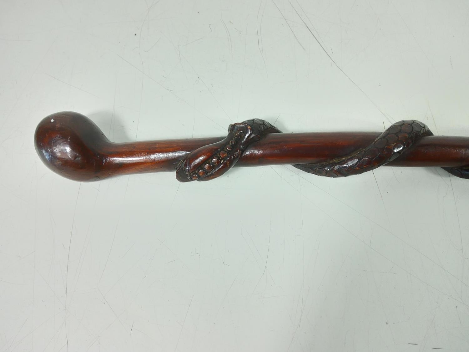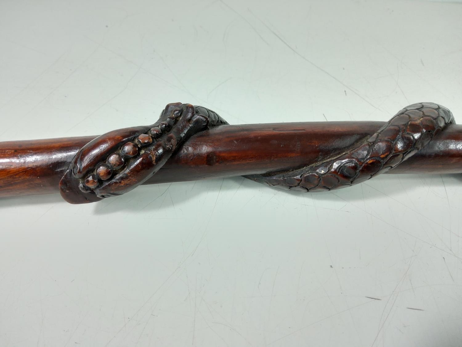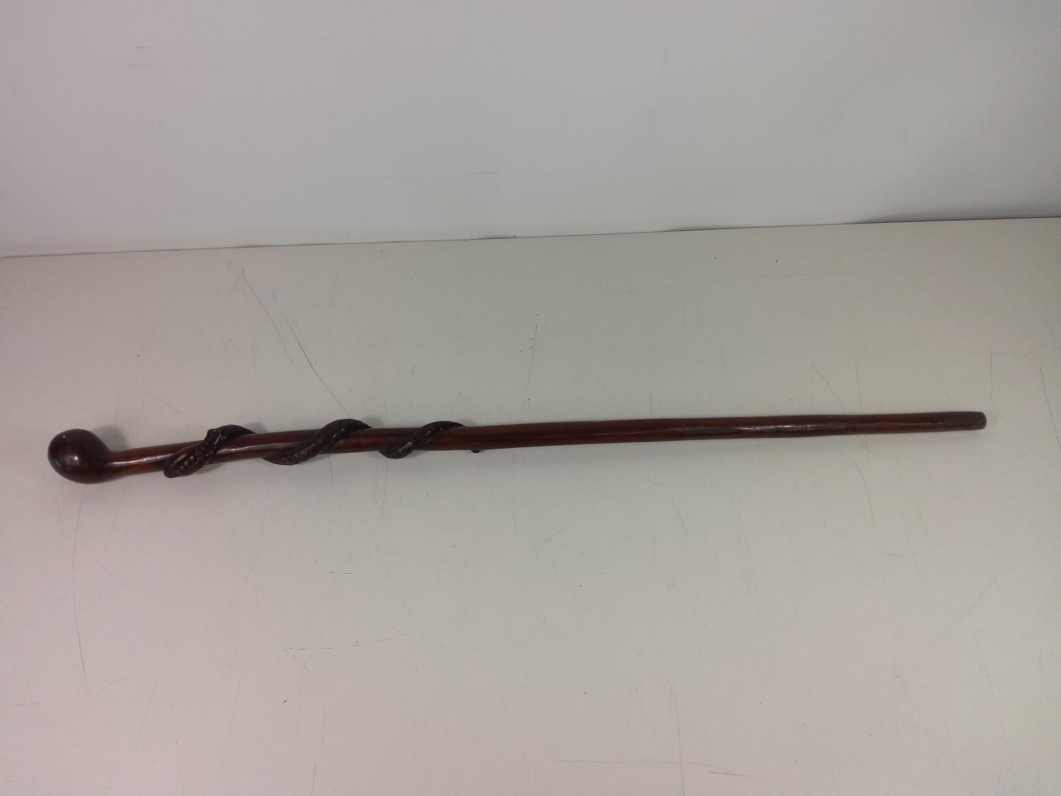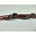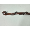 Wooden walking stick with twisted snake