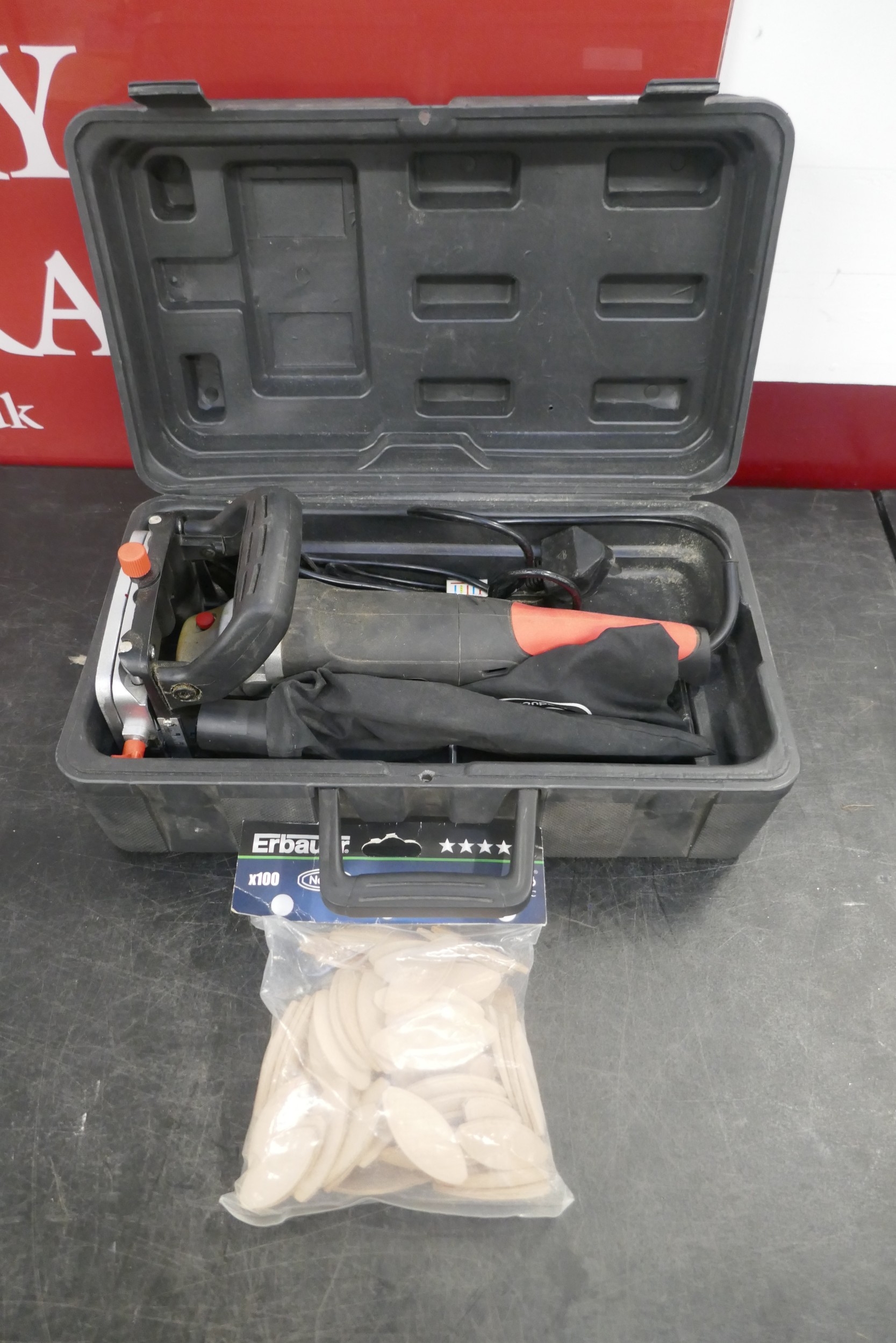 A Sip 230V biscuit jointer in case with a pack of No2 biscuits