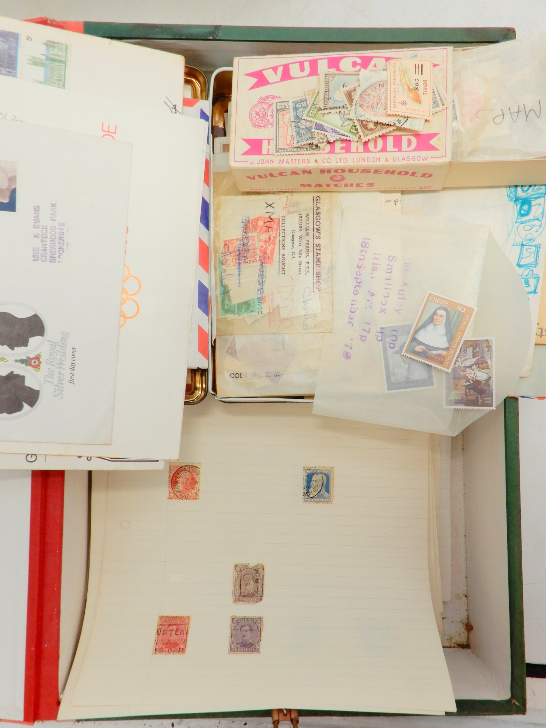 World Collection in 2 Albums plus many pages inc. GB and USA + much more. Also a large quantity of lose stamps in envelopes, not checked. A Lot, well worth checking.