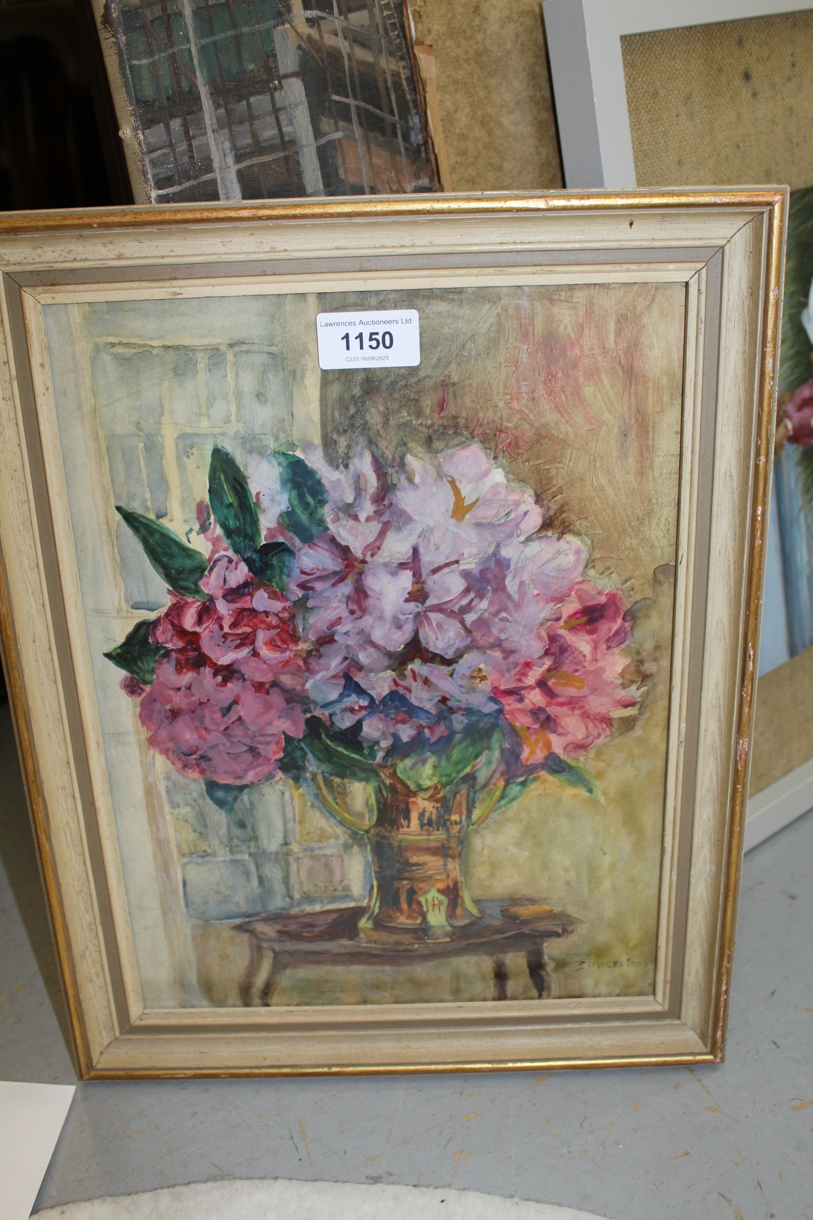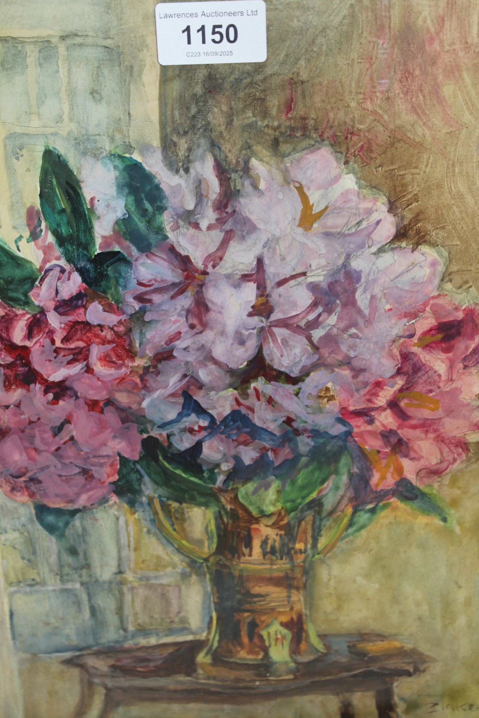 Gouache painting, sketch of summer flowers in a vase, signed Zinkeisen, 33 x 24cm, framed