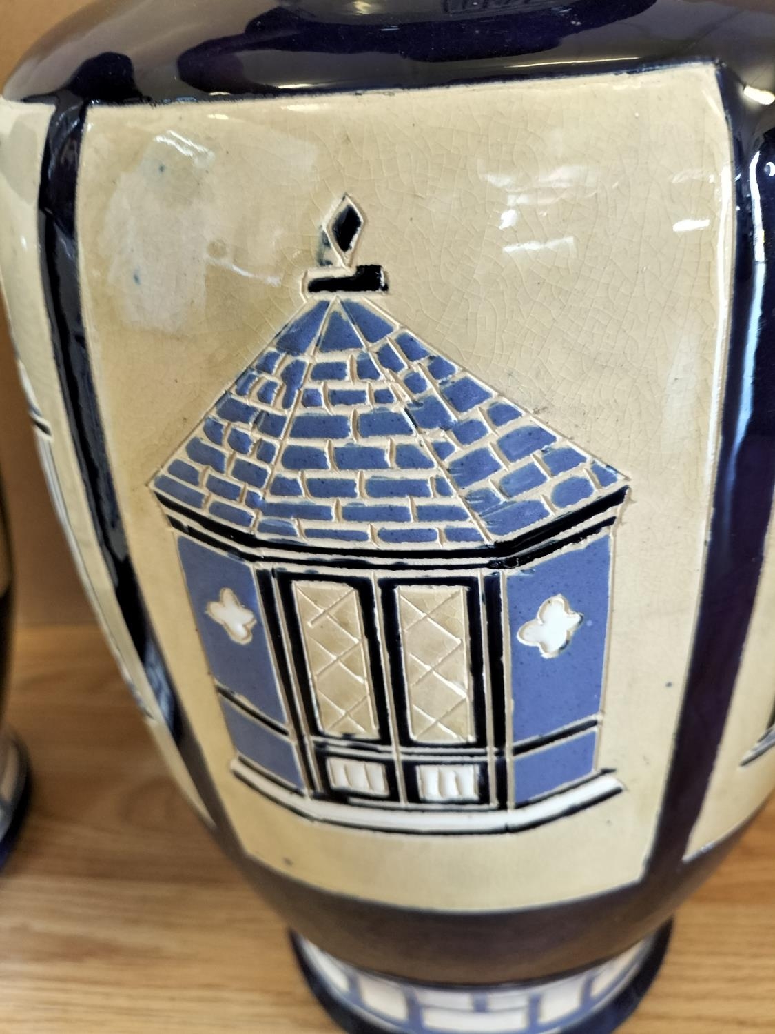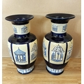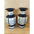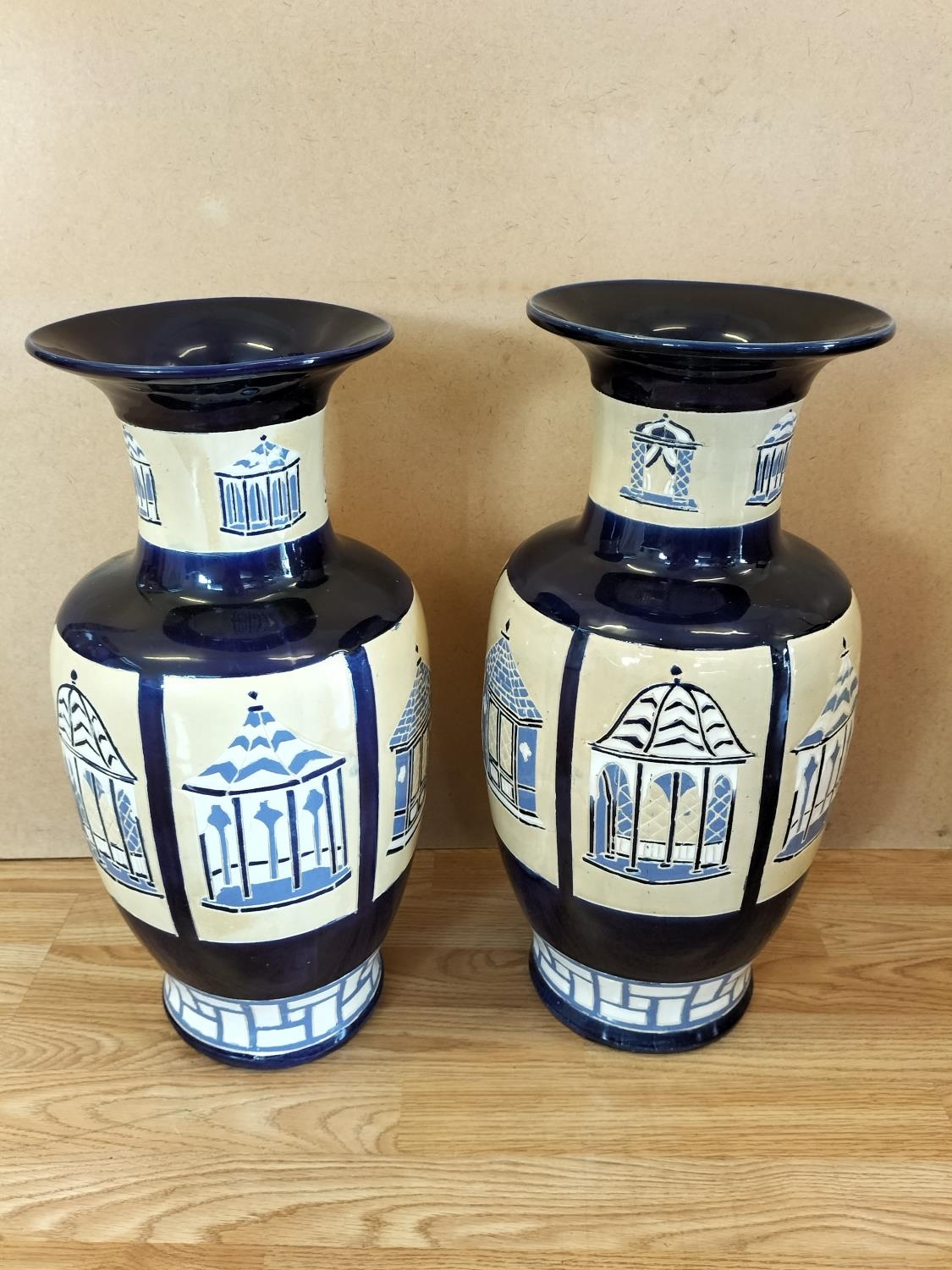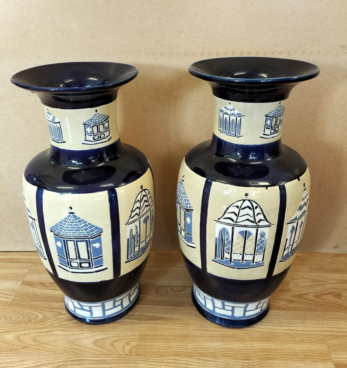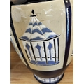 Pair of Large 53cm Ceramic Baluster Gazebo/Pagoda Vases. Unmarked, Possibly Brannam Pottery.