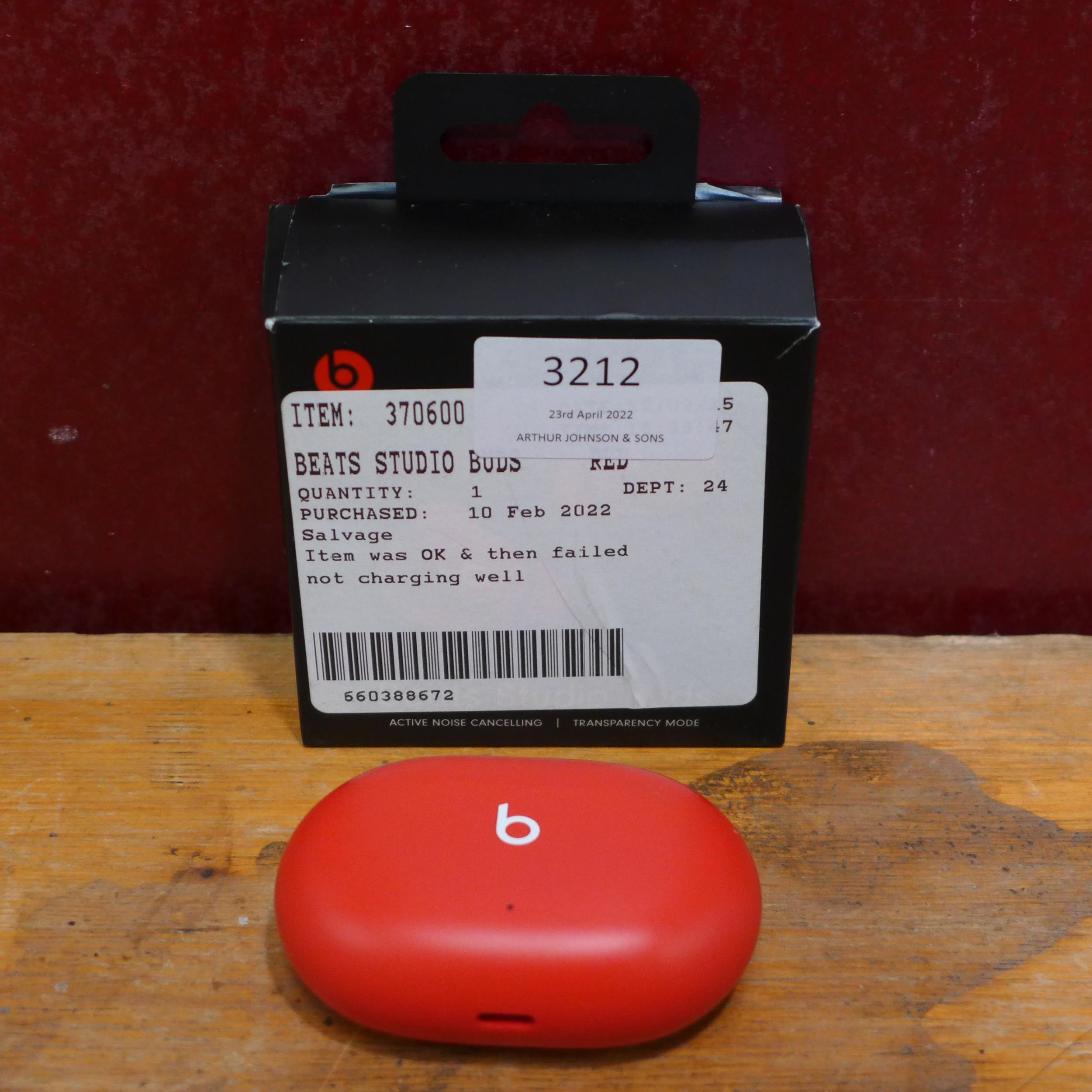 Beats Studio Buds Red - Mj4X3Zm/A , (249-389) * This lot is subject to vat