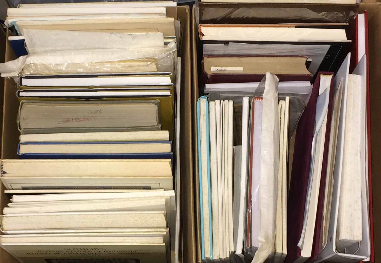 CAPE OF GOOD HOPE, NATAL, TRANSVAAL ETC - in two cartons, handbooks, auctions catalogues etc, inc. The Postage Stamps of the Transvaal by Nissen (undated; c1910), Les timbres de Natal by Moens 1883 (reprinted modern edition), Cape Triangular Stamps by Rosenthal 1956, The Victorian Postage Stamps of Natal by Mann c1930, and The Postal Stationery of Natal by Dickson & Hanman 2001. (c58 items)Cross Reference: CAPE OF GOOD HOPE, TRANSVAAL, NATAL