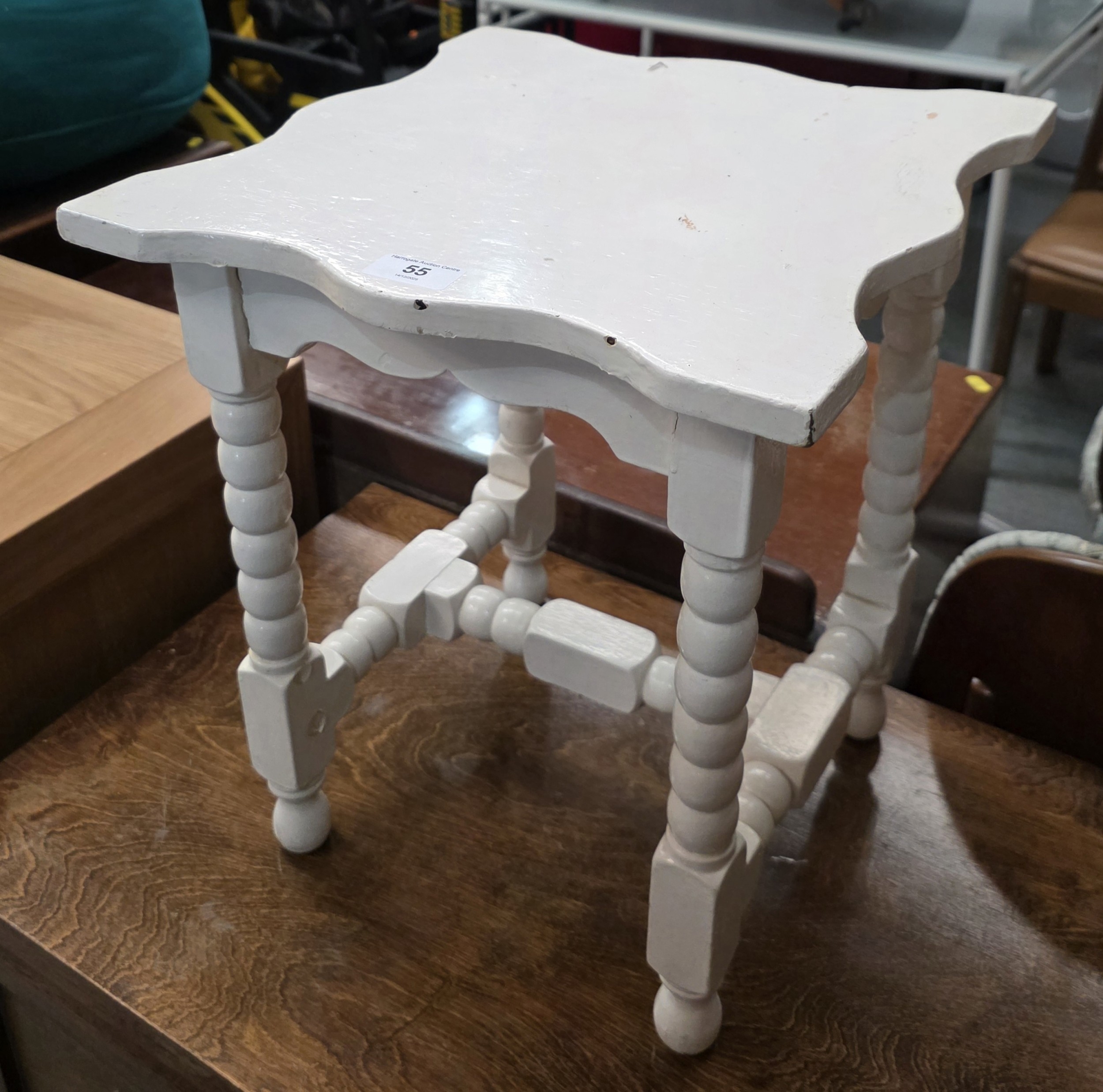 1930S PAINTED OAK TABLE ON BOBBIN LEGS
