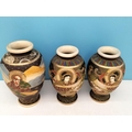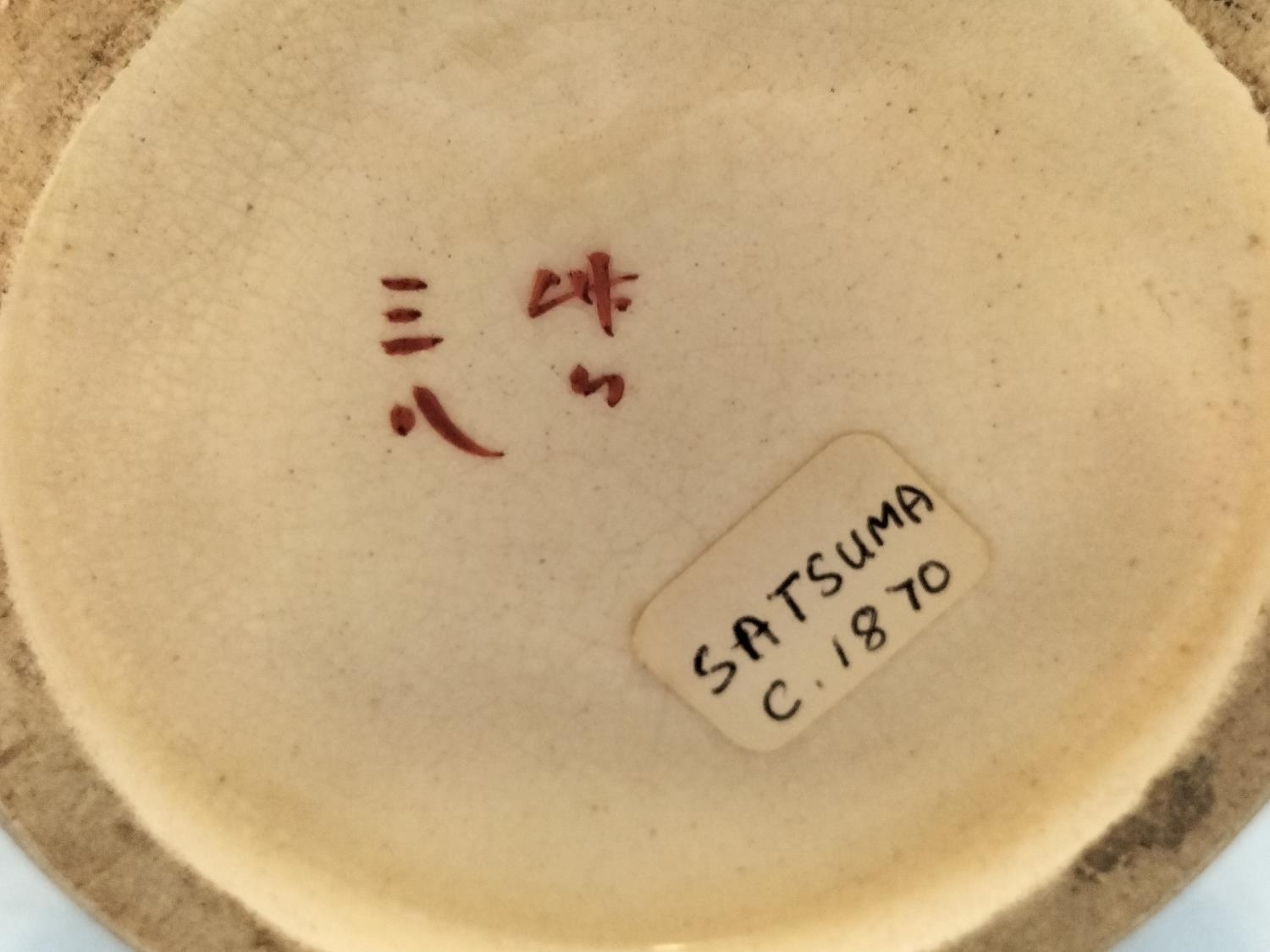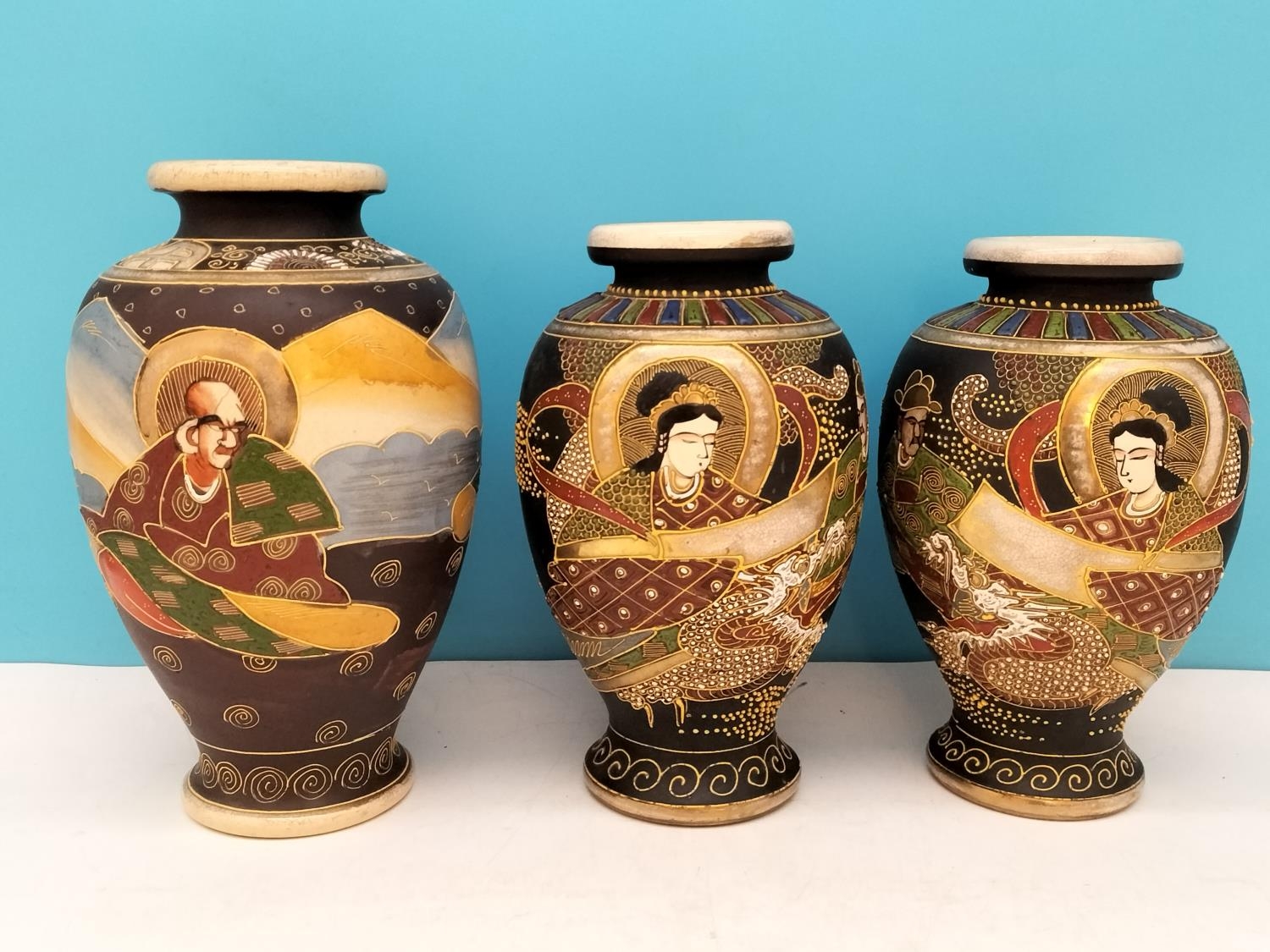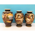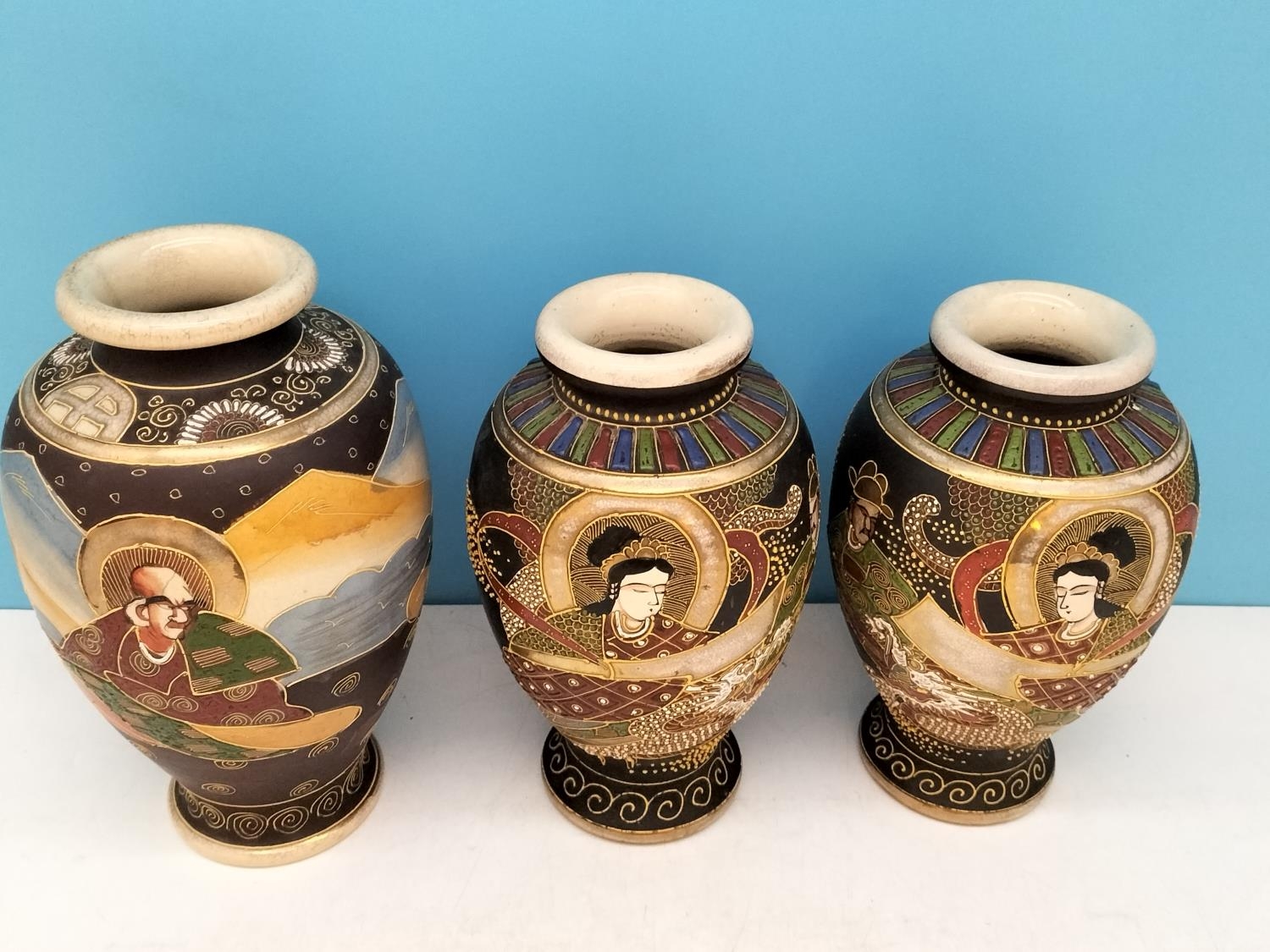 Late 19th Century Meiji Period Satsuma Vases (3). Character Mark to Base. Tallest 26cm.