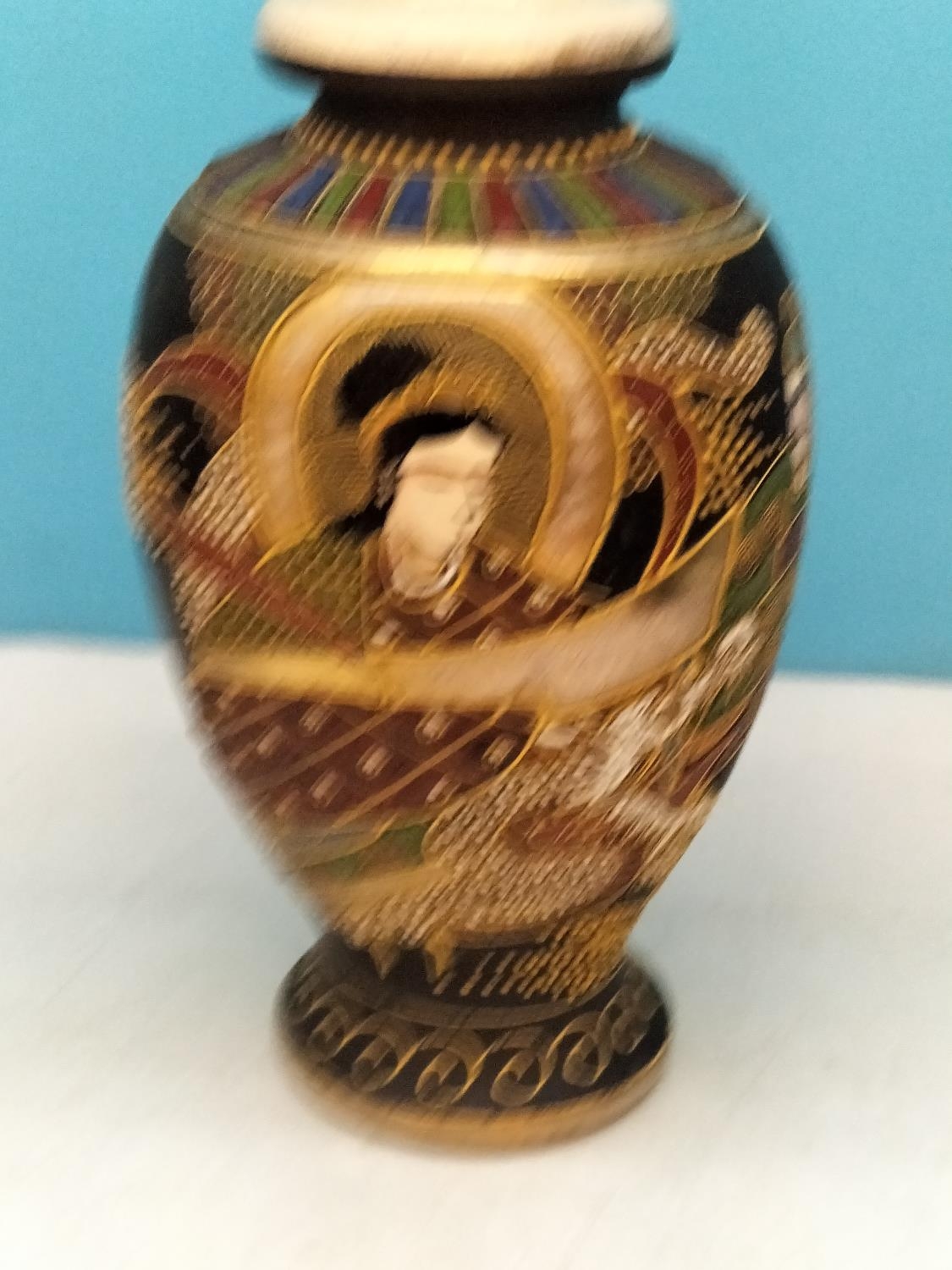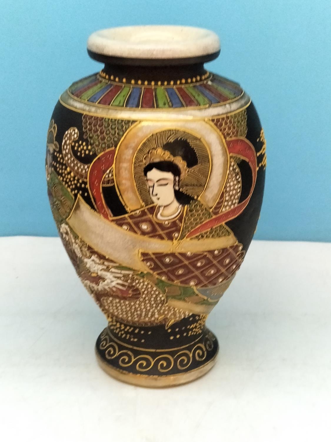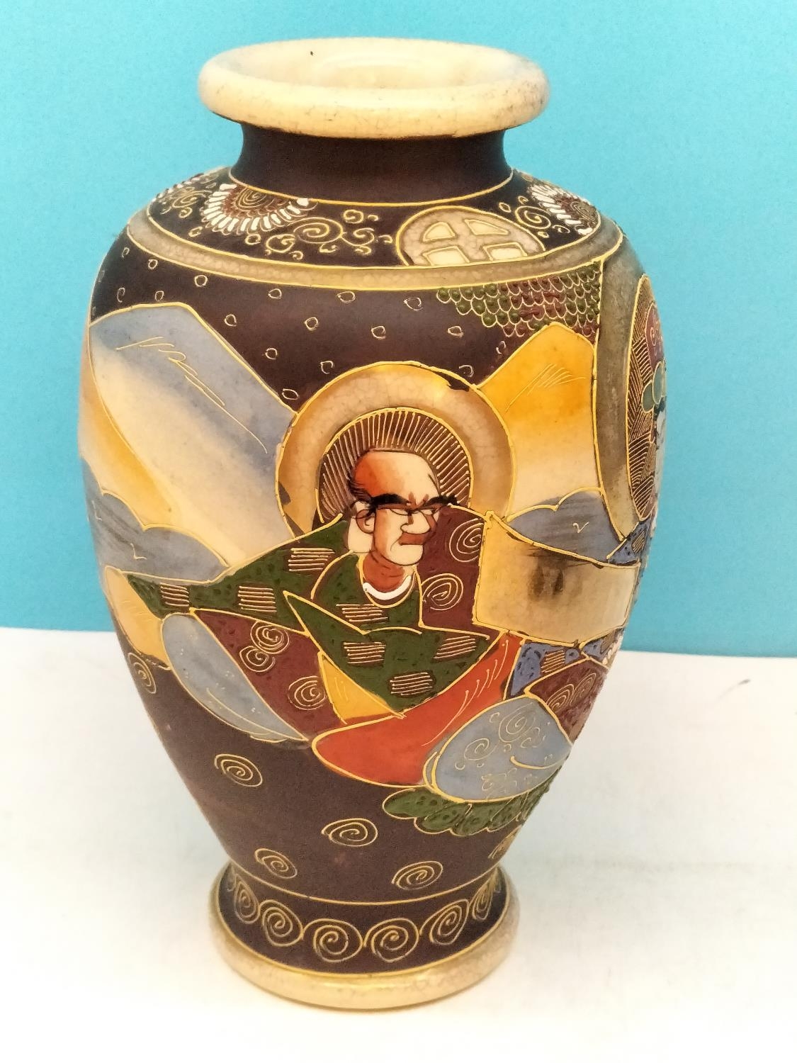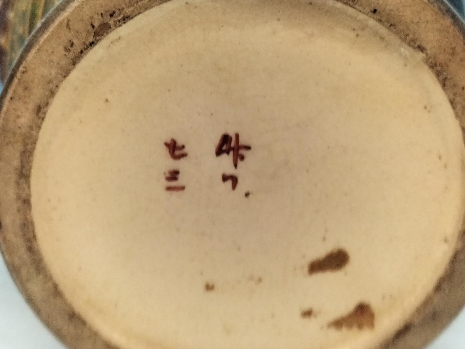 Late 19th Century Meiji Period Satsuma Vases (3). Character Mark to Base. Tallest 26cm.
